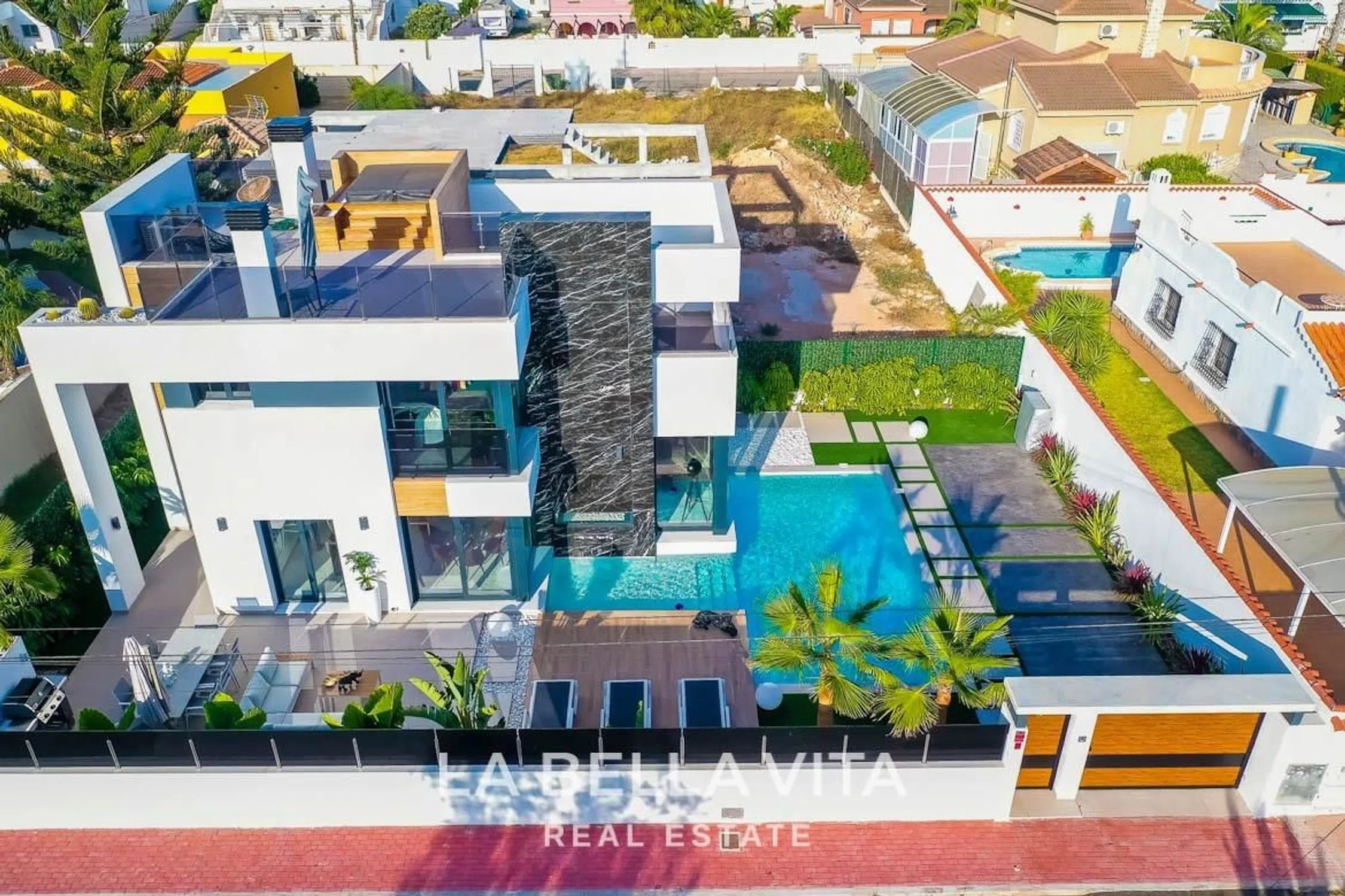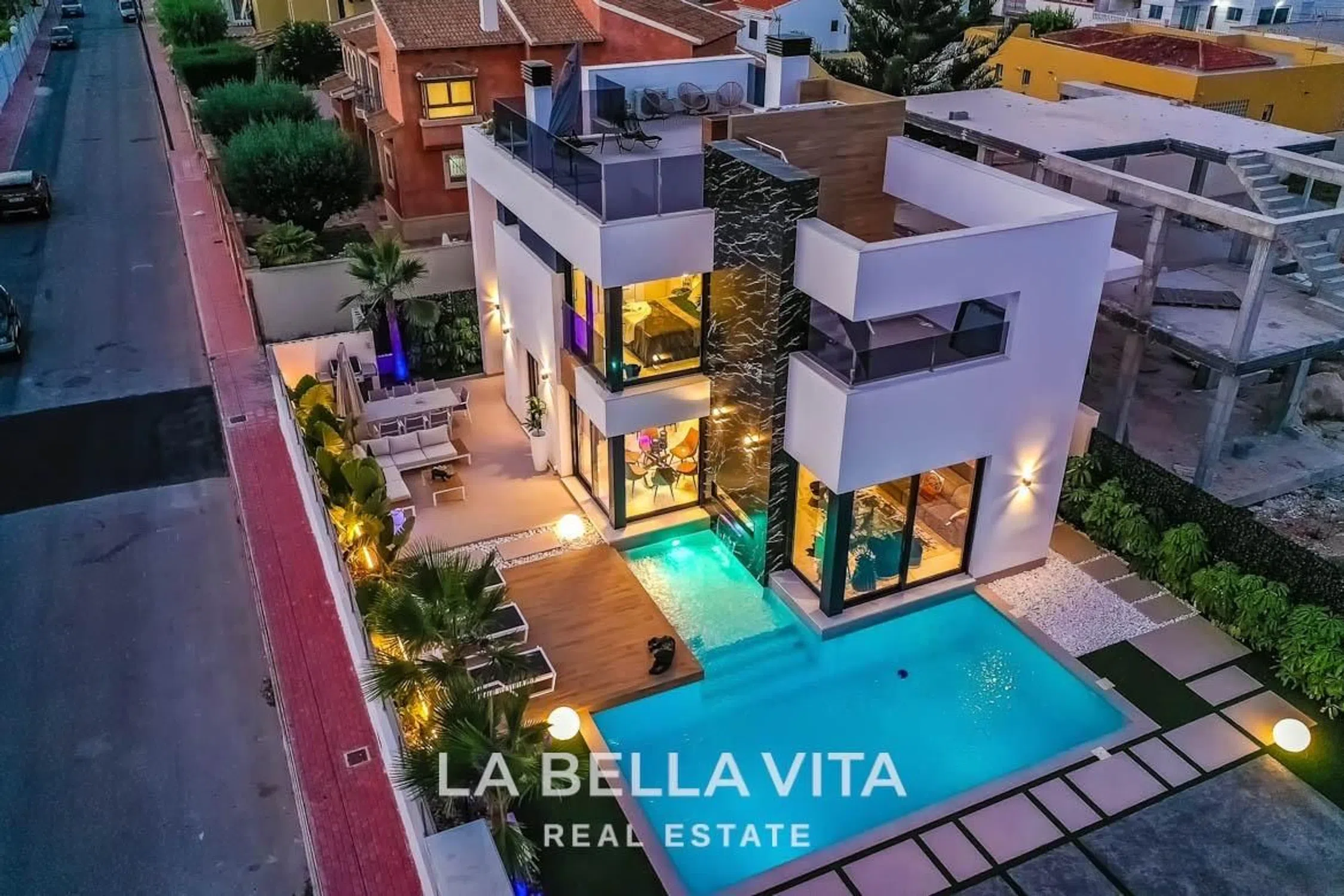 ►►► VILLA DE LUJO CON PISCINA PRIVADA Y JACUZZI EN VENTA EN LA TORRETA, TORREVIEJA: Exclusiva villa independiente ubicada en una de las zonas más demandadas de Torrevieja, La Torreta. Una propiedad única que combina diseño contemporáneo, comodidad y lujo, a solo 5 minutos de la playa y de todos los servicios esenciales. Con una arquitectura moderna y acabados de alta calidad, esta vivienda ha sido concebida para ofrecer una experiencia de vida excepcional. Dispone de 3 amplios dormitorios, 3 elegantes baños y un salón comedor de concepto abierto con cocina totalmente equipada. Los espacios interiores destacan por su luminosidad, amplitud y fluidez, creando un ambiente sofisticado y acogedor. En el exterior, la villa ofrece un entorno perfecto para disfrutar del clima mediterráneo durante todo el año. Cuenta con una piscina privada, amplia terraza, zona de descanso y un espectacular solárium con jacuzzi, ideal para relajarse al sol o contemplar las puestas de sol de la Costa Blanca. Entre sus calidades destacan: Diseño arquitectónico exclusivo Piscina privada y solárium con jacuzzi Cocina amueblada y equipada con electrodomésticos Dormitorios luminosos con armarios empotrados Baños con acabados premium Parcela privada con zona ajardinada y aparcamiento La ubicación es inmejorable: en un entorno residencial tranquilo pero muy bien conectado, con acceso rápido a las playas, supermercados, colegios internacionales, restaurantes y zonas de ocio. El centro de Torrevieja se encuentra a pocos minutos en coche, así como varios campos de golf y el aeropuerto de Alicante, a menos de 45 minutos. Una propiedad ideal para quienes buscan un estilo de vida moderno junto al mar, con el equilibrio perfecto entre privacidad, confort y elegancia. Contacta con LA BELLA VITA Real Estate, especialistas en propiedades exclusivas en la Costa Blanca. Te ofrecemos un servicio personalizado, profesional y cercano para ayudarte a encontrar tu hogar ideal bajo el sol mediterráneo.