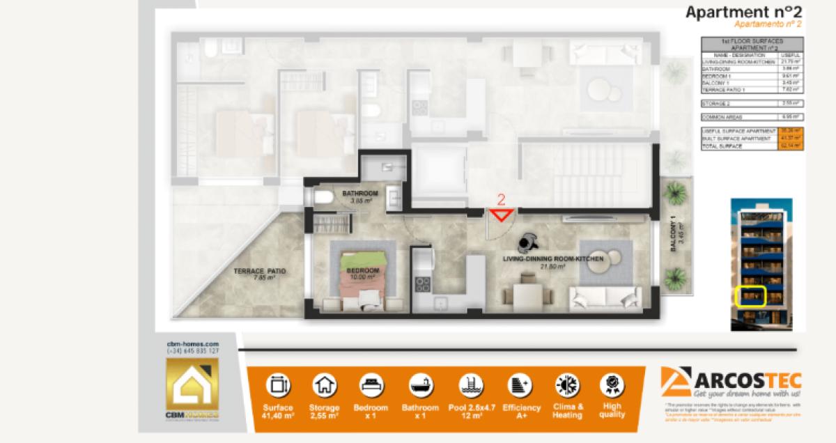 built square meters62 m²