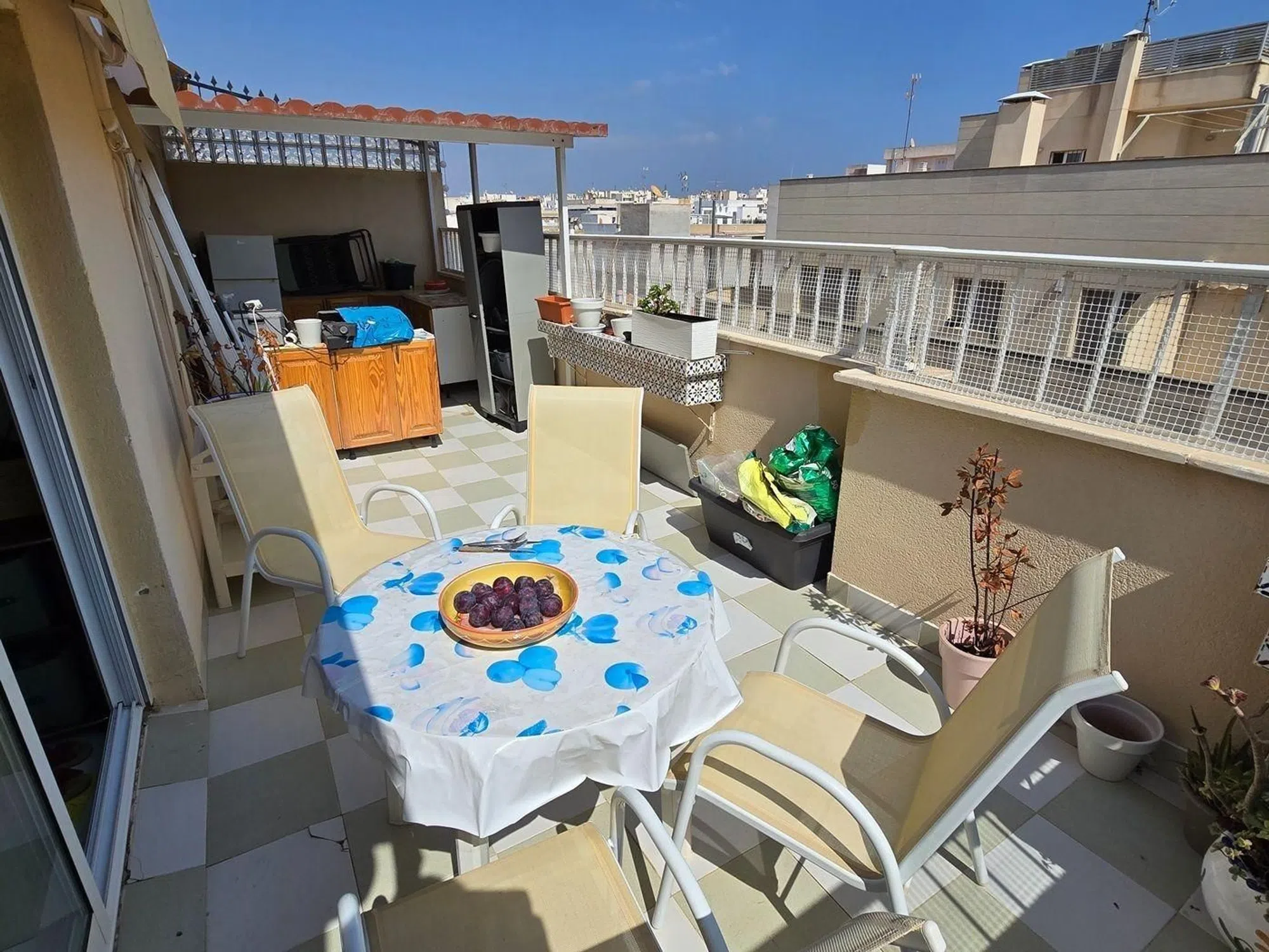 Ático en Torrevieja, Centro (Calle María Parodi) Superficie: 95 m² Amueblado: Semi amueblado y equipado Climatización: Aire acondicionado Orientación: Este Distribución: Dormitorios: 3 Baños: 1 Salón comedor: Amplio Cocina: Independiente, amueblada y equipada Terraza: Grande y soleada Ubicación: En pleno centro de Torrevieja Cerca de la Plaza del Ayuntamiento A 500 metros del puerto, el paseo marítimo y el mar Próximo a comercios y servicios.