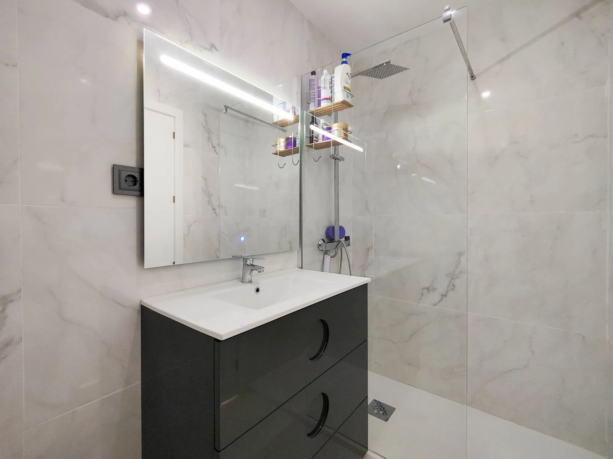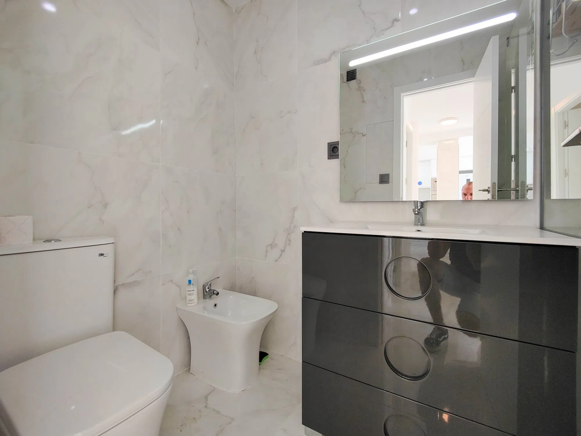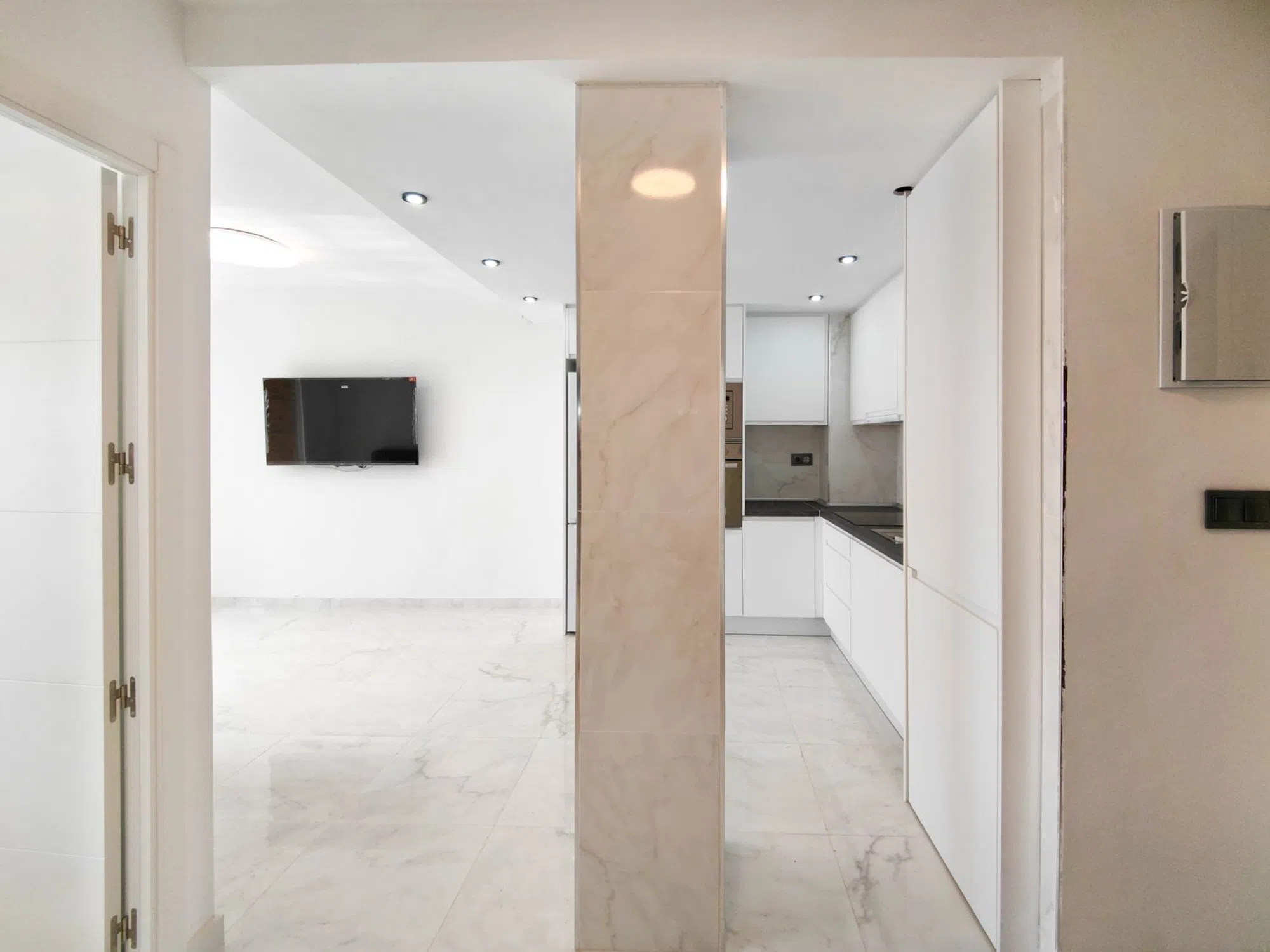 Precioso apartamento totalmente reformado orientado al SUR en venta en Rocío del Mar – Punta Prima – Torrevieja. Ubicado en un edificio con 2 ascensores, aparcamiento cubierto y vallado para residentes y una enorme piscina comunitaria con socorrista. Edificio muy cuidado, recién reforzado. Este estupendo apartamento se ha reformado por completo, incluida la instalación eléctrica y la fontanería, listo para para entrar a vivir. La vivienda cuenta con 2 amplios dormitorios con armarios empotrados y acceso a la terraza, 2 baños (ambos con plato de ducha), luminoso salón / comedor con una preciosa cocina integrada a estrenar. Los dormitorios y la terraza disfrutan de una excelente orientación SUR, la cual les proporciona mucha luz natural. Desde la terraza tenemos vistas despejadas sobre la piscina comunitaria, ideal para vigilar a los niños. Ubicación privilegiada, a pocos pasos de los bares, restaurantes, supermercados y las playas de Punta Prima. No te pierdas la oportunidad de comprar este precioso piso completamente reformado con la mejor orientación y en la mejor ubicación de Punta Prima!
