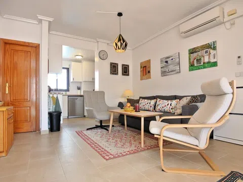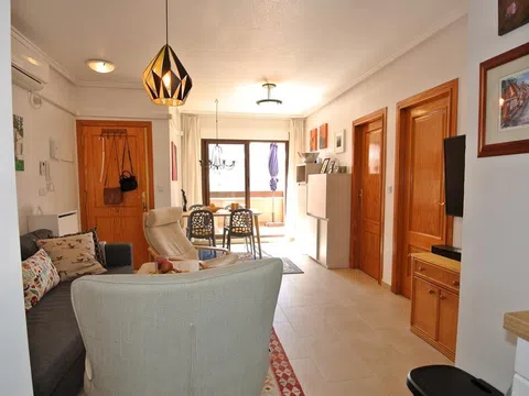 Consta de 2 dormitorios, salón comedor con salida a terraza con vistas al mar, cocina, baño con suelo radiante, solárium por escalera privado de mas de 50m, éste cuenta con caseta (amplio como un dormitorio) y pérgola de madera para disfrutar del sol y buenos momentos, garaje y trastero en sótano. Este precioso residencial La Dama se encuentra en Torrevieja, a 3 min a pie de Playa de los Locos, Playa del Cura está a 18 minutos a pie del alojamiento, y Campo de golf Las Colinas está a 14 km. El aeropuerto (Aeropuerto de Alicante – Elche Miguel Hernández) está a 43 km. y a 1,2 km de Cala de La Zorra, piscina (28 x 10 m) Disponible por temporada: 01. Ene. - 13. Dic. ). Piscina para niños y aire acondicionado. [IW].