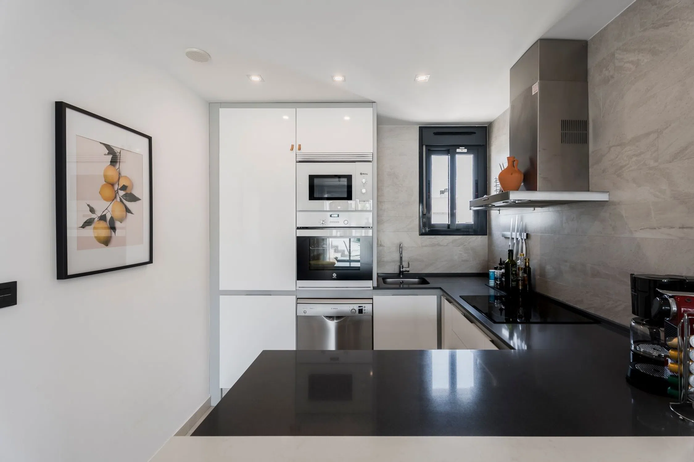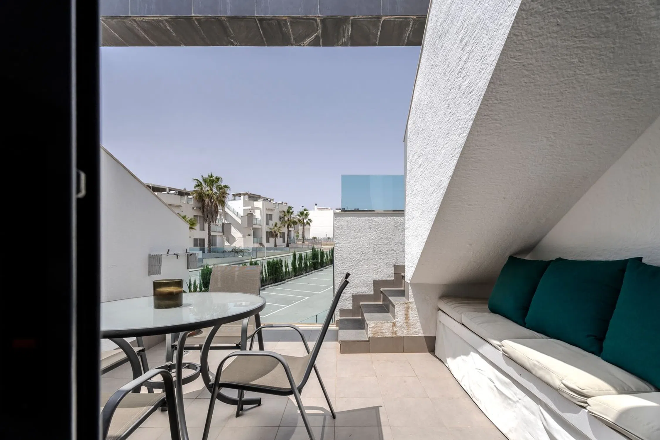 Welcome to this stylish and modern apartment from 2016, located in the popular area of Punta Prima on the Costa Blanca. Here you live in an exclusive and well-maintained residential area with everything you could wish for - perfect as a holiday home, permanent residence or as an investment with very good rental opportunities. The property offers two spacious bedrooms with built-in wardrobes and two fully tiled bathrooms, one of which is ensuite. The open plan kitchen and living room gives a light and airy feel, with direct access to a lovely balcony. Upstairs is your private roof terrace, equipped with an outdoor kitchen and pergola, as well as plenty of space for sun loungers, dining and relaxing under the Spanish sun. From the terrace you have views of the surroundings and parts of the Mediterranean Sea. Air conditioning throughout the property. In the purchase also includes a garage space. Roof terrace of approximately 58 sq m.