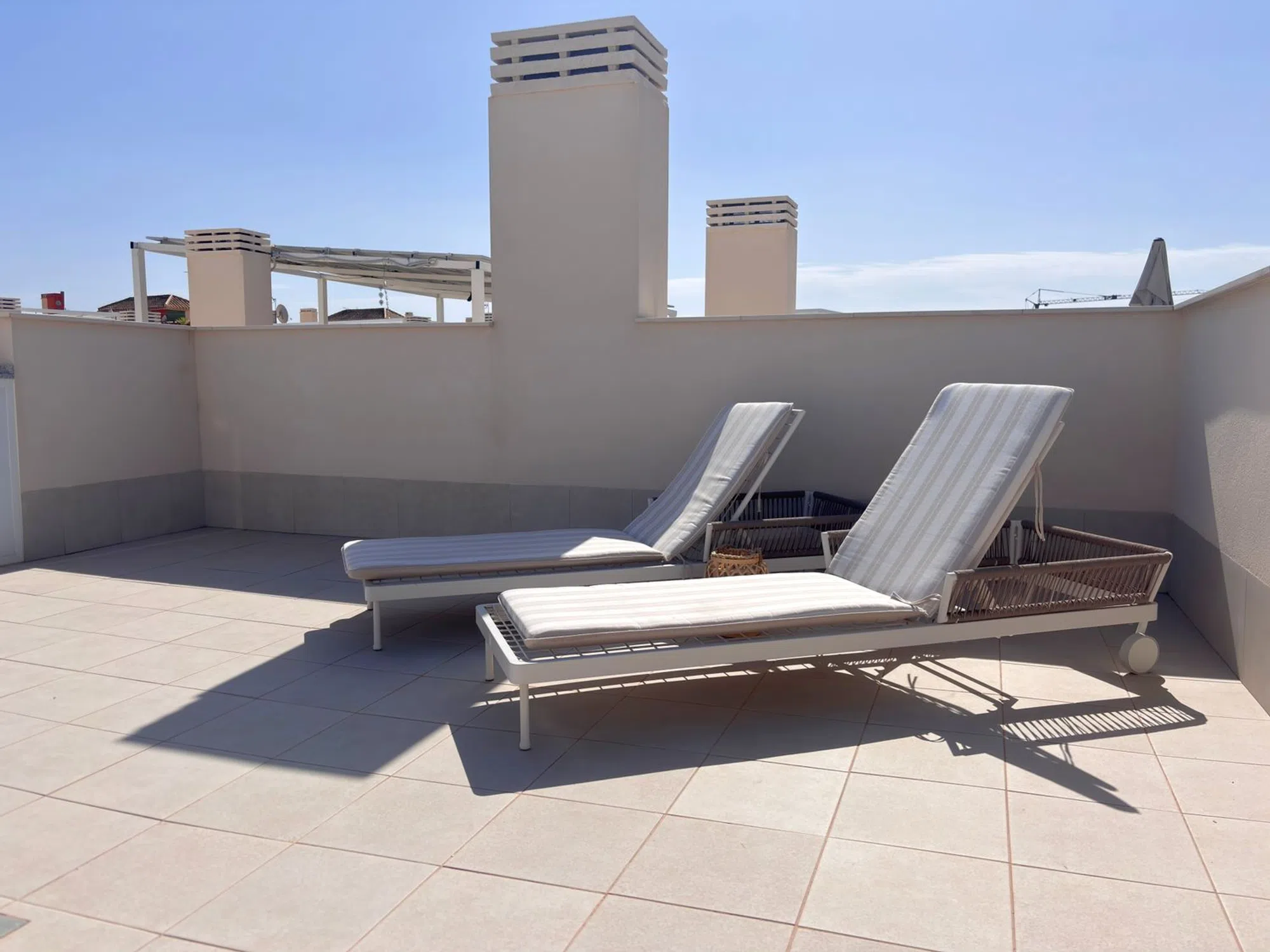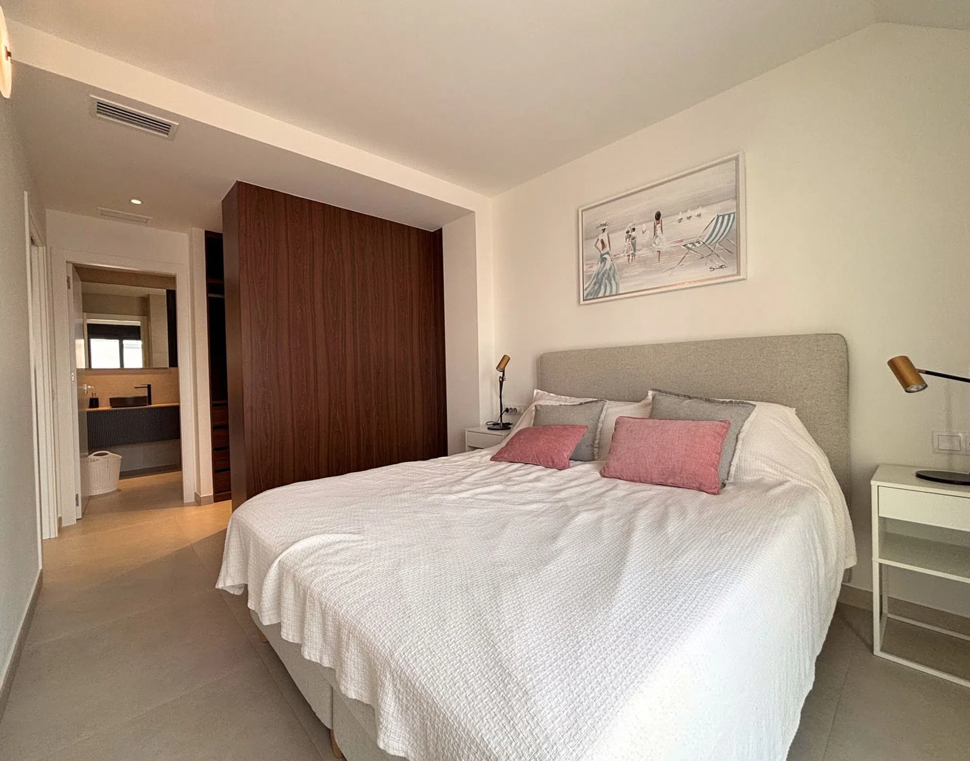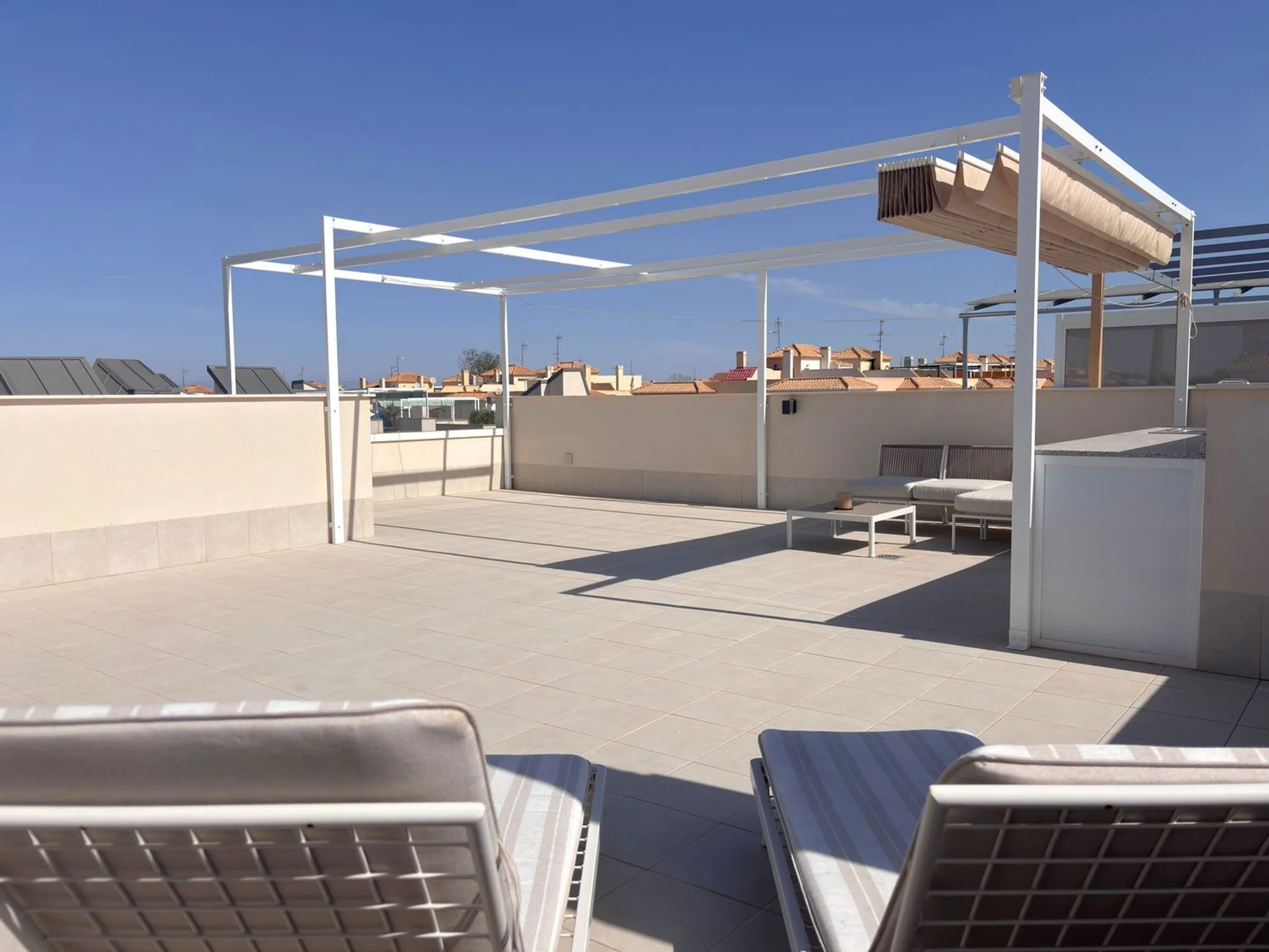 ** ¡LLAVE EN MANO! ** Amplio apartamento en planta alta con solarium privado, ubicado a solo 250m del mar en Mediterranean Gardens. Construcción del 2023. Este apartamento de 2 dormitorios y 2 baños se vende completamente amueblado con electrodomésticos y aire acondicionado en por conducto en todas las estancias. Situado en la primera planta, accesible por ascensor. El apartamento cuenta con un enorme solarium de 72 m² con pérgola y cocina exterior, así como una terraza de 20 m² orientada al oeste. El dormitorio principal cuenta con vestidor, baño ensuite y acceso directo a la terraza privada. Hay otro dormitorio doble, también con acceso a la terraza. Ambos cuartos de baño tienen calefacción por suelo radiante y acabados de alta calidad. Mediterranean Gardens es un residencial exclusivo a sólo 250m del mar. Disfruta de un jardín central de 4.300m² con 3 piscinas, piscina climatizada, gimnasio privado y conserje, así como aparcamiento subterráneo accesible por ascensores. Cerca de supermercados, bares y restaurantes. A 10 minutos en coche del centro de Torrevieja. Bien comunicado con la carretera nacional N-332 y la red de transporte público. A 40 minutos del aeropuerto de Alicante.