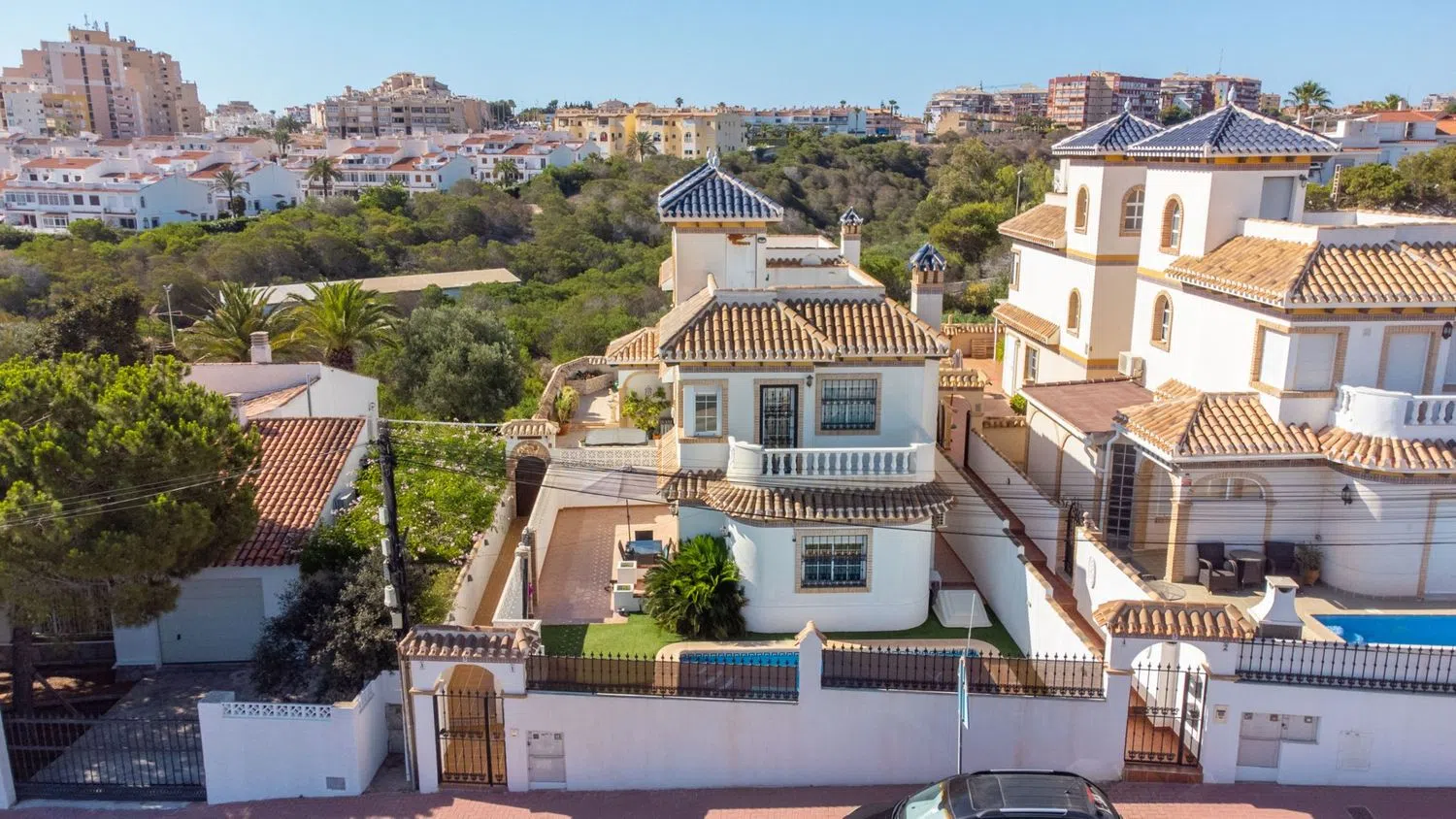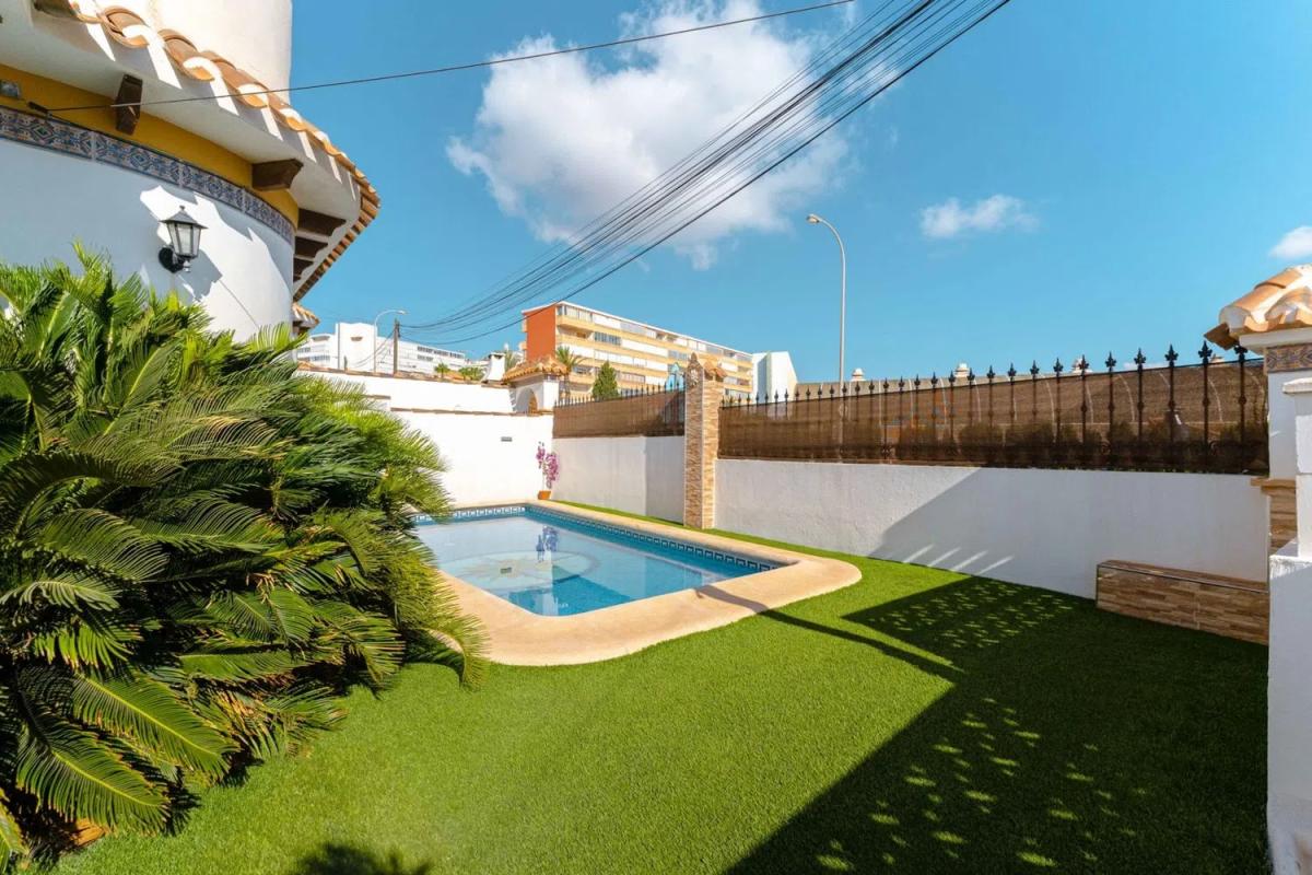 ¡Bienvenido a esta hermosa villa independiente a solo 300 metros de la playa! Presentamos esta encantadora villa de dos plantas, ubicada en una zona privilegiada de Torrelamata. Con hermosas vistas al mar y un diseño moderno, esta propiedad ofrece una combinación perfecta de elegancia y comodidad para quienes buscan un hogar cerca del mar. Disfrute del sol en la amplia terraza o refrésquese en su piscina privada de seis por tres metros, ideal para relajarse y recibir a los invitados. La villa dispone de tres amplios y luminosos dormitorios con armarios empotrados, perfectos para dar a cada miembro de la familia su propio espacio privado. La casa también está equipada con dos unidades de aire acondicionado que proporcionan tanto refrigeración como calefacción, asegurando una temperatura confortable durante todo el año. Los dos baños, con acabados de alta calidad y accesorios modernos, ofrecen comodidad y estilo. Desde el balcón del primer piso y el solarium, se puede disfrutar de la fantástica vista al mar, perfectos para tomar un café por la mañana o relajarse por la noche. La propiedad incluye un garaje privado, que proporciona seguridad y comodidad para su vehículo. A solo 300 metros de la playa, podrás disfrutar de largos paseos por la costa, actividades acuáticas y la refrescante brisa del mar en cualquier momento. Esta casa es más que solo una vivienda: es un estilo de vida. Ven y descubre todo lo que esta magnífica propiedad tiene para ofrecer. ¡No pierdas la oportunidad de vivir en tu propio paraíso costero! Para más información o reservar una visita, no dude en contactarnos en Bjurfors Costa Blanca.
