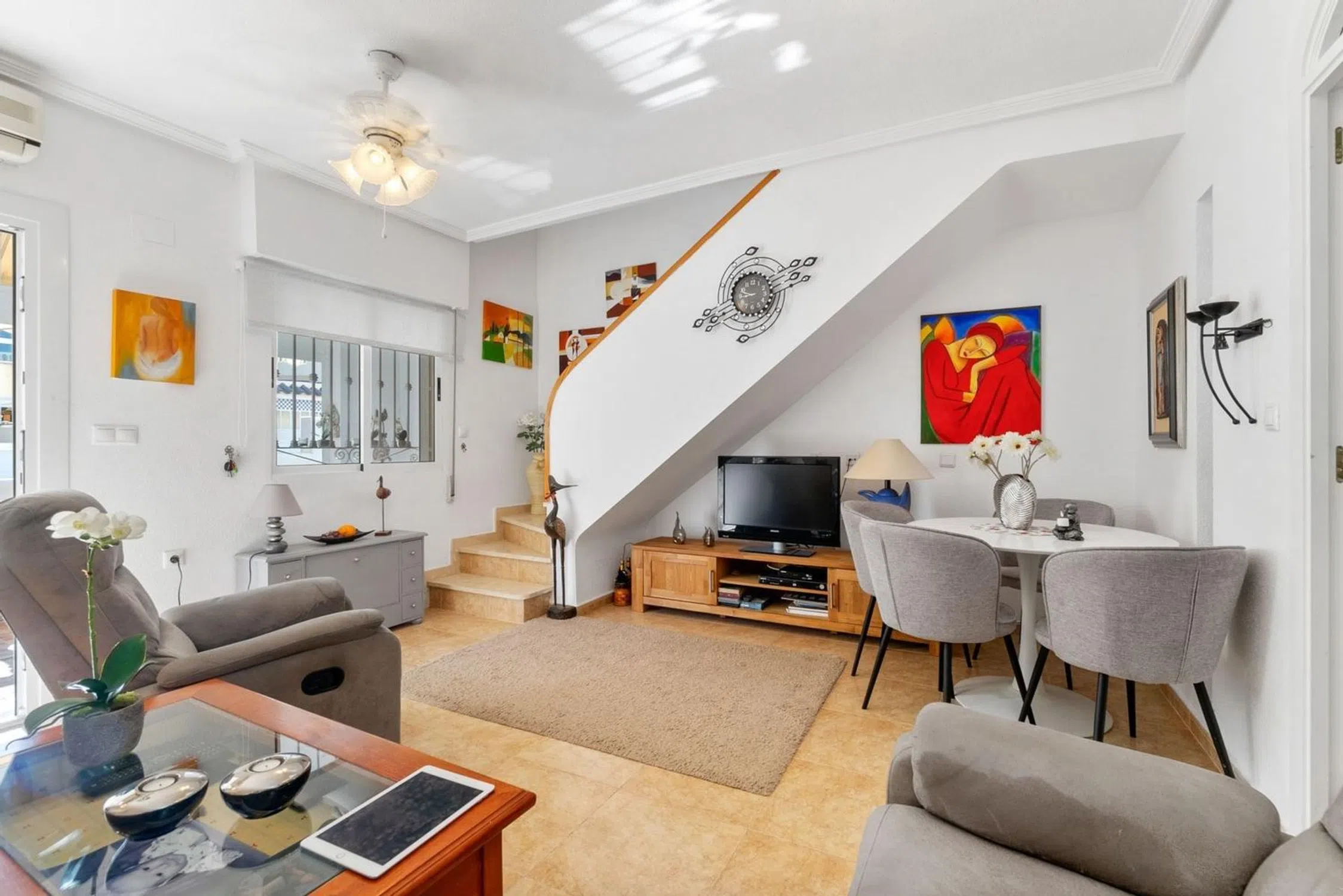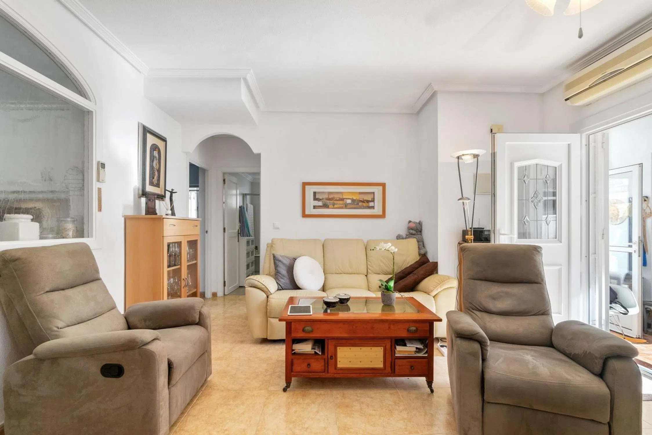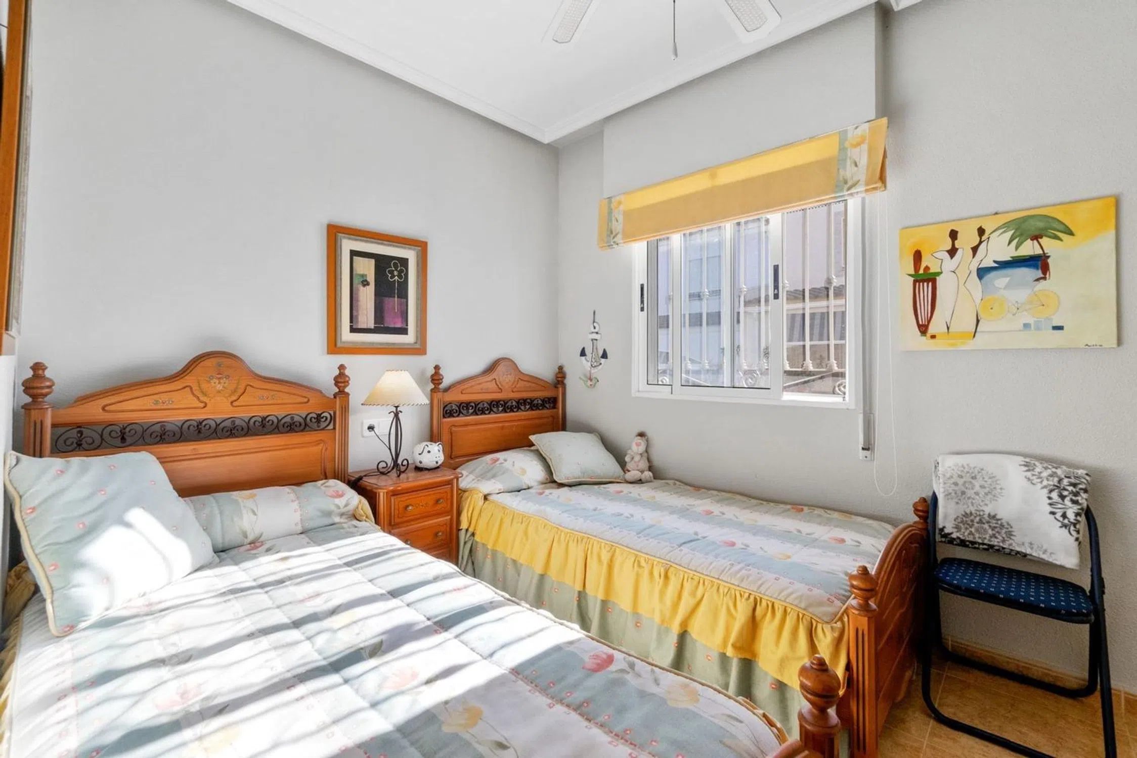 En venta: encantadora vivienda tipo Quad ubicada en una zona tranquila de Torrevieja, en el residencial Mirador de los Balcones II, rodeada de vecinos que residen todo el año, con un ambiente agradable y cercano. La ubicación es ideal, con todos los servicios a mano: supermercados, farmacia, hospital y playas de Torrevieja a pocos minutos. El residencial ofrece bonitas zonas comunes con piscina comunitaria exclusiva para residentes, perfecta para disfrutar del clima mediterráneo. Distribución: Planta principal: jardín privado con entrada para coche, porche cubierto tipo terraza, salón-comedor luminoso, cocina independiente totalmente equipada, 2 dormitorios y 1 baño completo. Planta superior: dormitorio adicional con baño propio, además de una amplia terraza solárium (parte cubierta y parte abierta), ideal para disfrutar del sol con total privacidad y agradables vistas despejadas. La vivienda cuenta con muy buena orientación, lo que garantiza luz natural durante todo el año. Se vende completamente amueblada y equipada, lista para entrar a vivir sin necesidad de inversión adicional. Ya sea como residencia habitual o como casa de vacaciones, esta propiedad es una gran oportunidad. No pierda la ocasión de visitarla. Contáctenos hoy mismo. ¡Le encantará!