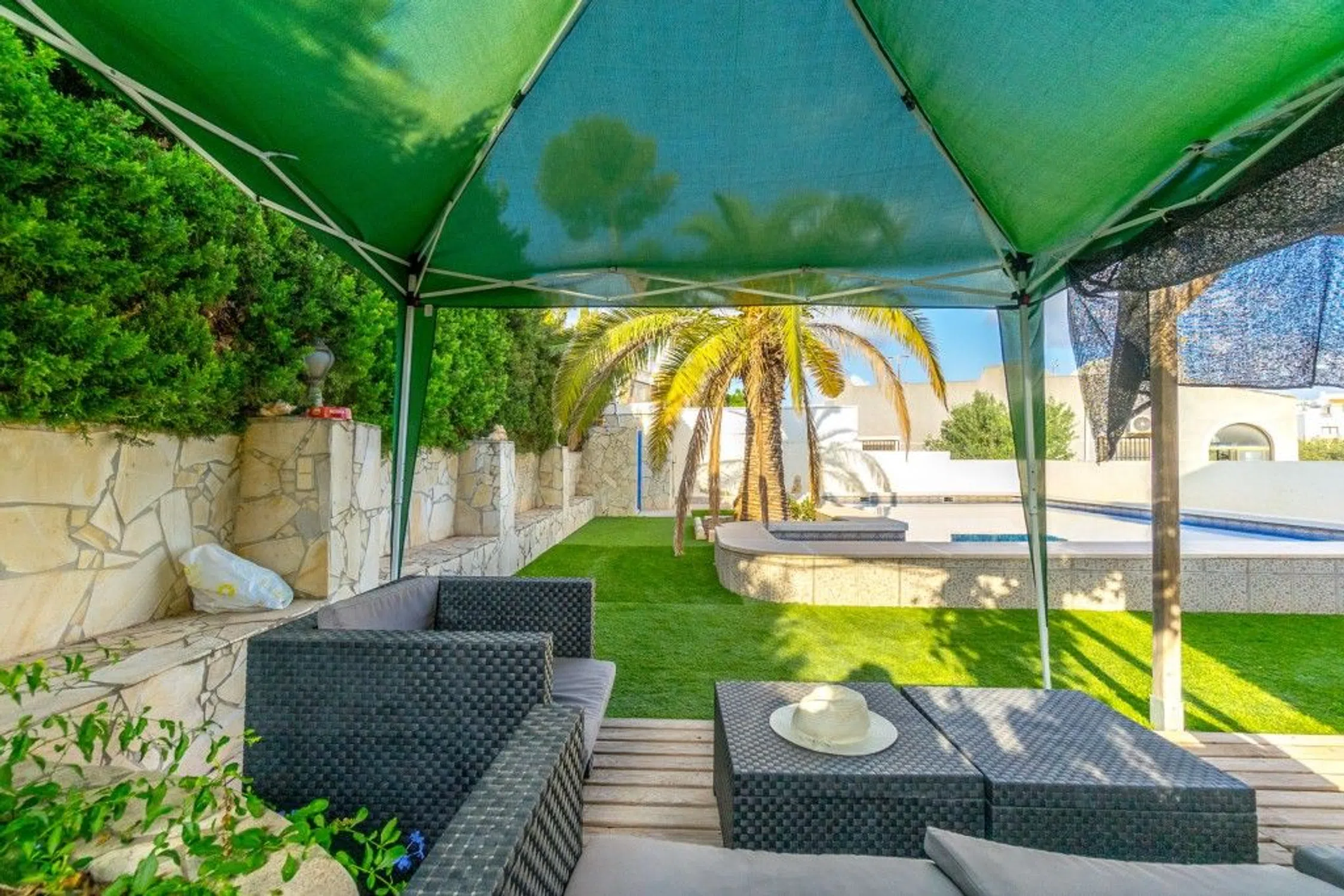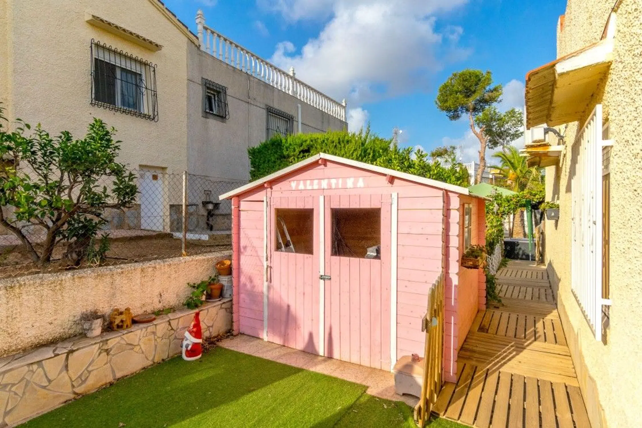 Este bonito adosado de 2 plantas tiene 2 dormitorios, 1 baño, salón con chimenea y cocina con comedor. Fuera de la propiedad hay un trastero, jardín y zona de comedor con barbacoa. También hay una piscina privada para el entretenimiento y la relajación con amigos y familiares. En la azotea de la casa hay una gran terraza / solarium con las impresionantes vistas de la zona. Debajo de la casa hay un sótano con mesa de billar y un montón de espacio de almacenamiento que podría convertirse en una bonita zona de entretenimiento. Hay servicios, supermercados, centros comerciales, hospital y campos de golf cerca. Por favor, no dude con cualquier pregunta que pueda tener acerca de esta propiedad.