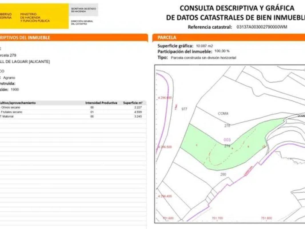 Parcela rustica de 10.087 m2 en venta en Laguar, Costa Blanca, Alicante. Las playas más cercanas están a 30 minutos de distancia. El centro comercial más grande de la zona está en Ondara a...