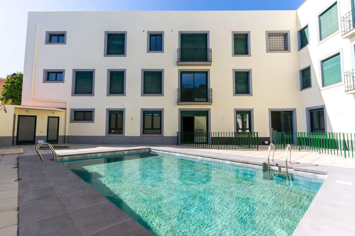 The architecture boasts large windows and high ceilings, ensuring bright and spacious interiors. The building hosts 13 apartments spread over two floors and a solarium. The distribution includes three apartments on the ground floor and five on both the first and second floors. Facilitating convenience, the property offers 13 garages and three storage rooms, accessible via elevator and stairs.