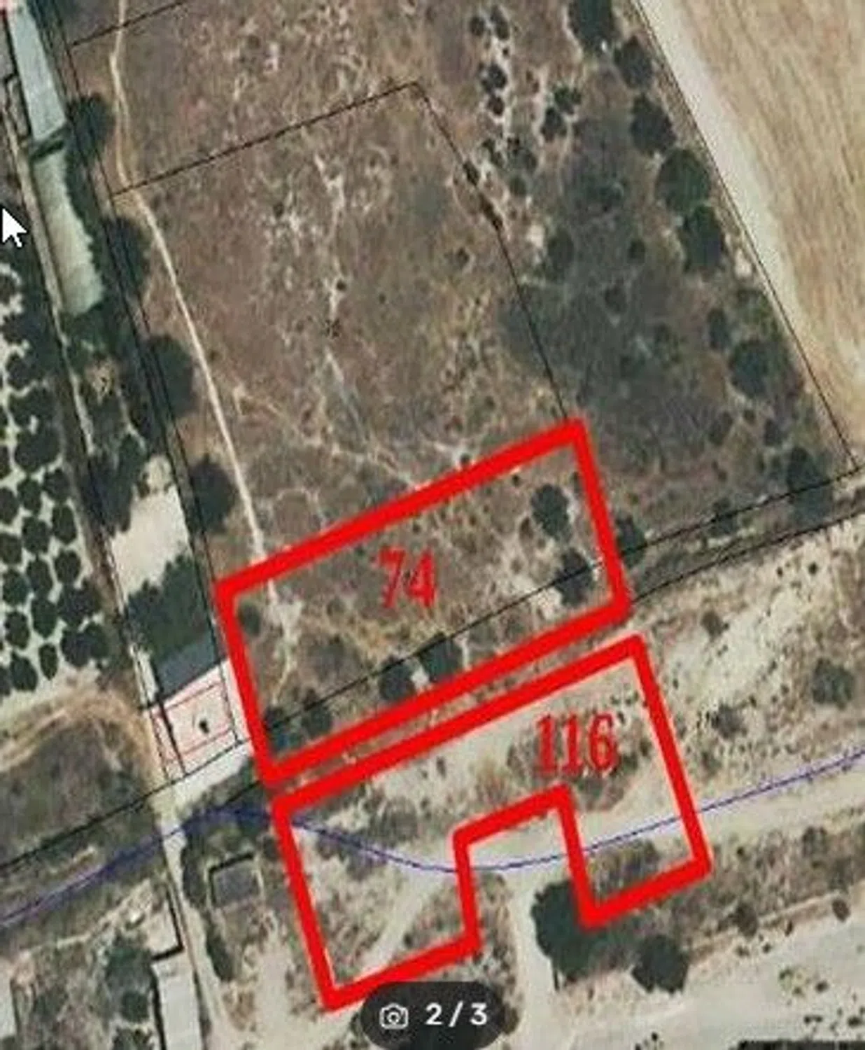 PAGO LAS VIÑAS PARAJE LA HOYA 2 Fincas Rústicas de regadío con varios olivos sitas en Pago Las Viñas Paraje La Hoya, polígono 3 del catastro de Turre, junto al camino del Río Aguas, separadas por un cañón de boquera. La parcela 74 tiene 1369 m2 y la parte correspondiente de la parcela 116, unos 1800 m2. Se encuentran a unos 600 metros del Campo de fútbol de Turre y del Parque de Bomberos del Levante Almeriense. En las fincas de alrededor hay casas y naves construidas.