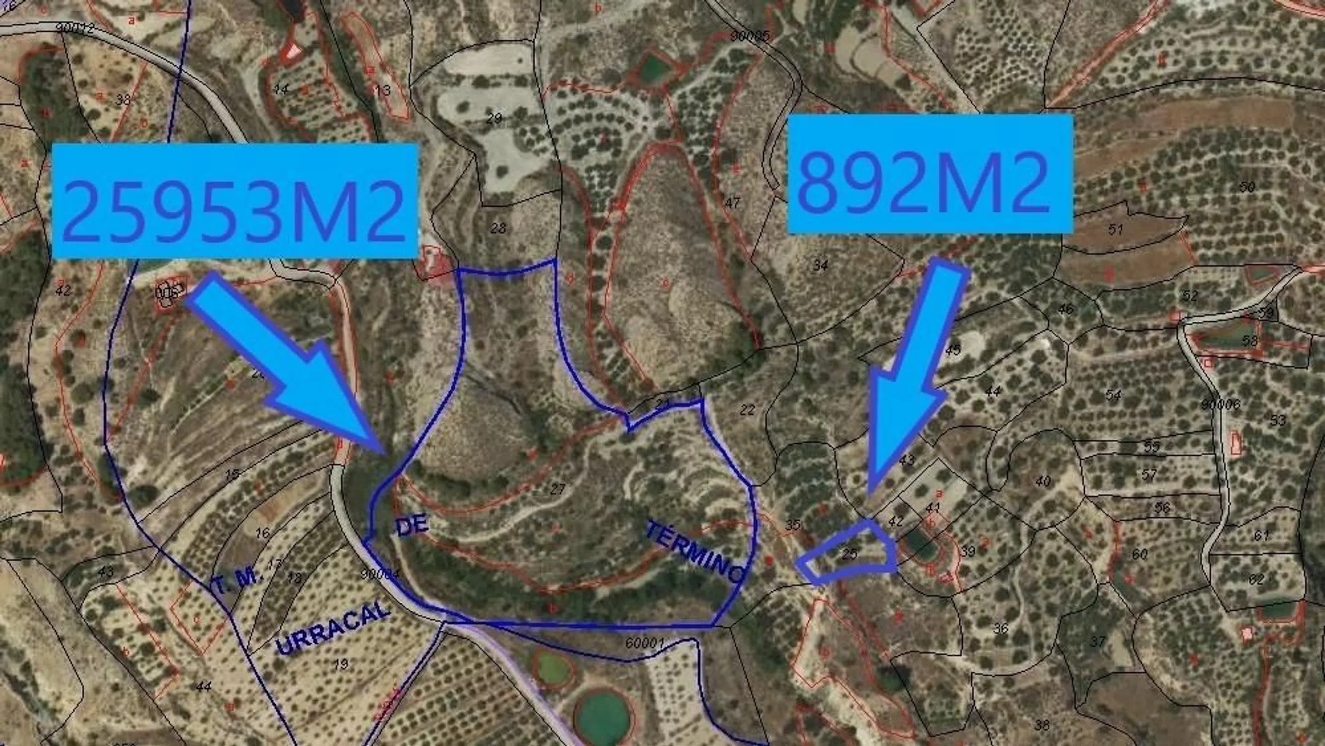 Te presentamos estas dos parcelas en las cercanías del pueblo de Urracal, en el corazón del valle del Almanzora. Muy bien ubicadas con acceso por carretera y comunicadas en el interior por calles de tierra. Son dos parcelas, una de 25953m2 y otra a 70 metros de ésta que tiene 892m2. Ésta última tiene 10 olivos muy antiguos, posiblemente milenarios El agua está en propiedad con derecho por escritura de un manantial. El derecho es de 26 horas cada 14 días. En las fotos y videos se muestran balsas y edificaciones de parcelas vecinas, las cuáles no se encuentran en la propiedad y están con el mero objetivo de enseñar el entorno en el que se encuentran las propiedades. Los límites pueden verse perfectamente en las capturas relaizadas a la cartografía provista en catastro. Para más información no dude en contactarnos. Precio Actual + Impuestos = 48150€ (7% ITP). (Este precio no incluye gastos de notaria y registrales. Los tipos aplicados son los más altos, pudiendo el comprador, por sus características, beneficiarse de algunas deducciones fiscales). Existe a disposición de los clientes, el ficha informativo abreviada de la vivienda (D. I. A), decreto 218/2005, Boja 217 de fecha 07/11/2006.