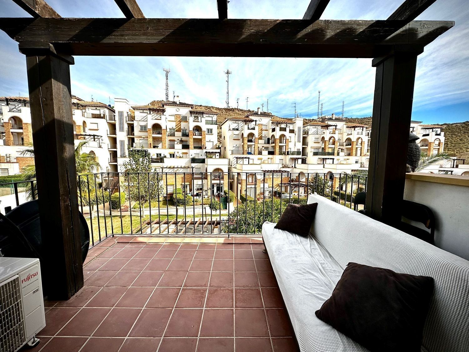 Bienvenidos a Paco Parra Inmobiliaria, donde la exclusividad y el confort se unen en la prestigiosa Urbanización Veranda, situada en el corazón de Vera Playa. Tu Refugio Privado en Urbanización Veranda:Esta casa de diseño vanguardista, con dos habitaciones y dos baños, se extiende sobre 77 metros cuadrados de construcción meticulosamente planificada para ofrecer un ambiente acogedor y elegante. La propiedad, enclavada en una urbanización cerrada, proporciona una sensación de privacidad y exclusividad inigualables. Cocina de Diseño para el Chef en Casa: La cocina, corazón del hogar, está completamente equipada con electrodomésticos de última tecnología y encimeras de granito, invitándote a crear platos que deleiten a familiares y amigos. Jardines y Exteriores para Vida al Aire Libre: Los espacios al aire libre de esta propiedad están pensados para la distensión y el disfrute familiar, con jardines que invitan a la relajación y áreas designadas para celebraciones y ocio. Seguridad y Bienestar en Todo Momento: La urbanización garantiza una seguridad integral con vigilancia continua, cámaras de alta definición y un sistema de acceso controlado, asegurando tu tranquilidad y la de los tuyos. Comodidades de Primera para un Estilo de Vida Activo: Como residente, disfrutarás de instalaciones exclusivas como una piscina deslumbrante, gimnasio con equipamiento completo, parque infantil seguro y pistas de pádel, perfectas para un estilo de vida activo y social. Ubicación Estratégica: La propiedad goza de una ubicación privilegiada, con acceso inmediato a la carretera principal, acercándote a escuelas de renombre, centros comerciales con todo lo necesario, restaurantes de categoría y entretenimiento. Estacionamiento Espacioso Incluido: Con un amplio espacio de estacionamiento, nunca tendrás que preocuparte por el aparcamiento para ti o tus invitados. Descubre tu Nuevo Hogar: Esta es tu oportunidad de vivir como siempre has soñado. Contacta con Paco Parra Inmobiliaria para concertar una visita o para resolver cualquier consulta. Estamos aquí para acompañarte en la búsqueda de tu casa ideal.