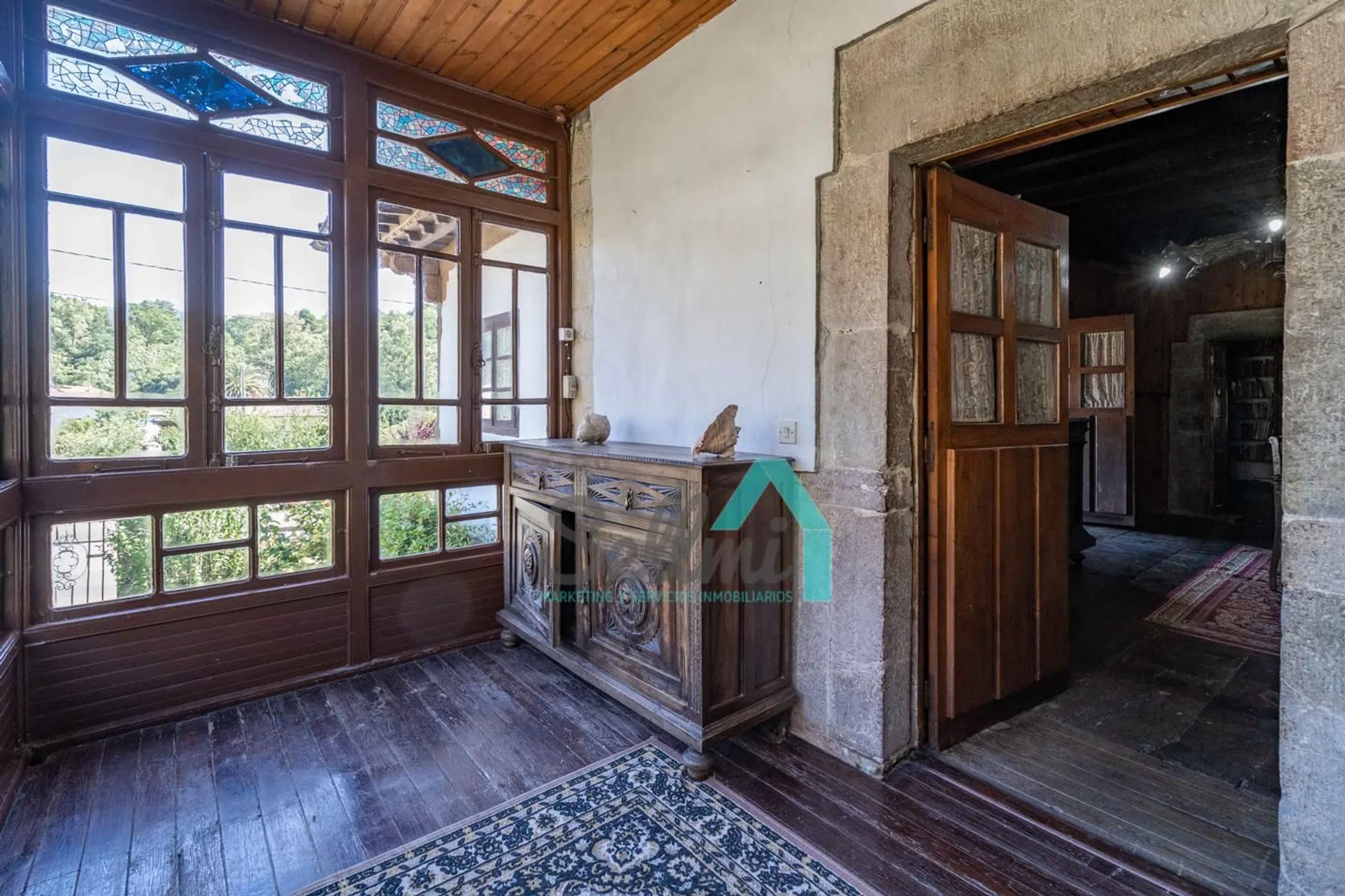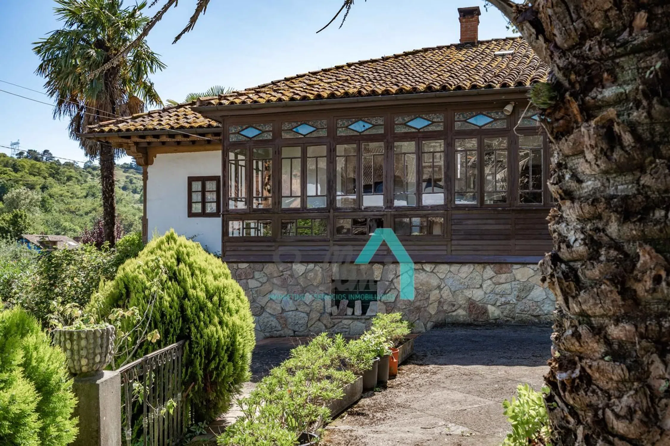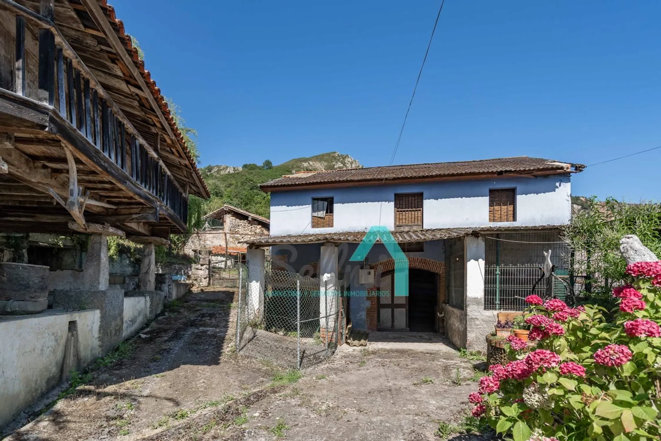 Casona en venta en Las Rozas, Cangas de Onís (Asturias, España). PRECIO: 495.000 €. Superficie construida: 535 m². Superficie parcela: 38.712 m². 4 habitaciones y 4 baños. Casona en venta (Casona del Fondón) en Las Rozas, Cangas de Onís, situada estratégicamente entre Arriondas y Cangas de Onís, y en plena ruta hacia Covadonga. Se ubica en una parcela 38.712 m², siendo la mayor parte de esta superficie (24.187,47 m²) de monte bajo, no urbanizable. El resto de la parcela, 14.525 m², está incluida en el ‘Núcleo Rural’ de Las Rozas, y se puede distribuir en 6 parcelas, con un edificio principal y uno auxiliar en cada una de ellas. Distribución actual de la vivienda: Planta baja, con 154 m² distribuidos en porche, lagar y tres estancias/almacenes. Planta primera, con 228 m² distribuidos en porche, vestíbulo, corredor, galería, salón, cocina, cocinona, despensa, cuatro dormitorios, biblioteca y dos baños. Además de la vivienda principal, cuenta con panera, tenada y cuadra. Historia de la Casona del Fondón: En 1597, vive en la casa la familia Labra, lo que significa que el edificio es de construcción anterior, pues no consta que ellos la edificaran, sino que ‘se instalaron en la Casa del Fondón’, luego, estamos hablando de una edificación bajomedieval, casona asturiana en el medio rural, de buena hechura, ubicación, asoleo, protegida de los vientos dominantes del noroeste por el ‘prau de arriba’, con agua de manantial y buen drenaje y saneamiento hacia el río Sella. También se puede deducir por su ubicación, que sino la primera, ha sido de las primeras casas de Las Rozas. La ‘casona’ disponía de portalón y cuadra en la planta baja. Es una suposición, pues si originalmente ya se había completado la ‘quintana’ como tal, es decir, la casa, el hórreo, la cuadra y tenada y el resto de construcciones de los corrales, entonces, no estaba la cuadra en la casa, sino, el lagar. Y eso es lo más probable, pues en todo el norte de la península Ibérica se construía el ‘lagar’ como pieza fundamental de la casa, incluso antes que la cuadra, pues la estabulación no existía en esas fechas, el ganado pastaba libre y pernoctaba bajo un simple tendejón. La cuadra era un ‘lujo’ para pudientes. Del ‘portalón’ arrancaba la escalera de acceso a la ‘cocinona’, elevada sobre la planta alta, escalera que se prolongaba hasta el ‘prau de arriba’. La planta alta era la vivienda, planta noble con acceso por la fachada derecha, donde actualmente se encuentra la puerta del baño, construido muchos años después, como explicaremos. Esta puerta daba acceso al distribuidor principal, que como su palabra indica, distribuía hacia la sala, por un lado, y hacia el comedor, comunicado con la ‘cocinona’, por otro lado. Desde la ‘sala’, pieza principal de la casa, se accedía a la alcoba y a otra pieza con su alcoba que se usaban principalmente como dormitorios. A finales del S. XVII se reforma la casa del Fondón, imprimiéndole un estilo característico de la época, con amplia solana y ancho alero, cuya barandilla, canecillos y zapatas son adornados con rica talla. Se reformó y amplió todo el frente de la casa, sobreponiendo sobre la fachada original una nueva dependencia y un amplio corredor. Los aleros decorados se realizan en la zona añadida. La balconada es de una bella factura que ennoblece la casa. Se crea un zaguán en la planta baja muy útil y protegido, con una columna toscana, sin basamento, en forma de tonel. En algún lugar pudo haber estado el blasón de ‘Los Labra’: Caballero con armadura, dando muerte al dragón, a la vista de su amada que llora desde las almenas del castillo su marcha a la guerra. Dando un salto en el tiempo, llegamos al S. XX. En 1.917 una nueva familia se establece en la Casa del Fondón y lleva a cabo la última gran reforma. Una amplia galería colocada en la fachada lateral derecha, trasladando la entrada pr.