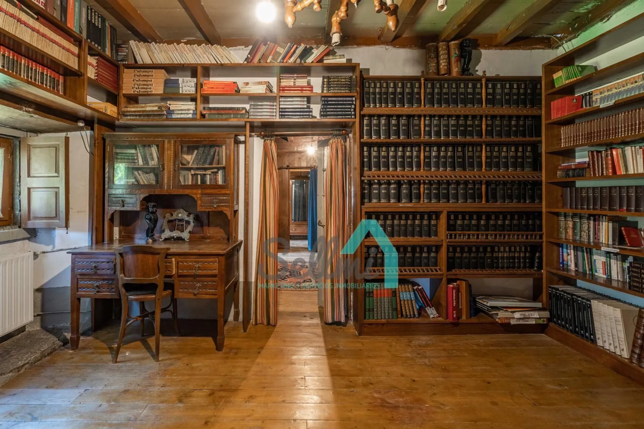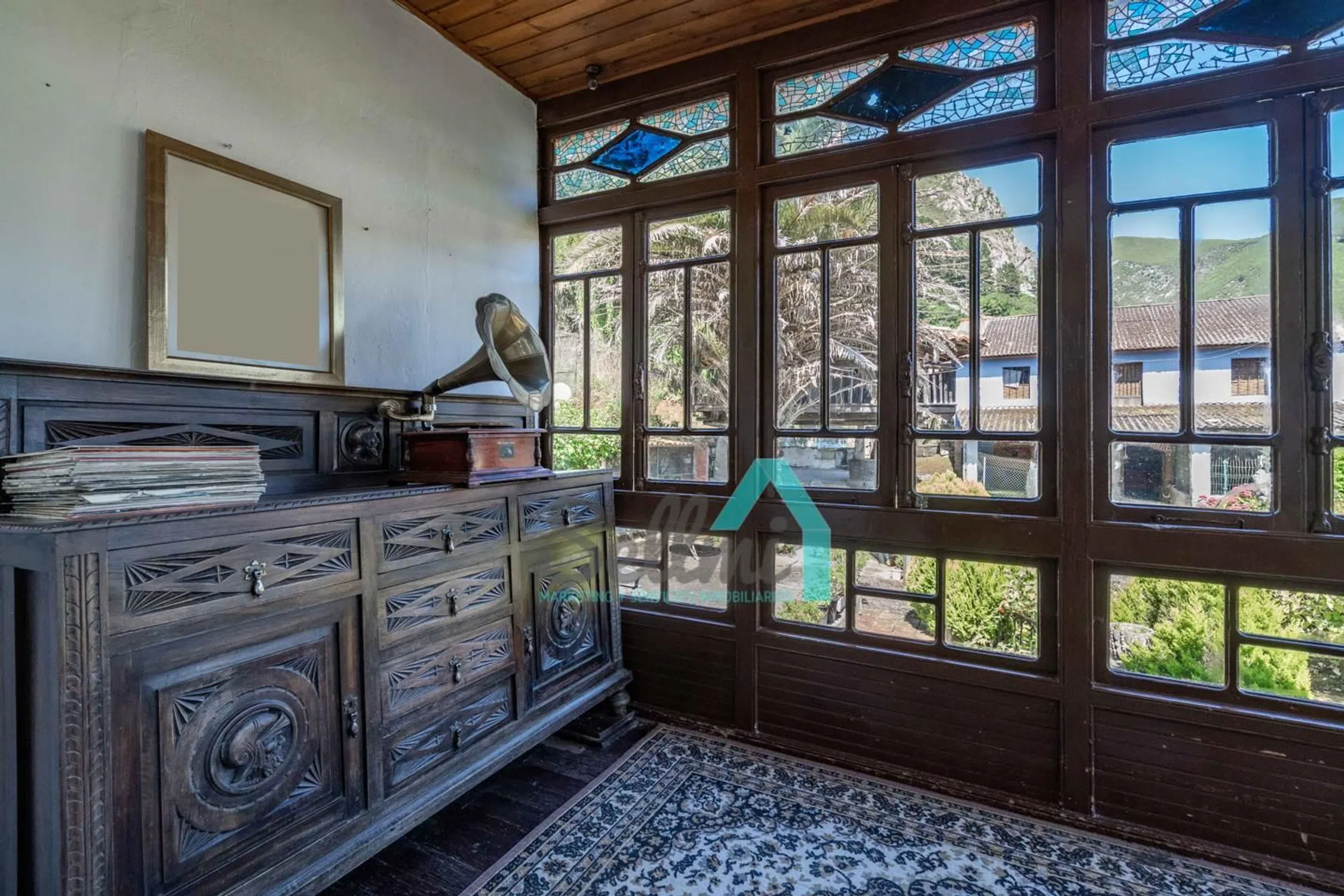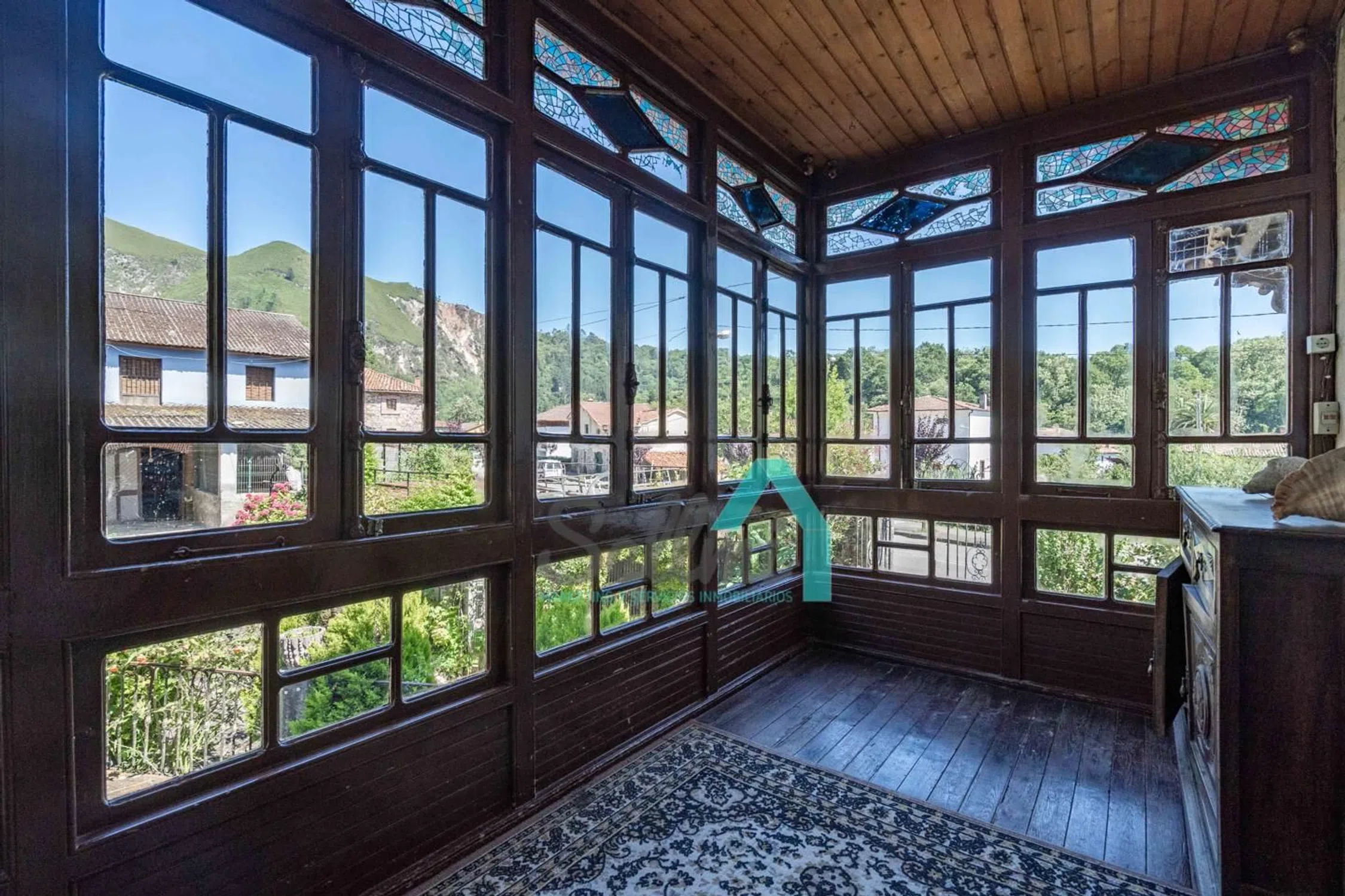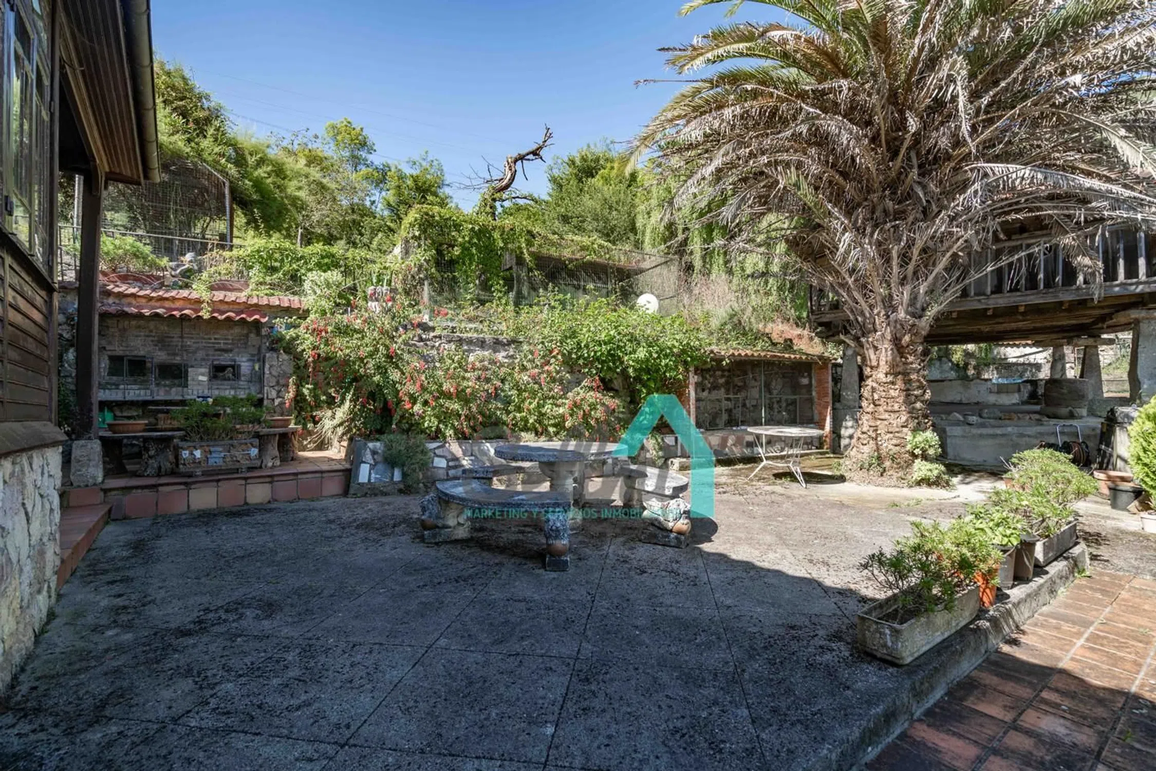 Casona en venta en Las Rozas, Cangas de Onís (Asturias, España). PRECIO: 495.000 €. Superficie construida: 535 m². Superficie parcela: 38.712 m². 4 habitaciones y 4 baños. Casona en venta (Casona del Fondón) en Las Rozas, Cangas de Onís, situada estratégicamente entre Arriondas y Cangas de Onís, y en plena ruta hacia Covadonga. Se ubica en una parcela 38.712 m², siendo la mayor parte de esta superficie (24.187,47 m²) de monte bajo, no urbanizable. El resto de la parcela, 14.525 m², está incluida en el ‘Núcleo Rural’ de Las Rozas, y se puede distribuir en 6 parcelas, con un edificio principal y uno auxiliar en cada una de ellas. Distribución actual de la vivienda: Planta baja, con 154 m² distribuidos en porche, lagar y tres estancias/almacenes. Planta primera, con 228 m² distribuidos en porche, vestíbulo, corredor, galería, salón, cocina, cocinona, despensa, cuatro dormitorios, biblioteca y dos baños. Además de la vivienda principal, cuenta con panera, tenada y cuadra. Historia de la Casona del Fondón: En 1597, vive en la casa la familia Labra, lo que significa que el edificio es de construcción anterior, pues no consta que ellos la edificaran, sino que ‘se instalaron en la Casa del Fondón’, luego, estamos hablando de una edificación bajomedieval, casona asturiana en el medio rural, de buena hechura, ubicación, asoleo, protegida de los vientos dominantes del noroeste por el ‘prau de arriba’, con agua de manantial y buen drenaje y saneamiento hacia el río Sella. También se puede deducir por su ubicación, que sino la primera, ha sido de las primeras casas de Las Rozas. La ‘casona’ disponía de portalón y cuadra en la planta baja. Es una suposición, pues si originalmente ya se había completado la ‘quintana’ como tal, es decir, la casa, el hórreo, la cuadra y tenada y el resto de construcciones de los corrales, entonces, no estaba la cuadra en la casa, sino, el lagar. Y eso es lo más probable, pues en todo el norte de la península Ibérica se construía el ‘lagar’ como pieza fundamental de la casa, incluso antes que la cuadra, pues la estabulación no existía en esas fechas, el ganado pastaba libre y pernoctaba bajo un simple tendejón. La cuadra era un ‘lujo’ para pudientes. Del ‘portalón’ arrancaba la escalera de acceso a la ‘cocinona’, elevada sobre la planta alta, escalera que se prolongaba hasta el ‘prau de arriba’. La planta alta era la vivienda, planta noble con acceso por la fachada derecha, donde actualmente se encuentra la puerta del baño, construido muchos años después, como explicaremos. Esta puerta daba acceso al distribuidor principal, que como su palabra indica, distribuía hacia la sala, por un lado, y hacia el comedor, comunicado con la ‘cocinona’, por otro lado. Desde la ‘sala’, pieza principal de la casa, se accedía a la alcoba y a otra pieza con su alcoba que se usaban principalmente como dormitorios. A finales del S. XVII se reforma la casa del Fondón, imprimiéndole un estilo característico de la época, con amplia solana y ancho alero, cuya barandilla, canecillos y zapatas son adornados con rica talla. Se reformó y amplió todo el frente de la casa, sobreponiendo sobre la fachada original una nueva dependencia y un amplio corredor. Los aleros decorados se realizan en la zona añadida. La balconada es de una bella factura que ennoblece la casa. Se crea un zaguán en la planta baja muy útil y protegido, con una columna toscana, sin basamento, en forma de tonel. En algún lugar pudo haber estado el blasón de ‘Los Labra’: Caballero con armadura, dando muerte al dragón, a la vista de su amada que llora desde las almenas del castillo su marcha a la guerra. Dando un salto en el tiempo, llegamos al S. XX. En 1.917 una nueva familia se establece en la Casa del Fondón y lleva a cabo la última gran reforma. Una amplia galería colocada en la fachada lateral derecha, trasladando la entrada pr.