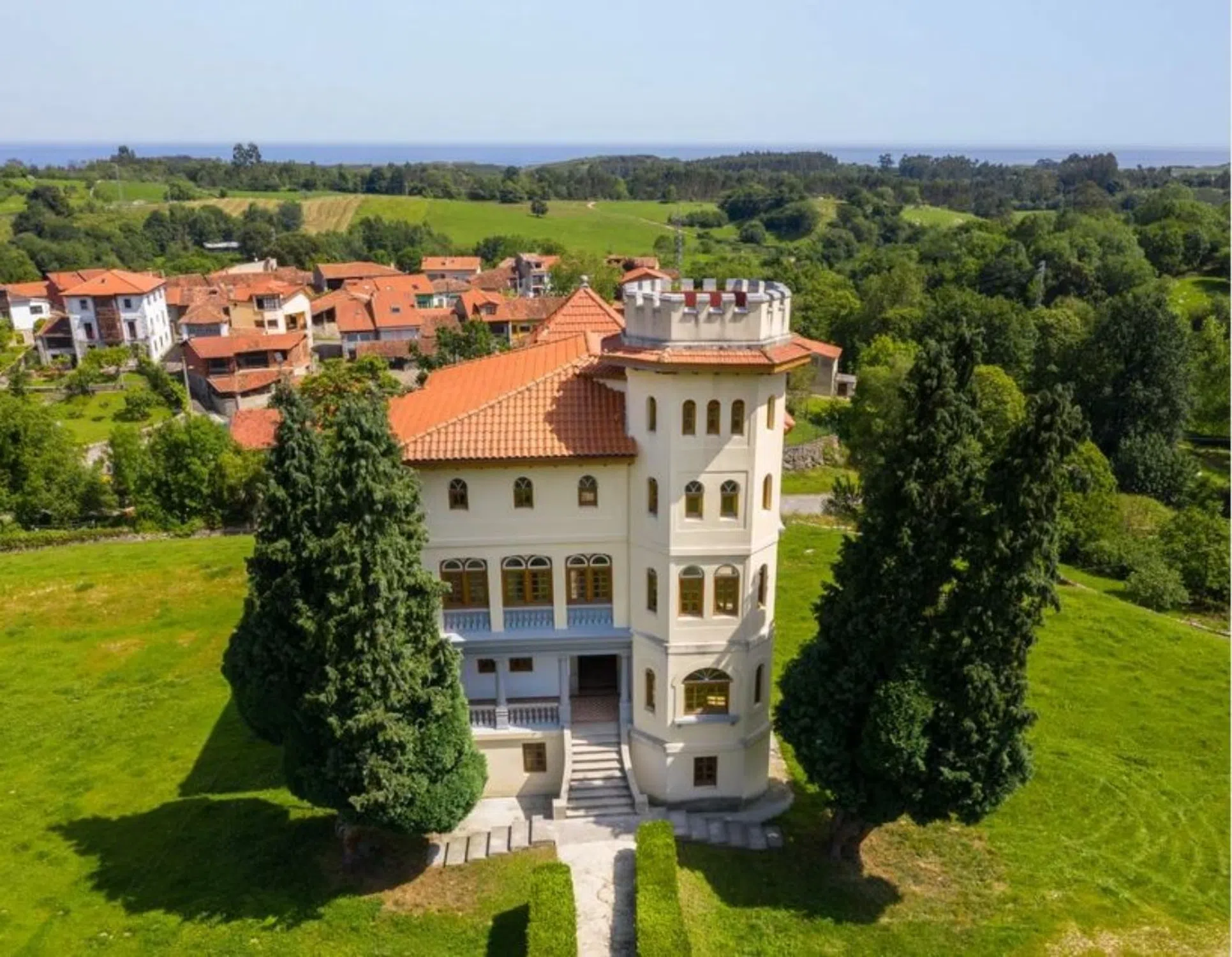 Descubre esta excepcional residencia diseñada por el propietario, Pio Junco del Pandal, un indiano de Cuba con una visión vanguardista en la arquitectura Influenciado por su tío Celestino del Pandal Sánchez, distinguido arquitecto en el Ayuntamiento de Matanzas y formado en la prestigiosa Academia de Bellas Artes de San Fernando en Madrid, Pio Junco regresó a Cuba para plasmar su pasión por el diseño y la innovación. Bajo la tutela de su tío, Pio Junco adquirió habilidades como maestro de obras, perito agrícola y mercantil. El Castillo, originalmente destinado como su residencia de verano, es un testimonio de innovación, ya que introdujo una estructura revolucionaria de vigas y pilares de hormigón armado en la década de 1930, marcando un hito significativo en la arquitectura rural de la época. Esta casa, de planta cuadrangular con sótano y tres plantas, incluyendo una singular torre adicional, presenta una entrada principal al sur con una encantadora escalinata. Destaca su espacioa recepcion, que consiste en una galería techada y abierta, sostenida por elegantes columnas clásicas en el primer nivel y cerrada con un ventanal en el segundo. El tejado a cuatro aguas añade un toque tradicional, mientras que la escalera en el cuerpo adosado al norte, con su propio tejado a cuatro aguas, es una característica distintiva de esta magnífica propiedad. Cuenta con más de 9 habitaciones, amplios salones y una cocina con fantásticas vistas tanto a la montaña como al mar. Este tipo de residencia ofrece una amplia variedad de posibilidades para distintos estilos de vida y necesidades. Con tantas habitaciones, podrías utilizar los espacios adicionales como dormitorios para invitados, u oficinas en casa. Los salones amplios brindan la oportunidad de crear múltiples ambientes, desde zonas de estar formales hasta áreas más informales para el entretenimiento y reuniones sociales. Además, la cocina con vistas panorámicas a la montaña y al mar proporciona un escenario encantador para disfrutar mientras se cocina o se comparte momentos especiales con familiares y amigos. Las vistas a la montaña y al mar agregan un valor increíble a la propiedad, ofreciendo un paisaje cambiante y una sensación de conexión con la naturaleza que puede ser disfrutada desde diferentes áreas de la casa, como balcones, terrazas o ventanas panorámicas. En resumen, una propiedad con estas características no solo ofrece comodidad y funcionalidad, sino que también brinda la oportunidad de disfrutar de un entorno excepcional y vistas impresionantes que enriquecerán la experiencia de vida en el hogar ¡Una auténtica joya arquitectónica que no te puedes perder!