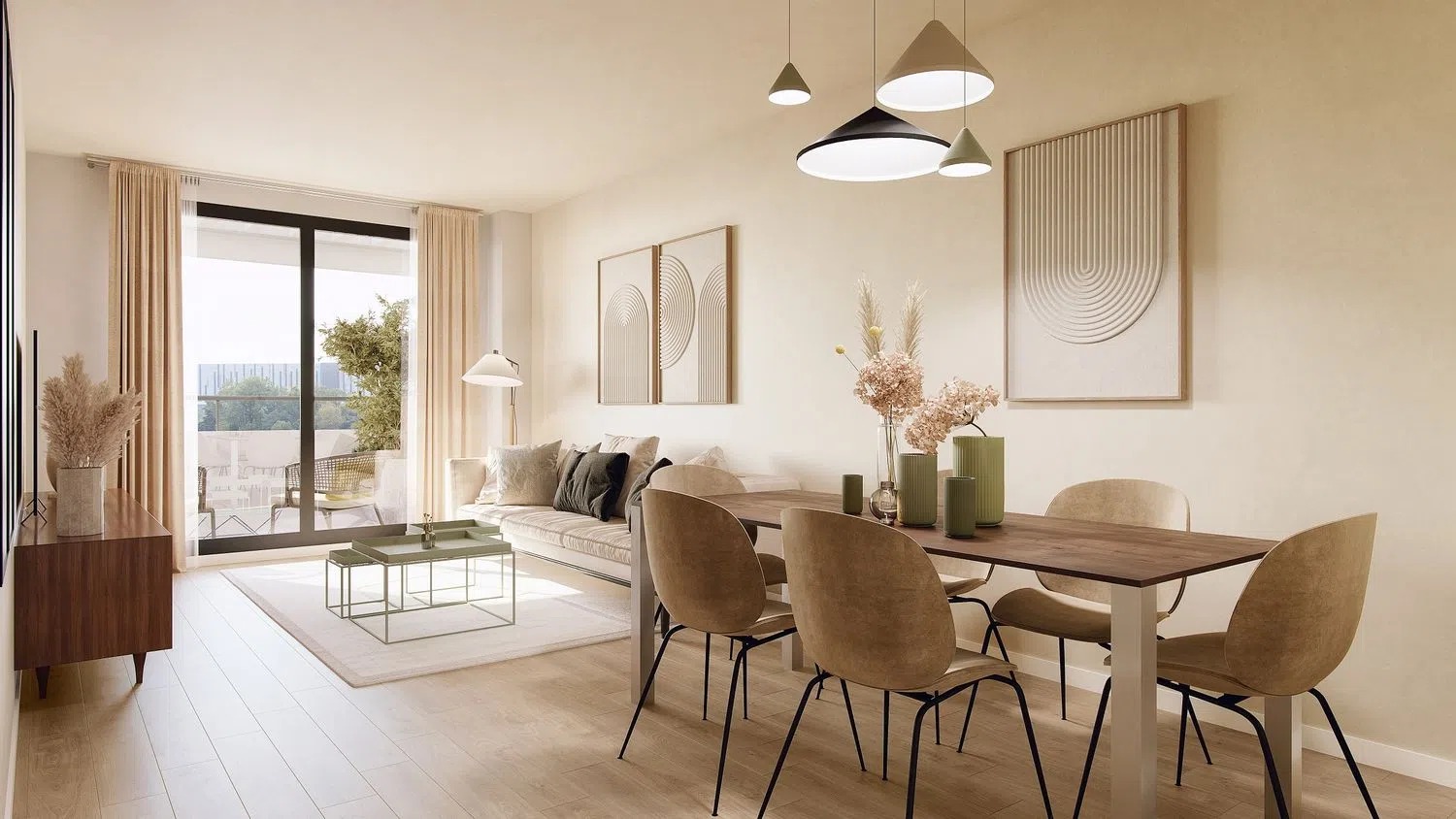 The properties are equipped with expansive windows and sizeable terraces. They feature high-quality thermal and acoustic insulation systems that enhance energy savings. Designed by Don Martín de la Fuente from a renowned local studio, these homes reflect thoughtful architectural expertise.