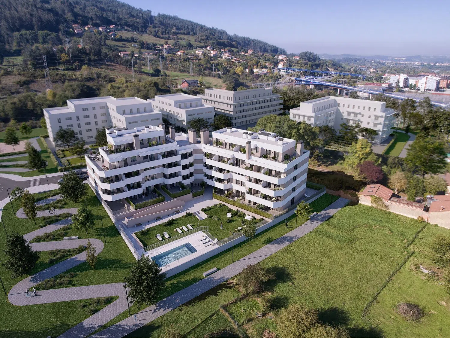 The urbanization offers a diverse selection of educational institutions, including a municipal nursery and ample sports facilities with a football field. It is well-connected, providing direct access to major routes linking Oviedo, Gijón, and Avilés. Residents will also have convenient public transport options, with nearby bus stops offering direct routes to the city center.