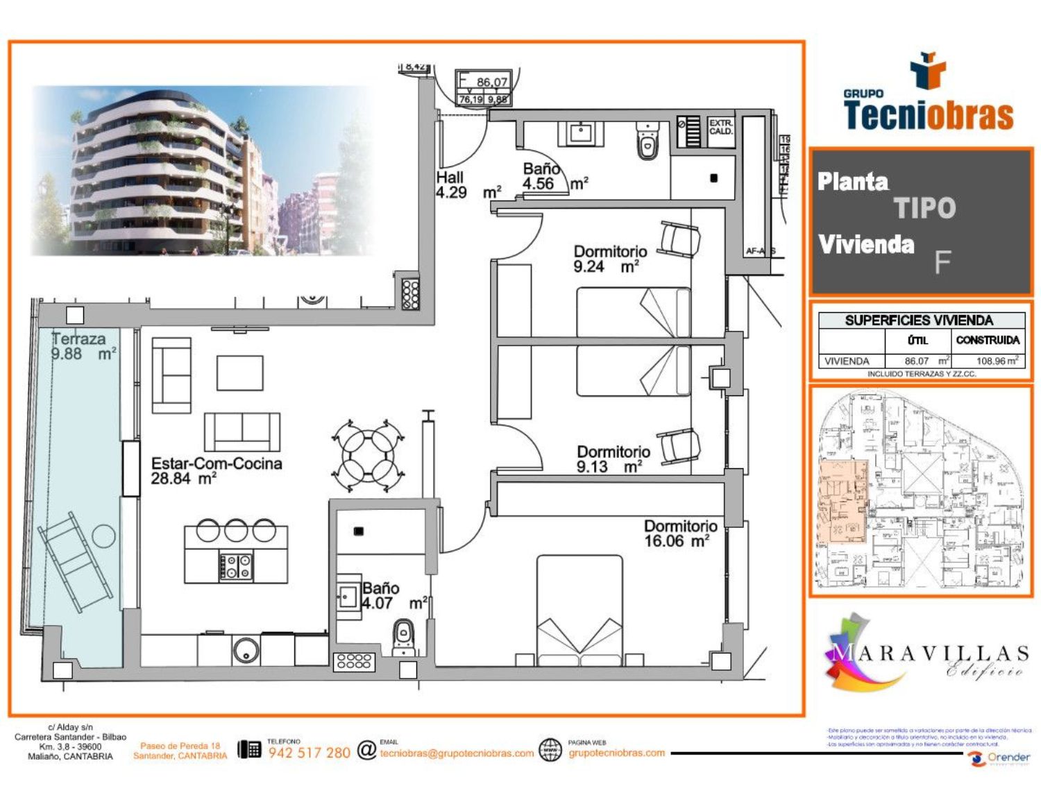 Edificio Maravillas es un nuevo proyecto residencial y urbano de Grupo Tecniobras en el corazón de Oviedo, un emplazamiento estratégico, bien comunicado y cercano a zonas de ocio, centros comerciales y servicios públicos de proximidad.45 viviendas de 2 y 3 dormitorios. Edificio Maravillas cuenta con 36 espectaculares viviendas repartidas en 6 alturas, 4 bajos y 5 especulares áticos. Trasteros y garajes opcionales. Su diseño exterior, con un marcado estilo vanguardista, esconde un nuevo sistema de fachada ventilada de alta eficiencia, así como una distribución óptima de los espacios interiores y una espaciosa terraza en cada vivienda. Su orientación favorece además el máximo aprovechamiento de luz natural.Diseño y equipamiento. La memoria de calidades y la selección de materiales reflejan la extraordinaria calidad de construcción del inmueble. El equipo de diseño de interiores ha priorizado los aspectos de eficiencia energética y tecnología residencial en el equipamiento de las viviendas, incluyendo pre-instalación domótica, cocinas equipadas, puertas de seguridad y un nuevo sistema aerotérmico para calefacción y agua caliente.Todos estos elementos convierten a Edificio Maravillas en una oportunidad inmobiliaria única, con un extraordinario nivel de confort y una decidida apuesta por las energías renovables, lo que se traduce en la obtención de la máxima calificación energética, tipo “A”. Para completarlo, esta promoción dispone de un extenso catálogo de opciones para una configuración personalizada del hogar.