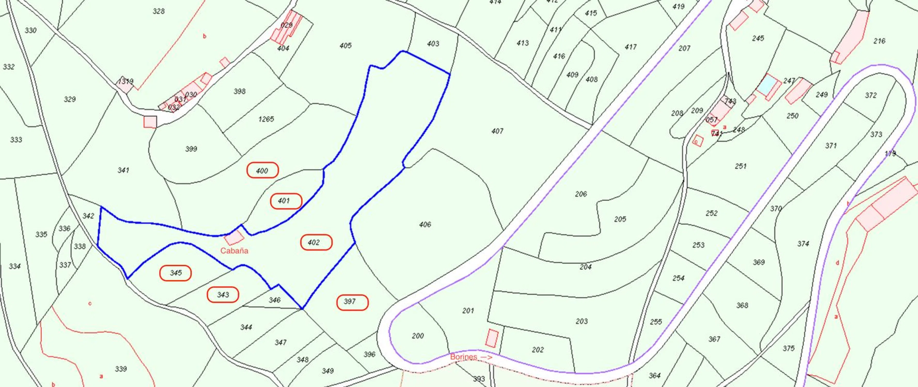 En venta finca rustica con cabaña habitable en las cercanias del histórico pueblo de Borines en el concejo de Piloña, situada en una finca con más de 14400 m2. La cabaña tiene una superficie de 110 m2 divididos en 2 plantas iguales de 55 m2 y acaba de pasar todos los trámites de registro como vivienda habitable por lo que está lista para su ocupación. Se han llevado a cabo tareas de restauración en su exterior reemplazandose el tejado y la pared derecha, reparandose la pared trasera y realizandose trabajos de rejuntado en toda la vivienda. De cara a ser habitada para uso diario o estacional necesita reforma integral en el interior así como sustitución de puertas y ventanas. Anexo a la cabaña se encuentran los restos de otra construcción anterior, que podrían ser restaurados en un garaje, casa de aperos o similar. De cara a los suministros, dispone de acceso a la red eléctrica en las cercanías y el agua es comunitaria, también en las cercanías. Esta vivienda esta situada en un conjunto de fincas con orientación Sureste de más de 14400 m2 y espectaculares vistas hacia la Cordillera del Sueve. En las fotos de los dos planos adjuntos se puede ver la situación de la cabaña así como las fincas que componen el lote subrayadas en rojo: 3 00, 343 y 345. Nótese que el color azul señaliza la finca 402 donde está situada la cabaña. Las fincas tienen acceso directo a la via pública (carretera) para entrada/salida de vehículos a través de la finca 397. Dentro de las fincas también se incluyen 2 arboledas situadas en las fincas 343 y 345. La propiedad se encuentra a escasos 25 minutos en coche de Colunga y sus playas. Borines y Villamayor son las poblaciones mas cercanas estando a 7 y 13 minutos en coche, respectivamente. Gracias a su altura y orientación, la cabaña ofrece unas vistas que merecen mucho la pena.