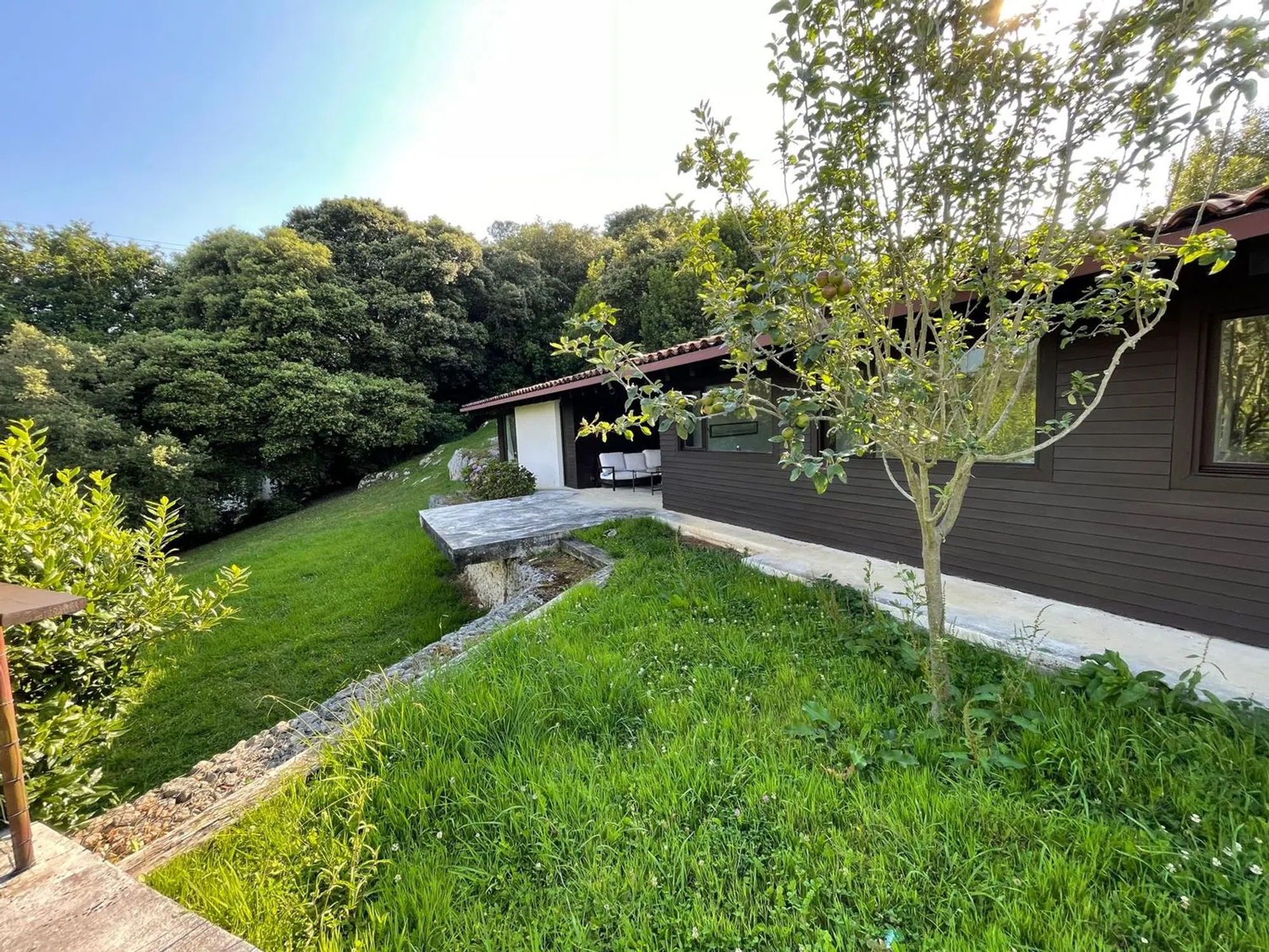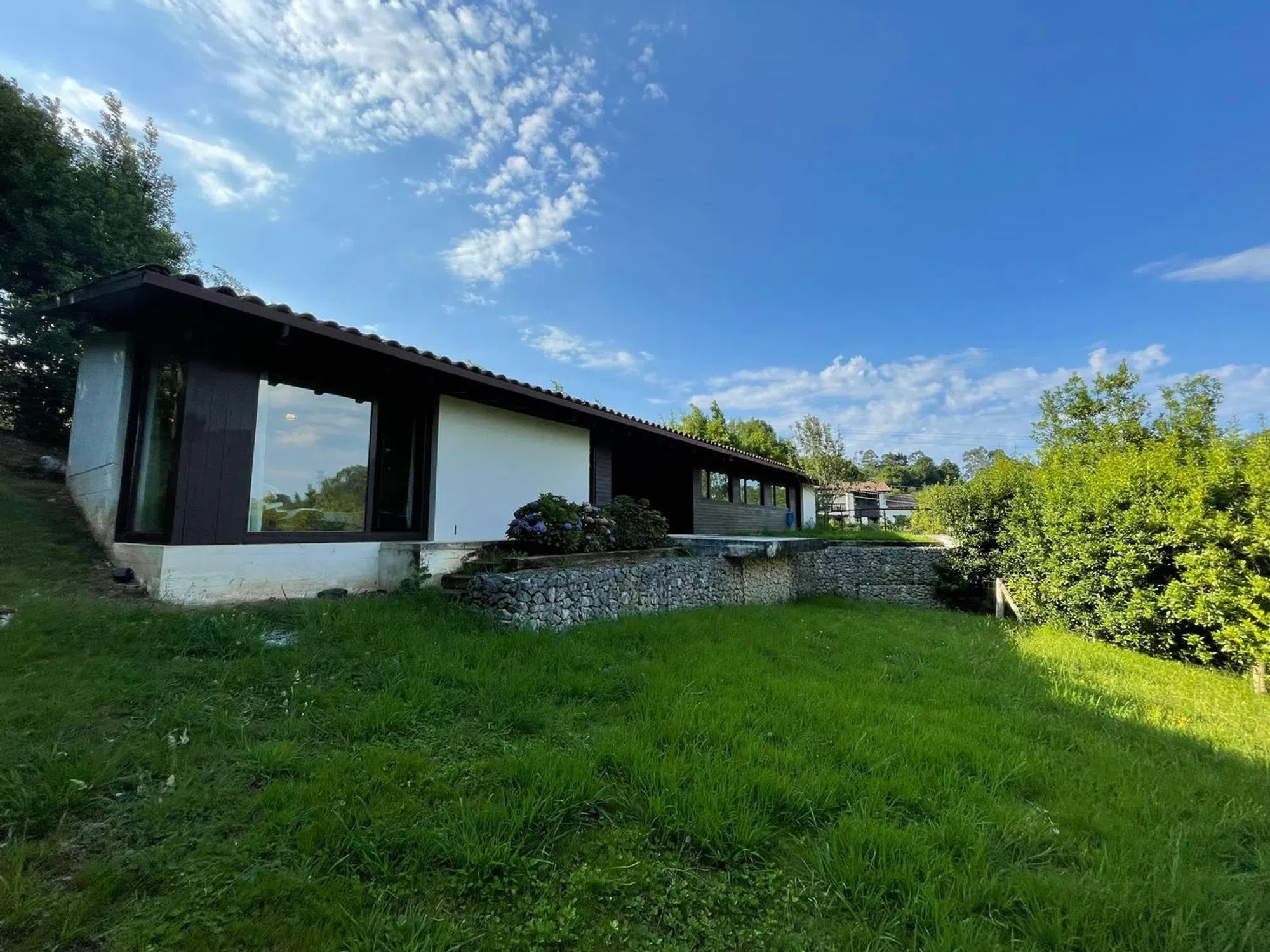 Humberto Real Estate presenta esta maravillosa y exclusiva propiedad en Ribadesella, Asturias – Chalet en Sebreño Ubicado en Sebreño, una pintoresca aldea rural típica del oriente asturiano, este chalet de diseño tradicional asturiano combina la autenticidad del entorno con la comodidad y calidad de una construcción moderna. Situado en una ladera orientada al sur, disfruta de abundante luz natural y vistas abiertas al emblemático valle, protegido de los vientos dominantes y muy próximo al núcleo de Ribadesella y sus servicios. La propiedad, con una parcela de aproximadamente 1.250 m², se integra de manera armoniosa en un entorno natural protegido, con praderas en pendiente y un bosquete autóctono donde predominan especies como nogal negro, laurel, encina, roble y castaño, entre otras. El terreno conserva su carácter agreste con un diseño minimalista en el acondicionamiento exterior, donde muros de piedra y gaviones forman aterrazamientos que crean un espacio llano ideal para disfrutar de la naturaleza. La vivienda consta de 184 m² construidos, distribuidos en una sola planta, que ofrece un amplio salón-comedor que conecta con el porche cubierto y varias terrazas alrededor de la casa, perfectas para el descanso y el ocio al aire libre. Cuenta con cinco dormitorios espaciosos y luminosos, y un garaje propio. La construcción destaca por su elevada calidad, con cubiertas de teja antigua recuperada, acabados interiores en madera teñida en tonos marrón oscuro, suelos de hormigón blanco, gres y madera maciza de roble, y grandes ventanales que permiten una continua conexión con el paisaje. La cocina está totalmente equipada y al día, mientras que la vivienda se entrega sin muebles, excepto la cocina y los baños, que permanecen tal y como se muestran en las fotos. Además, la vivienda dispone de sistemas constructivos avanzados para garantizar confort y durabilidad: cámaras transventiladas, aislamiento contra humedad, vidrios de seguridad y contraventanas. Los baños presentan acabados en azulejo blanco y gresite con encimeras de madera. En cuanto a instalaciones, el chalet cuenta con calefacción mediante caldera de gasoil con depósito individual y encendido remoto, alumbrado exterior, y redes internas de TV y datos. Las máquinas se ubican fuera de la vivienda para evitar molestias de ruido y vibraciones. Sebreño representa la esencia de la vida rural asturiana, preservando su carácter auténtico y tranquilo, rodeado de huertos, hórreos y paisajes naturales, a un paso de la playa de Santa Marina y de la oferta turística y cultural de Ribadesella. Esta propiedad es una oportunidad única para quienes buscan una segunda residencia o un refugio en un entorno privilegiado. Para más información, no duden en contactar con Humberto Real Estate, donde estaré a su completa disposición para ofrecer un asesoramiento personalizado y proporcionar cualquier detalle adicional que necesiten.