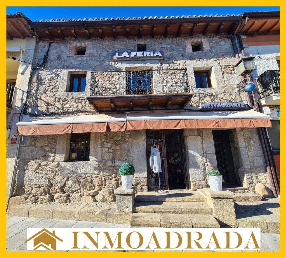 INMOADRADA VENDE Negocio de comercio emblemático dentro en la localidad de La Adrada. El local está actualmente abierto y tiene una importante cantidad de clientela fija.Se trata de un edificio, restaurado en el año 2007, de tres alturas situado en la Plaza de la localidad, un emplazamiento inigualable para situar un comercio de estas características.La parte baja se destina a local comercial que actualmente alberga un negocio de comercio de ropa, complementos y decoración con una amplia trayectoria de funcionamiento en la localidad.En la planta primera, con entrada independiente el espacio está ocupado por un bonito restaurante de carácter rústico con una atractiva decoración y que se encuentra totalmente equipado para poder reabrirlo, ya que consta de todos los elementos necesarios para ello totalmente actualizados, sin necesidad de hacer reforma.Tiene un gran comedor de piedra con vistas a la plaza con capacidad para 70 comensales aproximadamente.Consta también de una moderna cocina y los cuartos de baño reglamentarios.Esta primera planta tiene acceso directo a un bonito patio de 90 m2 con mucho encanto que se usa a modo de terraza para el restaurante.Al citado local de hostelería se accede a través de una puerta independiente del local en planta baja pero la escalera es contigua al local y se pueden comunicar interiormente solo con quitar una mampara de cristal. Dicha escalera dispone de un salvaescaleras para facilitar el acceso a esa planta a personas de movilidad reducida.Esta opción permitiría que la parte de abajo se utilizase como bar en el caso de querer dar más amplitud a este negocio.Además, al estar situado en la plaza existe la posibilidad de obtener una concesión para terraza en la misma si así se quisiera como tienen otros locales situados en la misma zona.La vivienda se encuentra en la segunda y última planta con espacios muy abiertos y luminosos, donde se sitúa el amplio salón con acceso a la cocina moderna y semi equipada y dos habitaciones y dos baños completos, uno de ellos en la habitación principal. La vivienda no necesita reforma, se vende sin muebles y está para entrar a vivir.Con sistema canalizado de bomba calor y frío en todas las estancias del edificio.Puede consultar más inmuebles en WWW.INMOADRADA.COMPara conocer nuestras novedades síguenos en facebook- Twiter e Instagram. Inmoadrada Inmobiliaria - @inmoadrada Carmen Domínguez contreras - @inmoadrada Inmoadrada Inmobiliaria - @inmoadrada Tu Inmobiliaria en el Valle del Tiétar desde 1.999.
