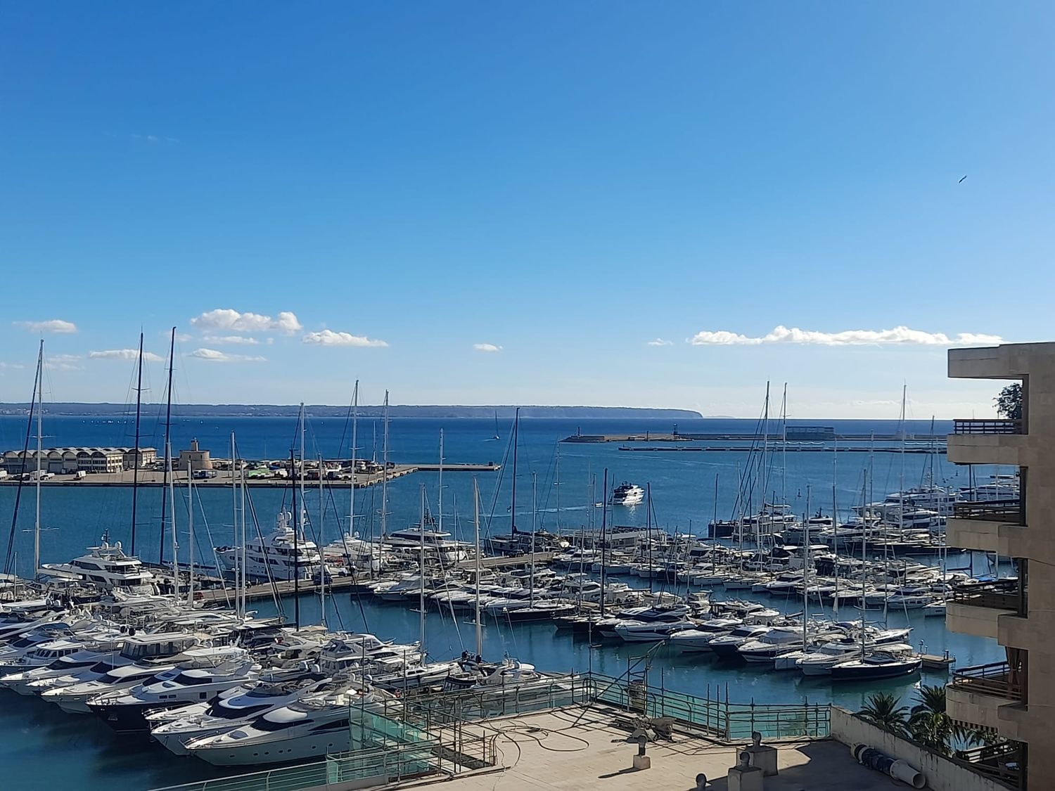 Bonito apartamento de 2 habitaciones 1 baño con fabulosas vistas al paseo maritimo de palma. Consta de 2 habitaciones 1 exterior otra interior. Terraza amplia disfrutable. Acceso directo al paseo maritimo. Totalmente amueblado y equipado. Aire acondicionado. No se admiten animales. Edificio con servicio de conserje.