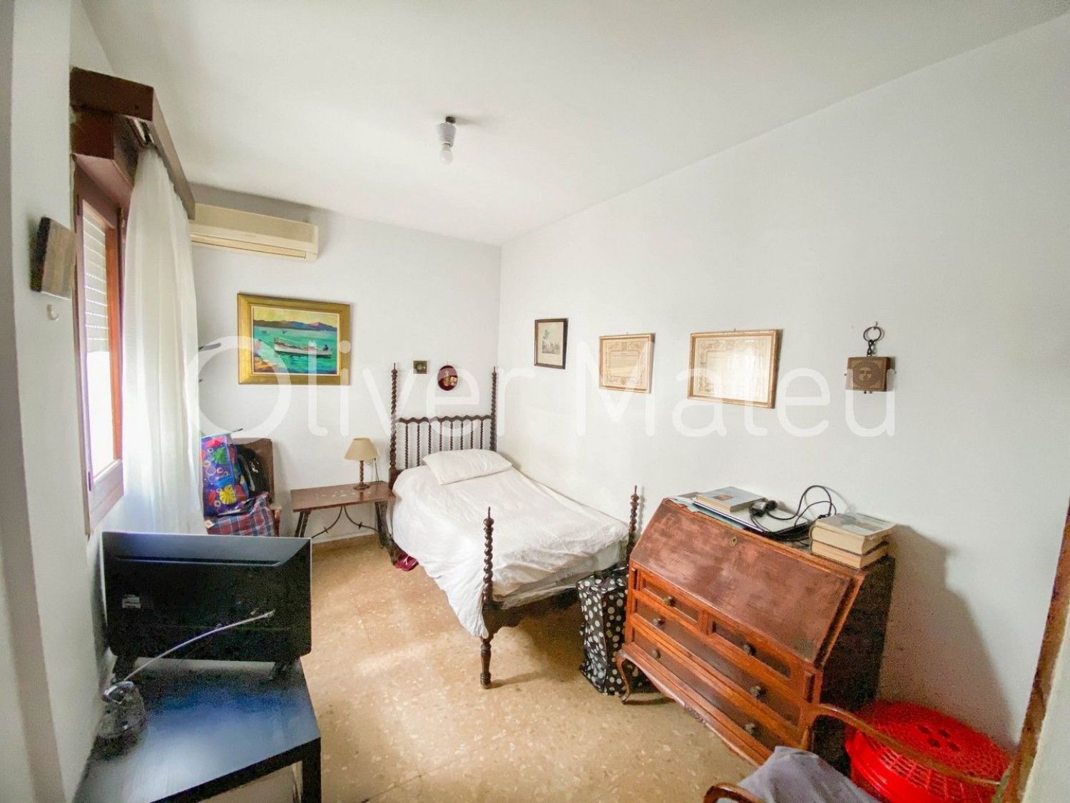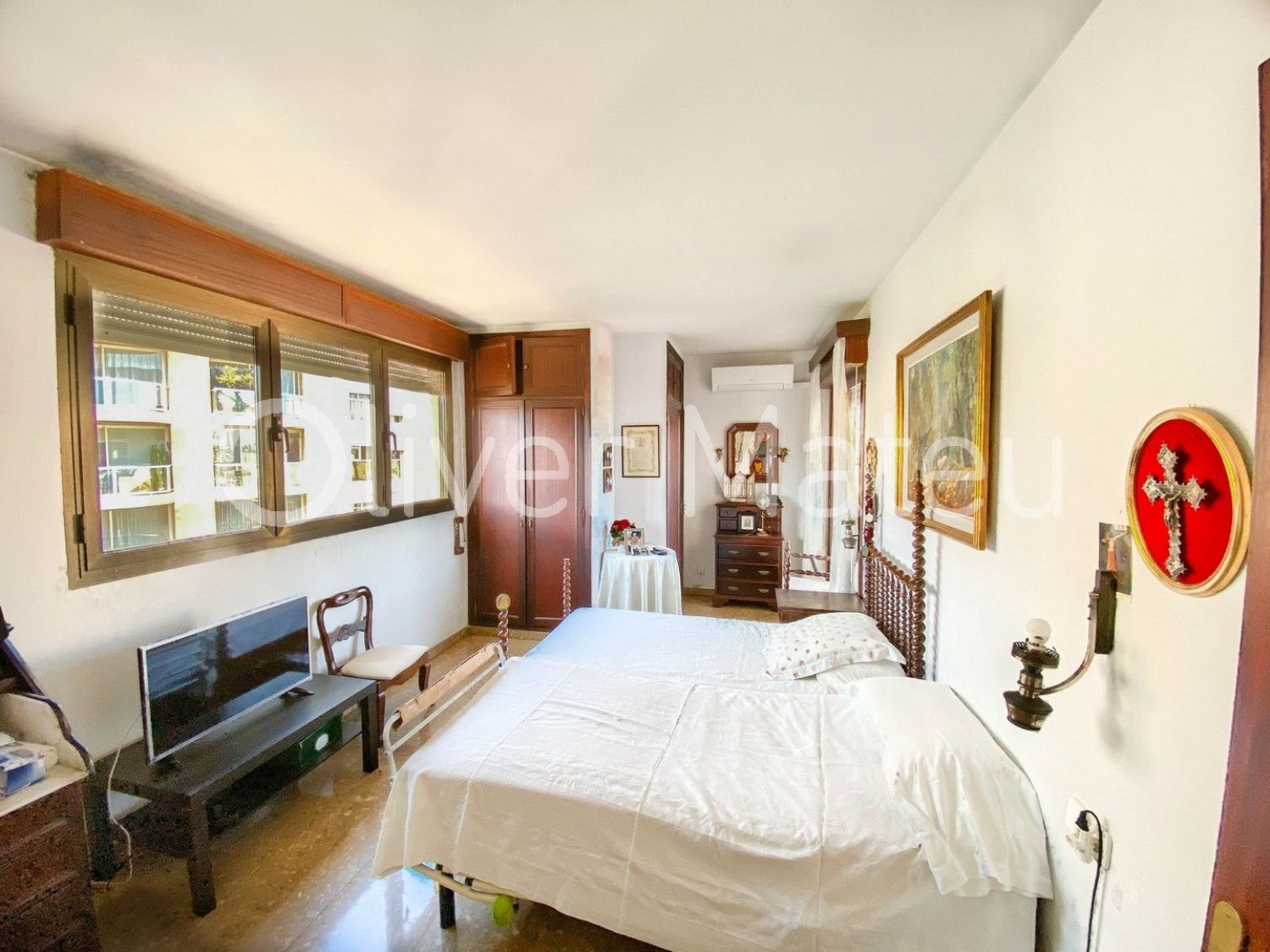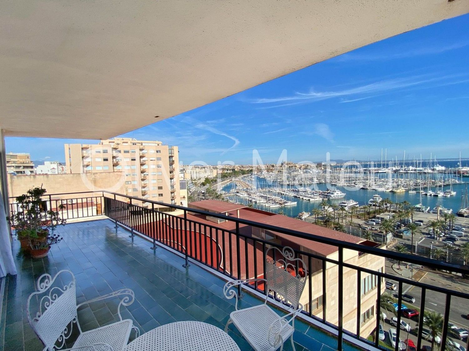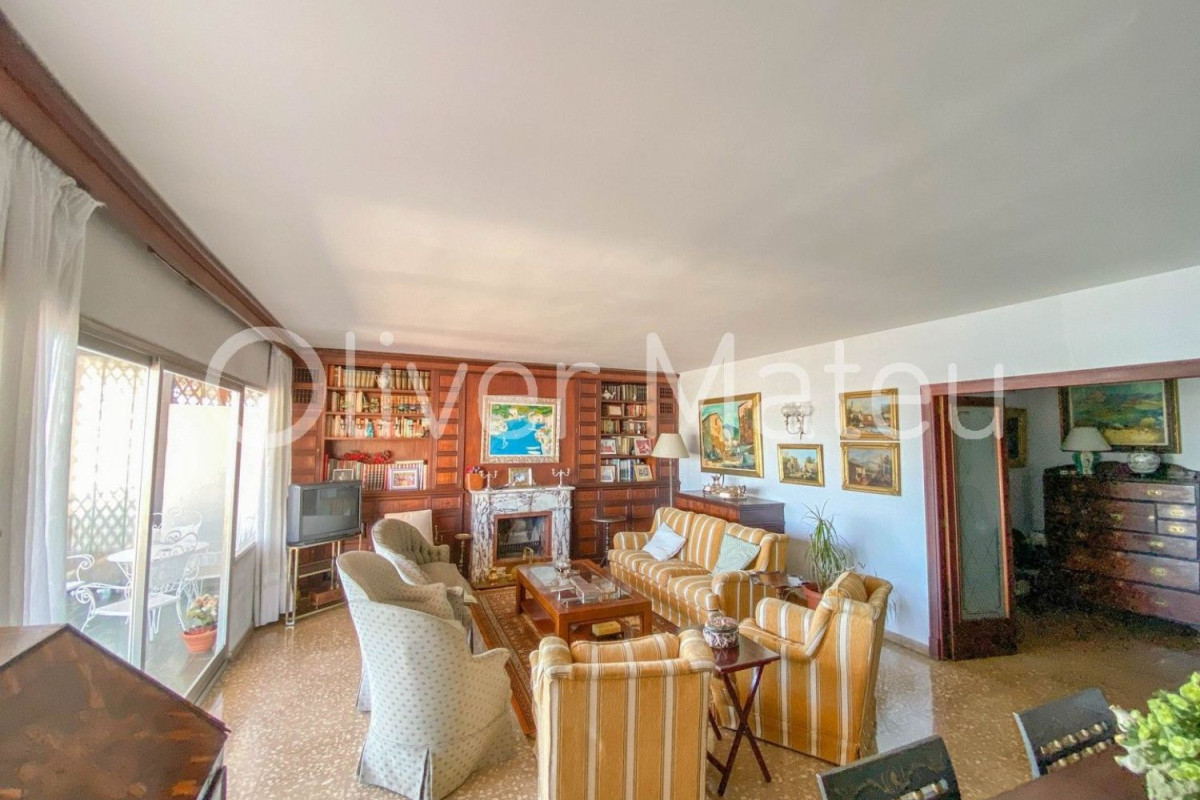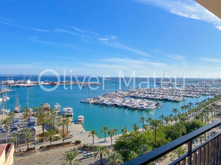 PISO CON TERRAZA EN PRIMERA LÍNEA DE MARGran piso en Paseo Marítimo de Palma, primera línea de mar con terraza y vistas panorámicas a la bahía. 180 m2 construidos, salón comedor con acceso a terraza frontal de 30 m2 con vista mar, 5 dormitorios (4 dobles, 1 individual), 2 baños. Equipado con aire acondicionado y calefacción de gas natural, ventanas de aluminio, persianas enrollables. La vivienda necesita actualizar. Edificio con ascensor en zona exclusiva de la ciudad, frente al mar.Oliver Mateu InmobiliariaRef. JC37792.