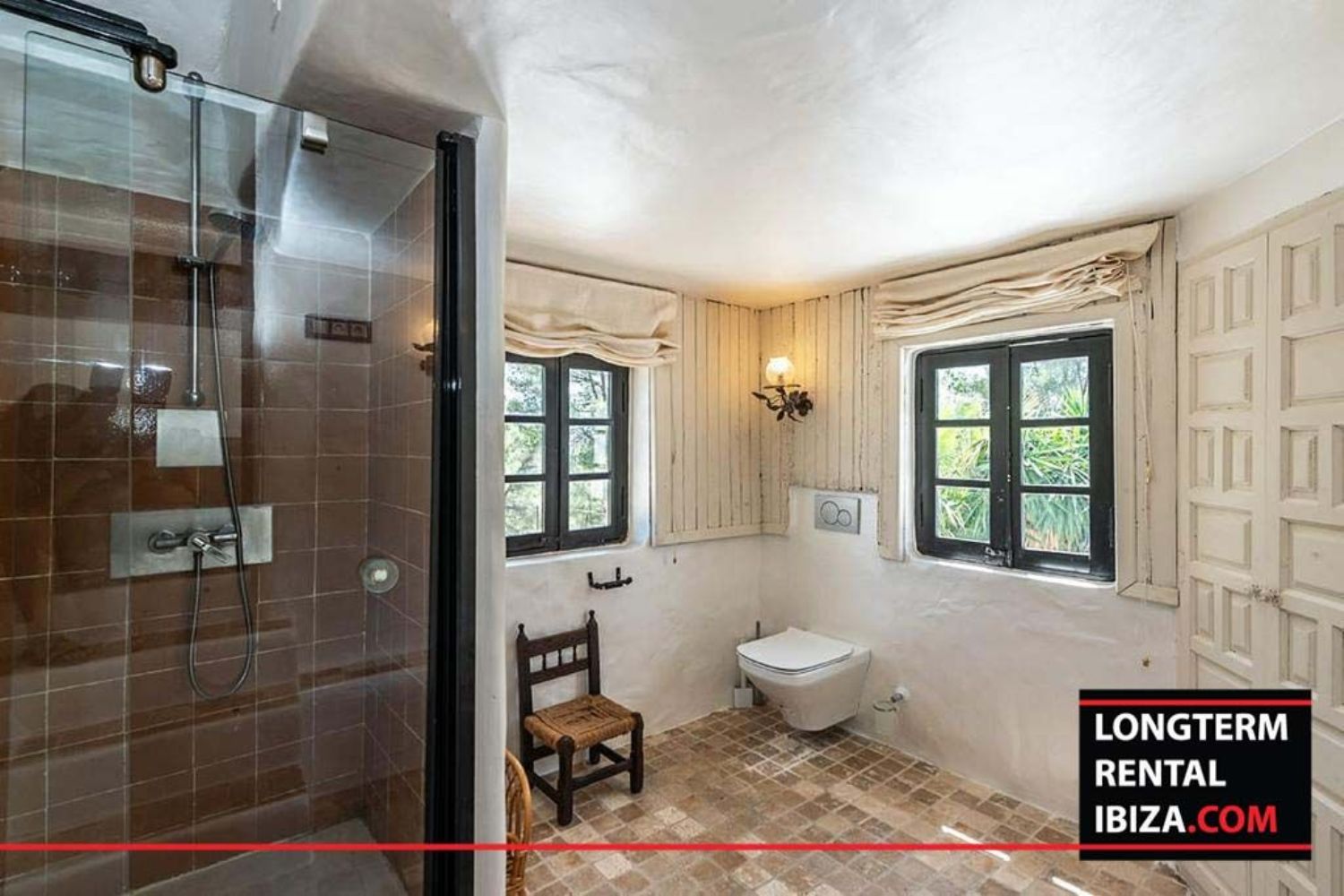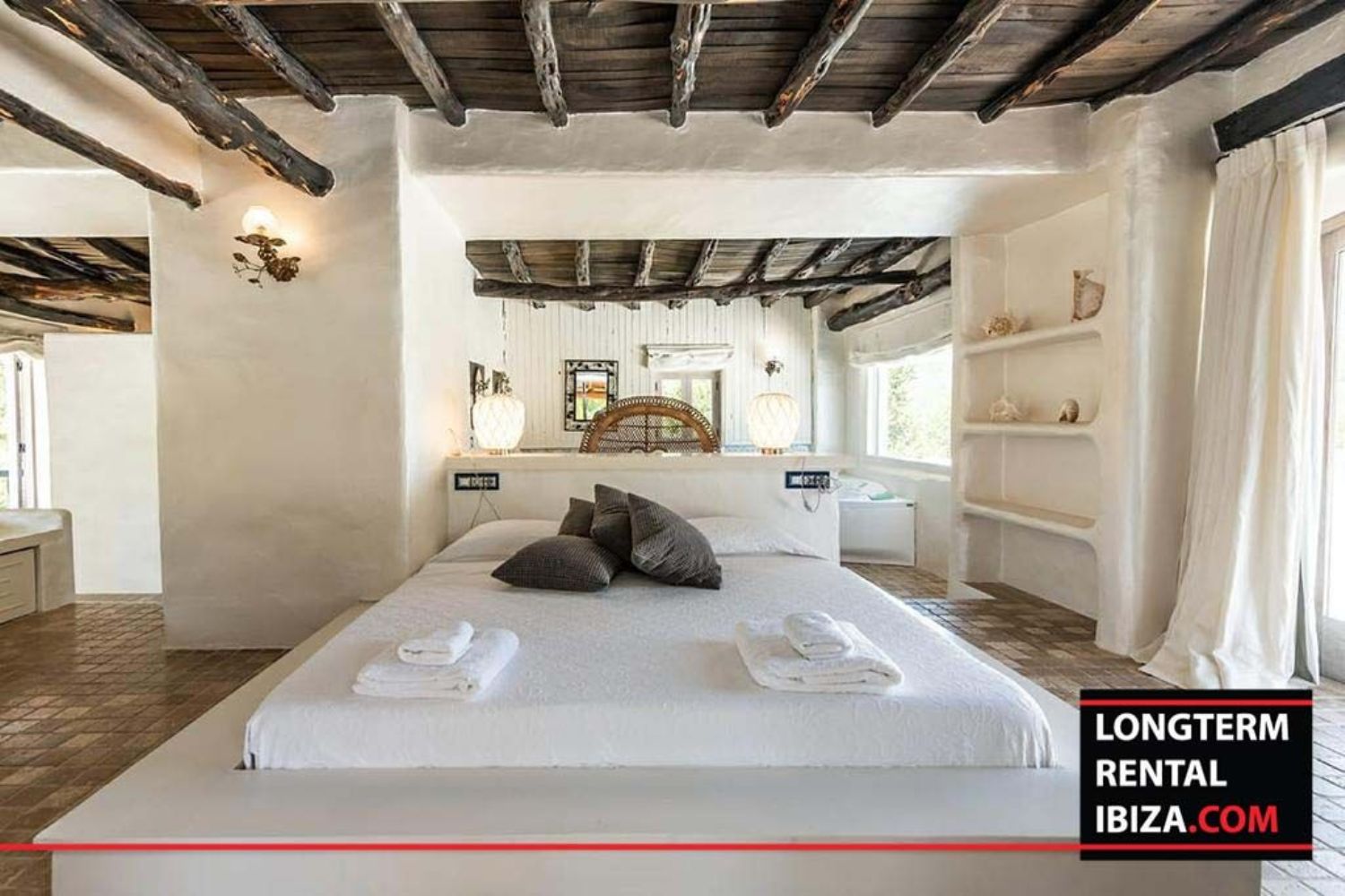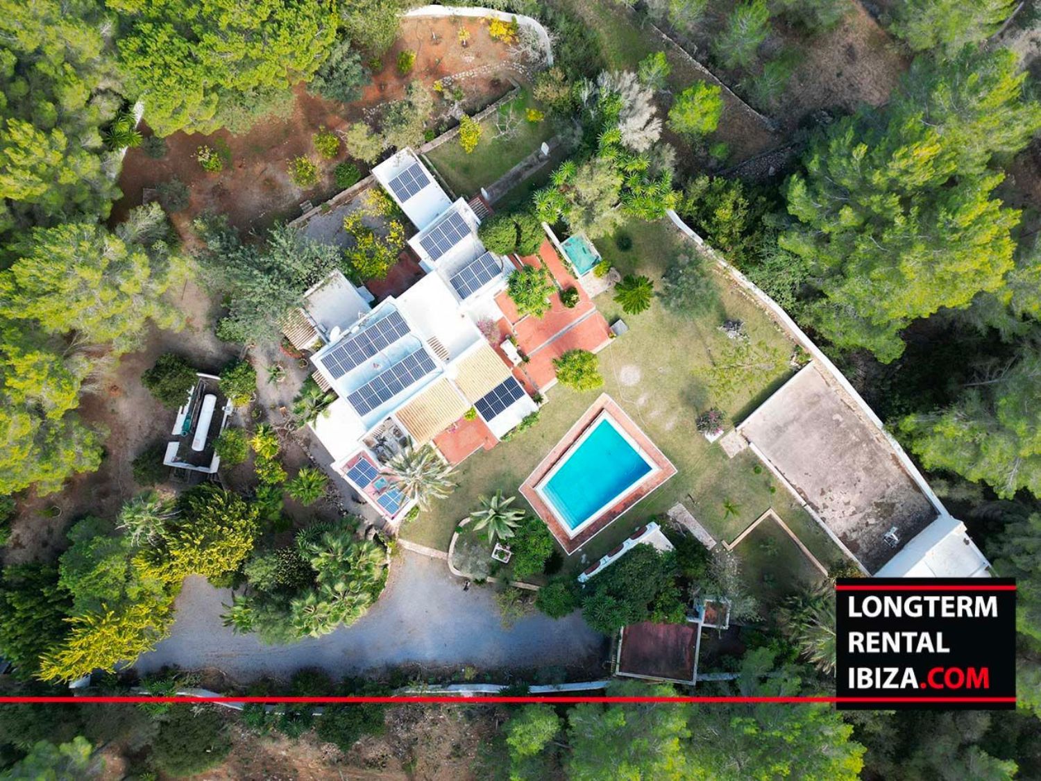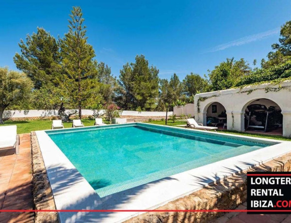 ANNUAL RENTAL - SAN RAFAEL. Beautiful centenary Finca located on the valley between san rafael and santa ines. This authentic finca it's distributed with four en suite rooms on the main house with a mix between modern and rustic for the lovers of the nature. We find a nice and bright dinning area with an opened fully furnished kitchen with an original bread oven. The finca features different lounge areas and a bbq area surrounded with palm trees with a long pool. There's also an annex with two bedrooms and one bathroom, perfect for hosting family and friends, I't has a fully furnished kitchen with fireplace and a separate entrance. The finca has air conditioning on all rooms, solar panels and a well which makes the finca fully sustainable an no additional costs. On the covered parking we find a plug for electric cars. Don't miss the chance of living on an authentic ibizenco finca all year around.