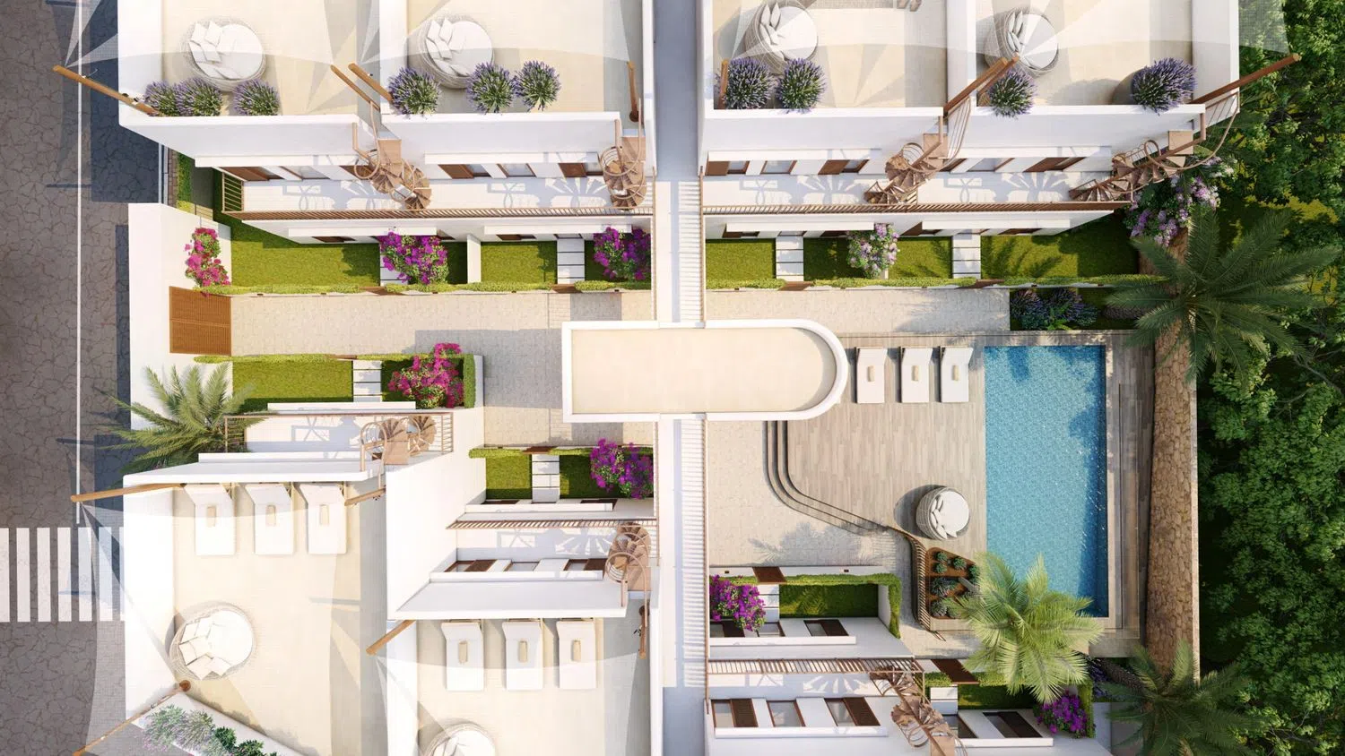 These residences offer the best of modern design with attention to detail to maximize comfort and privacy. Each unit features a wide array of amenities designed to fully enjoy the surroundings. From expansive private gardens to a community swimming pool, you can truly experience the Mediterranean lifestyle.
