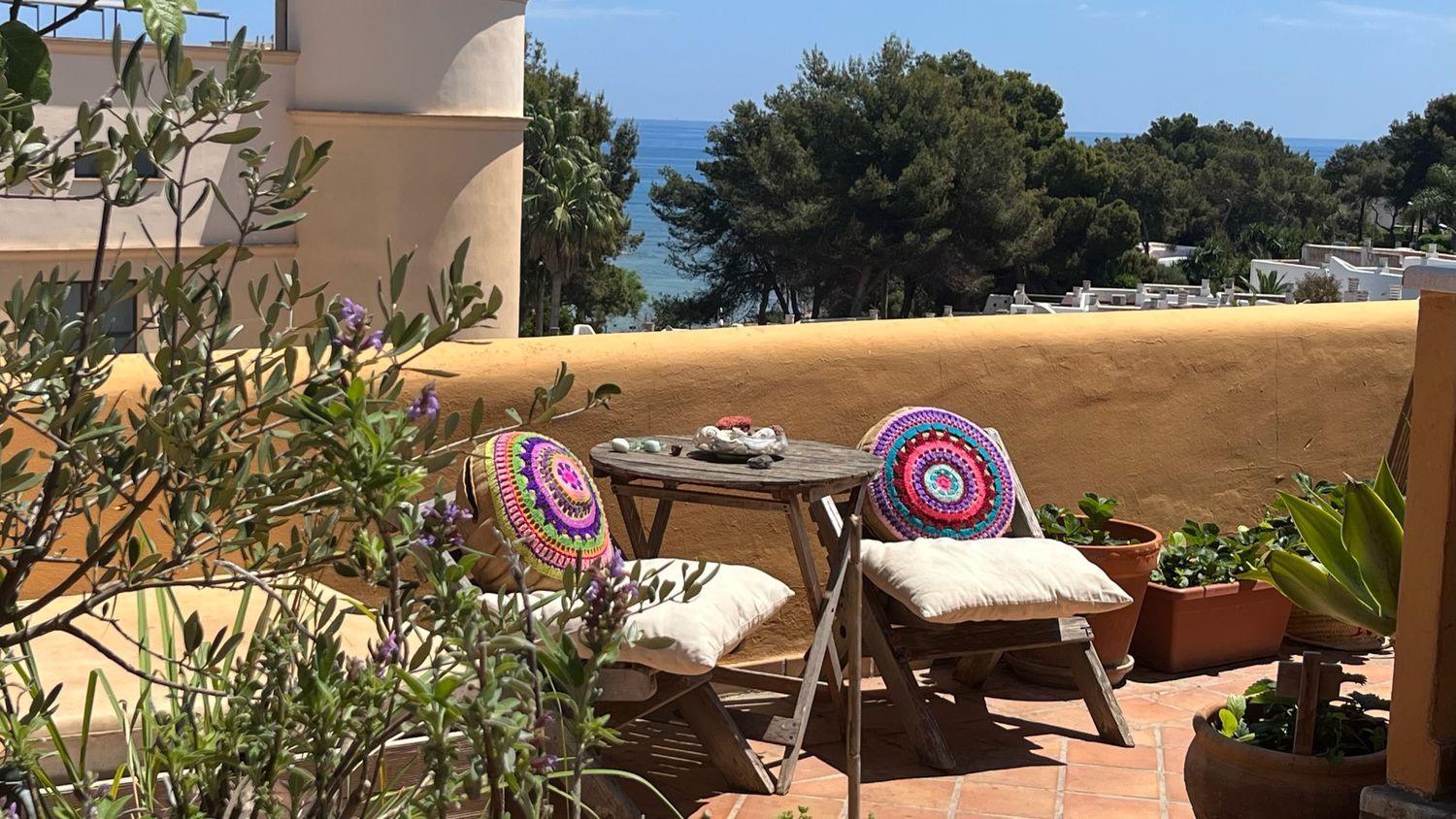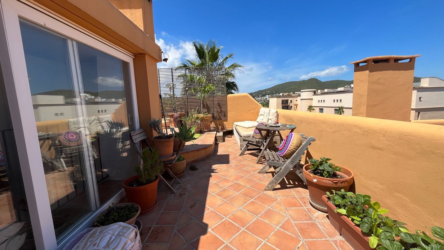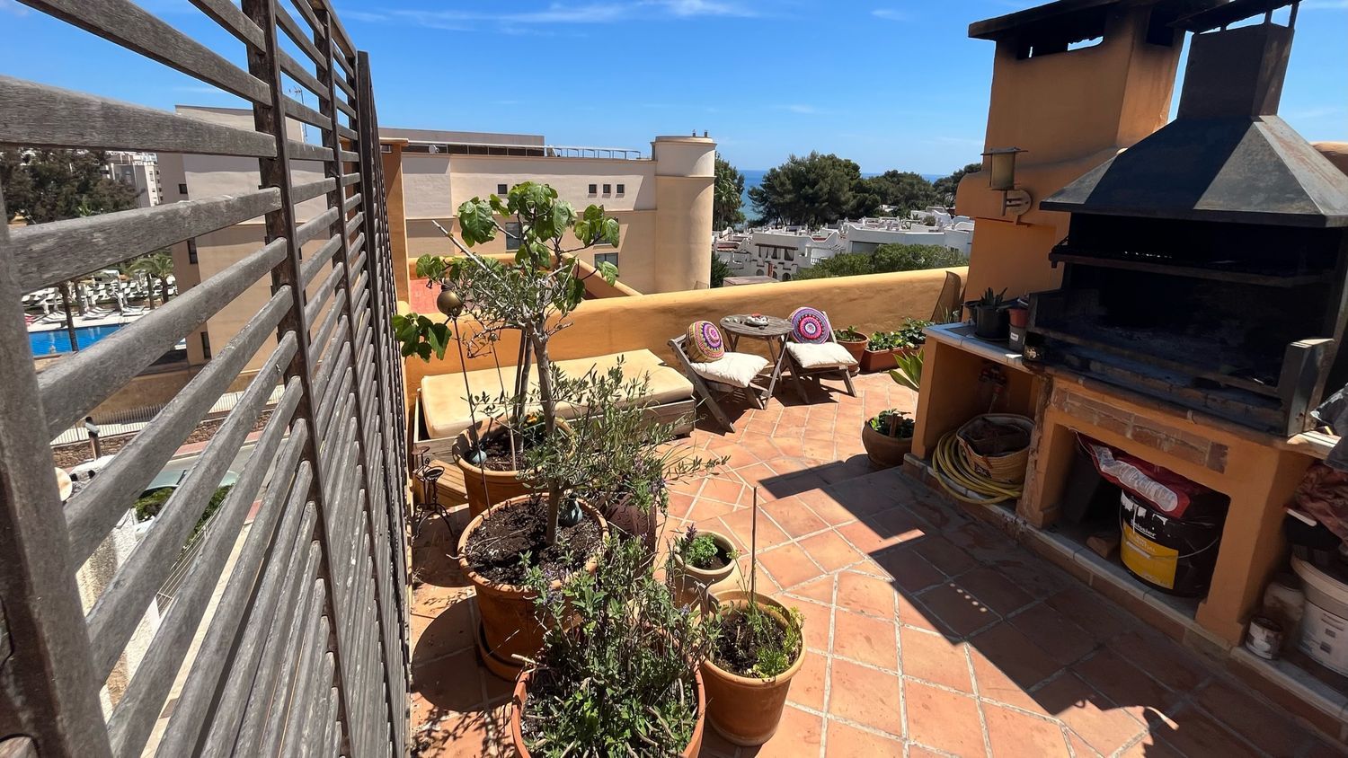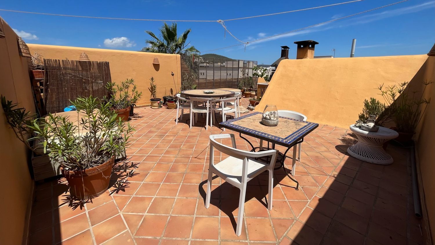 ¿Has pensado vivir en la soleada isla de Ibiza? Nuestro hermoso duplex es al mismo tiempo acogedor y espacioso, desde su gran terraza privada podrás ver el mar al que podrás caminar en un par de minutos. Este apartamento está situado en una calle tranquila de Siesta, a tan solo 15 minutos caminando de Santa Eulalia del Río.Santa Eulalia es una codiciada urbanización del noreste de la isla, con vida durante todo el año, donde encontrarás diversidad de restaurantes, tiendas y todos los servicios necesarios para vivir con comodidad.Adicionalmente, cuenta con un divertido paseo marítimo, una prestigiosa marina, colegios privados y públicos, centro de salud, farmacias y un polideportivo.El edificio con solo 12 propietarios y muy bien mantenido tiene piscina que puedrás ver desde el apartamento. Al llegar al piso, encontrarás una pequeña terraza y un acogedor y elegante salón con imponente techo de 5 metros de altura, una útil chimenea y una gran escalera que conduce a una espaciosa y cómoda terraza de vista 360º y bbq al aire libre.El apartamento tiene 3 dormitorios y 2 baños. Una habitación principal con baño en suite y vestier, y otros dos que comparten un segundo baño. Hay calefacción central de gas en todas las habitaciones.Los metros útiles son 115mt2 más una gran terraza privada de 80mts2.Por favor comunícate conmigo, el propietario, en caso de estar interesado. Aprovecha esta oportunidad ideal para familias que deseen vivir con tranquilidad y comodidad.