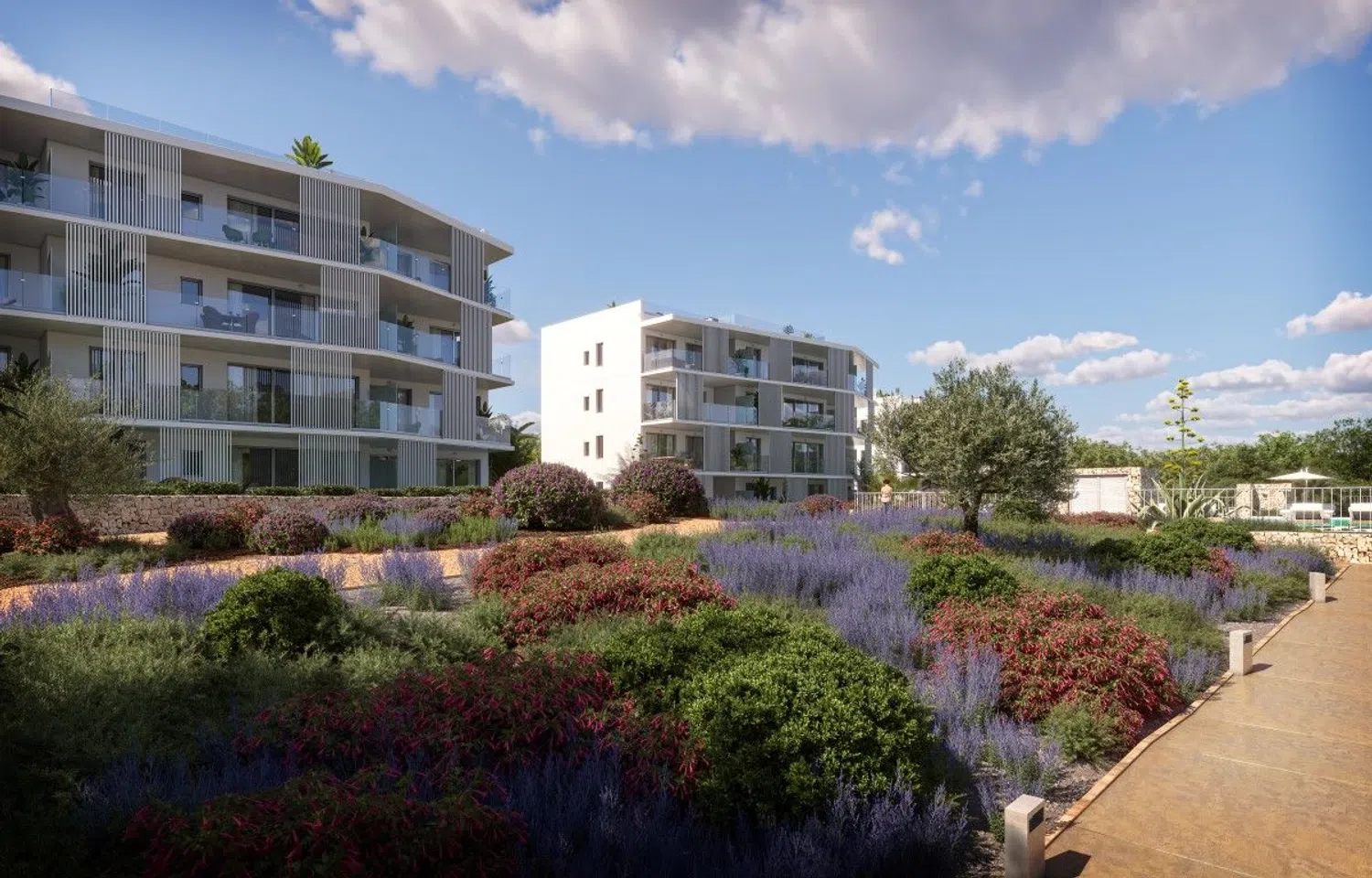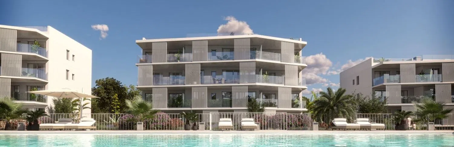 Cala d'Or, located in Santanyí on the Balearic Islands, offers a new opportunity to acquire modernly designed apartments. This project consists of 36 apartments with innovative architectural style, predominantly in white. The facilities include extensive landscaped areas and a community swimming pool that allow you to enjoy the excellent Mediterranean climate. Ground floor residences feature large terraces with porches and private gardens, while other apartments have spacious terraces offering beautiful views of the common areas. The penthouses have access to their own solarium terrace, prepared for the installation of a pool.
