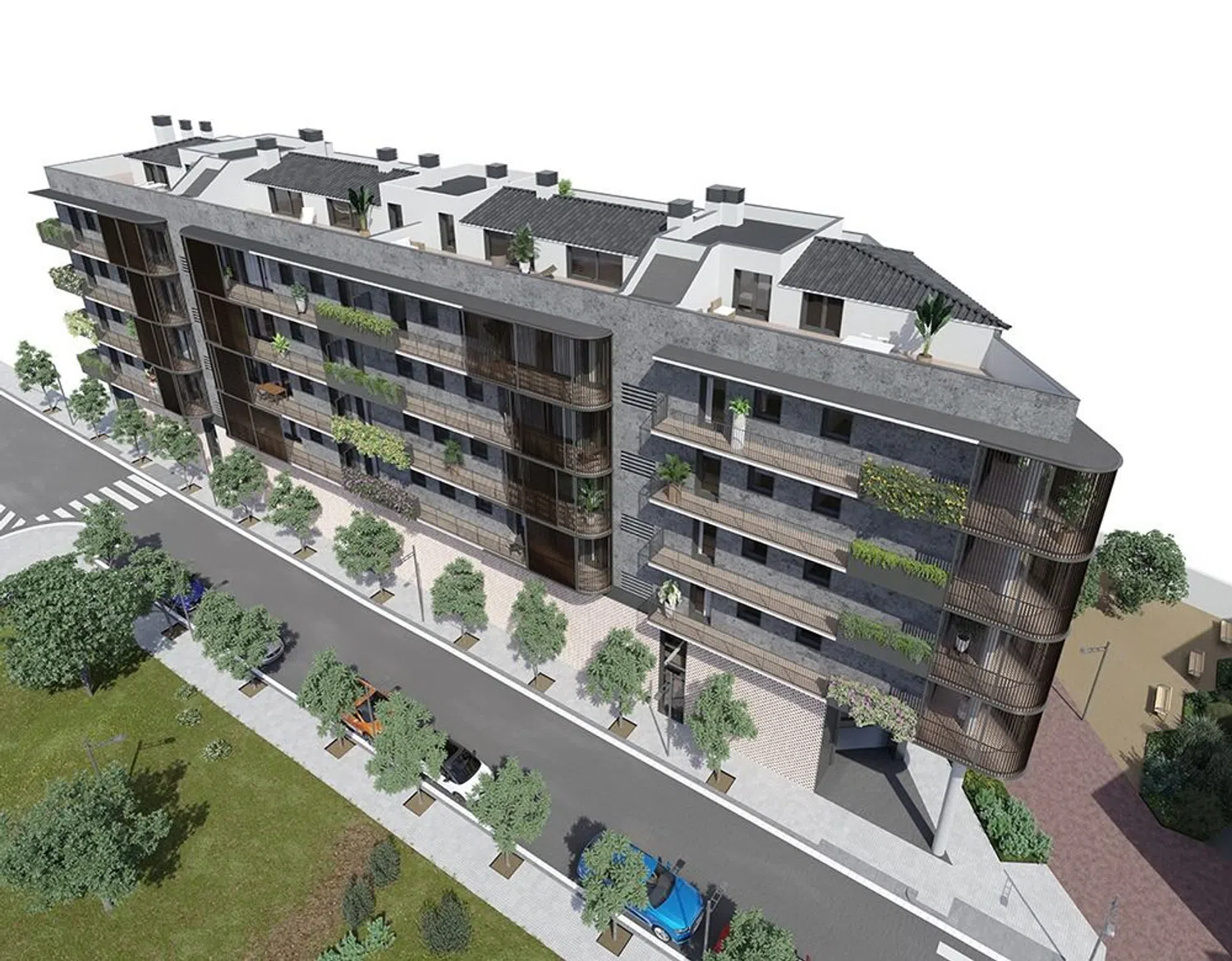 This exclusive project consists of 28 apartments, each featuring spacious terraces to take advantage of the pleasant weather and stunning views. Designed to maximize natural light, the homes are perfectly oriented east-west and positioned opposite a park. This strategic location floods each home with sunlight throughout the day. More than just residences, they offer a vibrant community experience, including a large central community area with a pool that also faces the internal park, ensuring plenty of natural light for most of the day. Additionally, dedicated spaces for work and social activities encourage an active, communal lifestyle without the need to leave home.