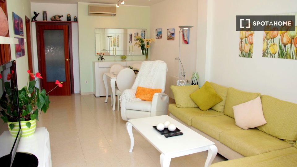 Looking for a cozy space in Cubelles? Check out this furnished room in a shared 3-bedroom apartment. Enjoy modern amenities like air conditioning, WiFi, and a balcony. The kitchen is fully equipped and the apartment receives natural light with its exterior orientation. Please note this property is for students only, and pets and smoking are not allowed. Additionally, periodic cleaning is provided, ensuring a neat environment. The property has been personally verified by Spotahome for your peace of mind.