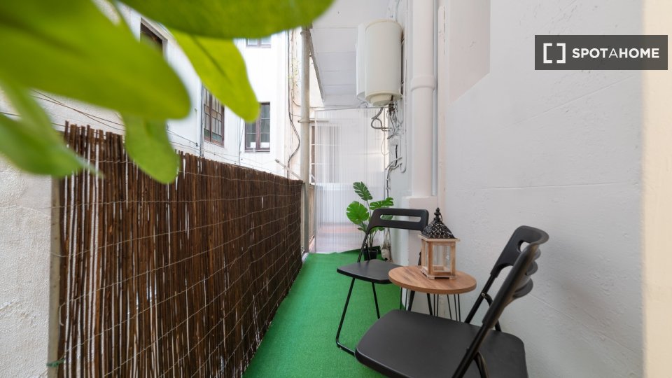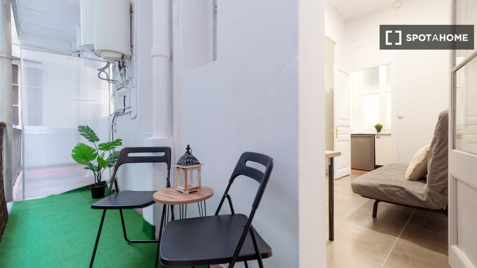 Furnished studio apartment for rent on Carrer De Bailèn. The property includes balcony, dryer, washing machine, and dishwashing.