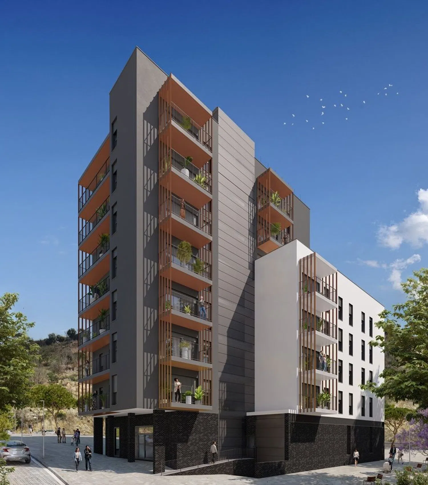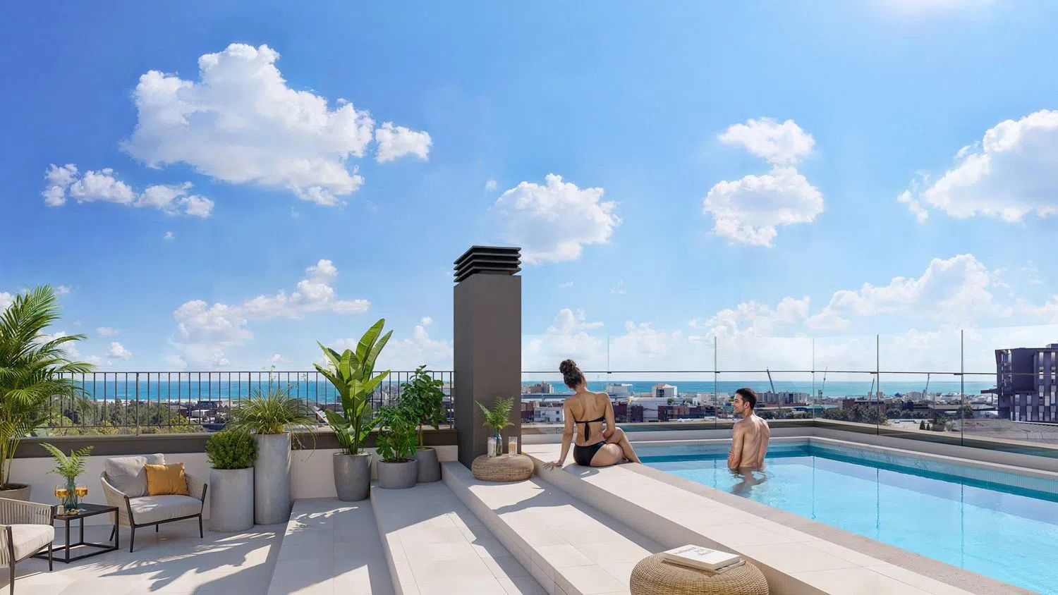 Construction has commenced on a residential development consisting of 25 apartments, featuring 2 to 3 bedrooms, terraces, and inclusive parking and storage spaces. The community amenities are highlighted by a rooftop swimming pool and a sunbathing area, perfect for family relaxation during the warmer months. These modern residences are set just 15 minutes from the heart of Barcelona, providing an ideal urban living experience.
