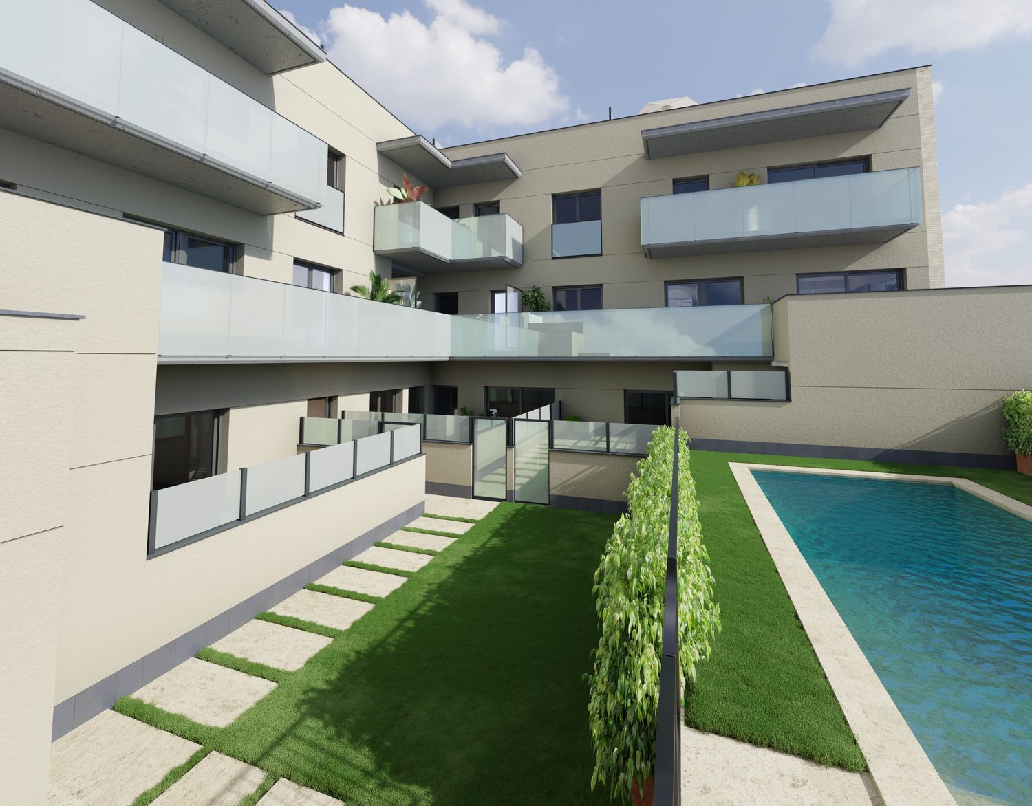 Discover an exceptional offering of 24 residences located in a peaceful enclave of Barcelona, Cardedeu, providing the perfect blend of tranquility and convenience. The bright two-story building features entirely exterior apartments with sizes ranging between 86 m² and 99 m², distributed across the ground floor, first floor, and duplexes on the second floor. Residents can choose from thoughtfully designed three-bedroom homes with terraces at level or duplex configurations on the upper floor.