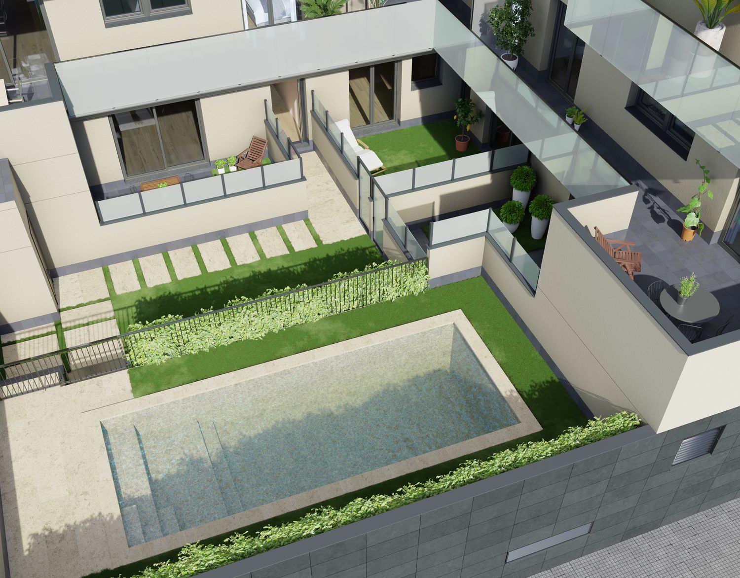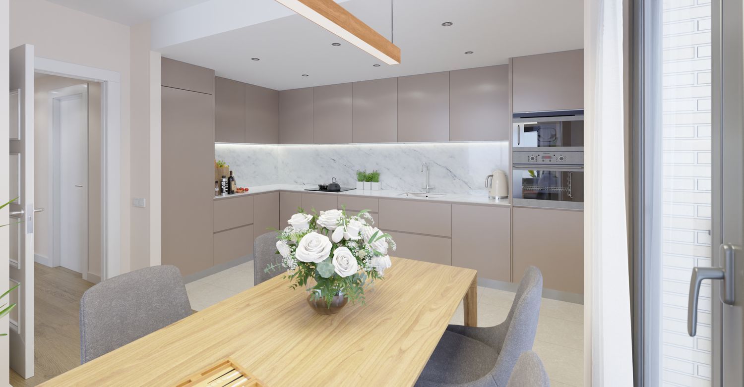 Experience community living enhanced by a stunning shared space that includes a sunlit swimming pool, lush green surroundings, and a rooftop chill-out zone perfect for enjoying the summer nights and the sunny days of spring. The facility also includes showers for refreshing after a swim. Ample parking spaces and storage units are available on the premises. Each residence boasts high-quality finishes, featuring modern interior designs with porcelain bathroom tiles, thermostatic showers, cushioned toilet seats, and anti-slam drawer systems.