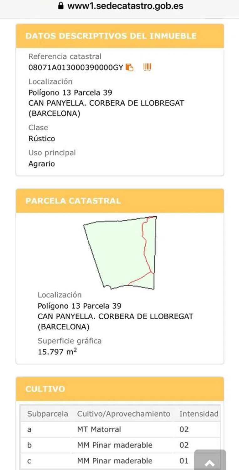 En venta finca rústica de 1,5 hectáreas ubicada a tan solo 2,5 km de Corbera de Llobregat. La propiedad cuenta con una excelente orientación y acceso asfaltado, limitando con la urbanización Can Armengol. Se encuentra distribuida en 4 bancales con un suave desnivel, lo que la hace ideal para la plantación de árboles o para su explotación agrícola. Cabe destacar que, debido a su calificación como terreno rústico, no se permite la edificación de viviendas y no dispone de conexión a agua ni electricidad.