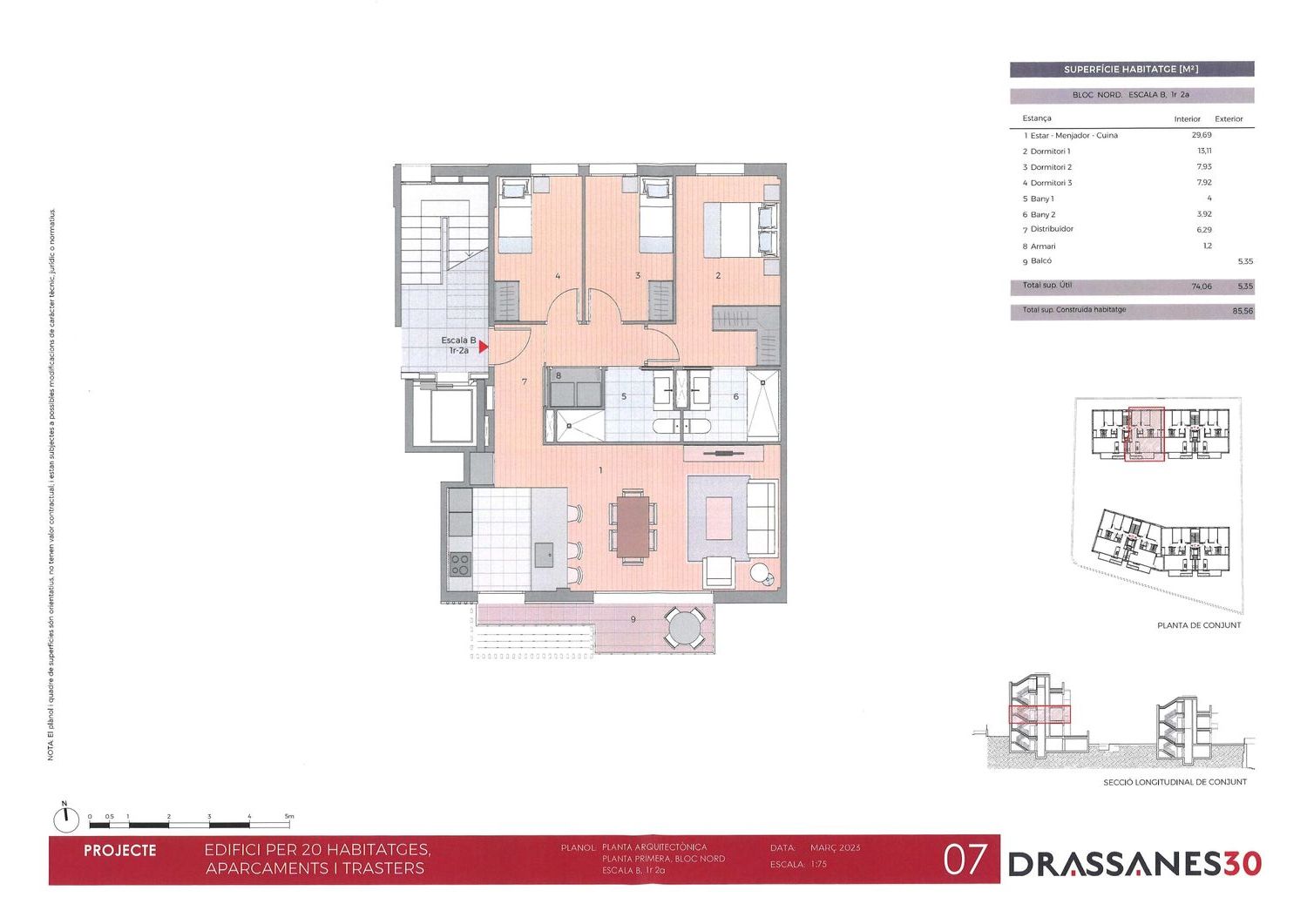 Exclusiva promoción de 20 viviendas, plazas de aparcamiento y trasteros, zona comunitaria con jardín y piscina.Viviendas de 2 y 3 dormitorios con terraza o balcón que destacan por la gran luminosidad en todos sus espacios. Disponen de calefacción y aire acondicionado por aerotermia, suelo de parque flotante de tipo laminado excepción de cocina y baños, donde se dispondrá de pavimento de gres porcelánico antideslizante, cocina completamente equipada, baño con ducha a ras de suelo y baño con bañera, carpintería interior en madera lacada en blanco, puerta de entrada a la vivienda de madera lacada color blanco, con marco y bisagras anti-palanca y hoja blindada, carpintería exterior de aluminio con rotura de puente térmico, persianas motorizadas.Posibilidad de elección de acabados. CEE nivel A. Zona de día orientada al Sur.Plazas de aparcamiento y trasteros opcionales, no incluidos en el precio.A un paso de todos los servicios sin renunciar a la tranquilidad que nos ofrece la zona: centros sanitarios, escolares, guardería, supermercados, instalaciones deportivas, transporte público (parada bus y líneas R4 y R8 Rodalies).