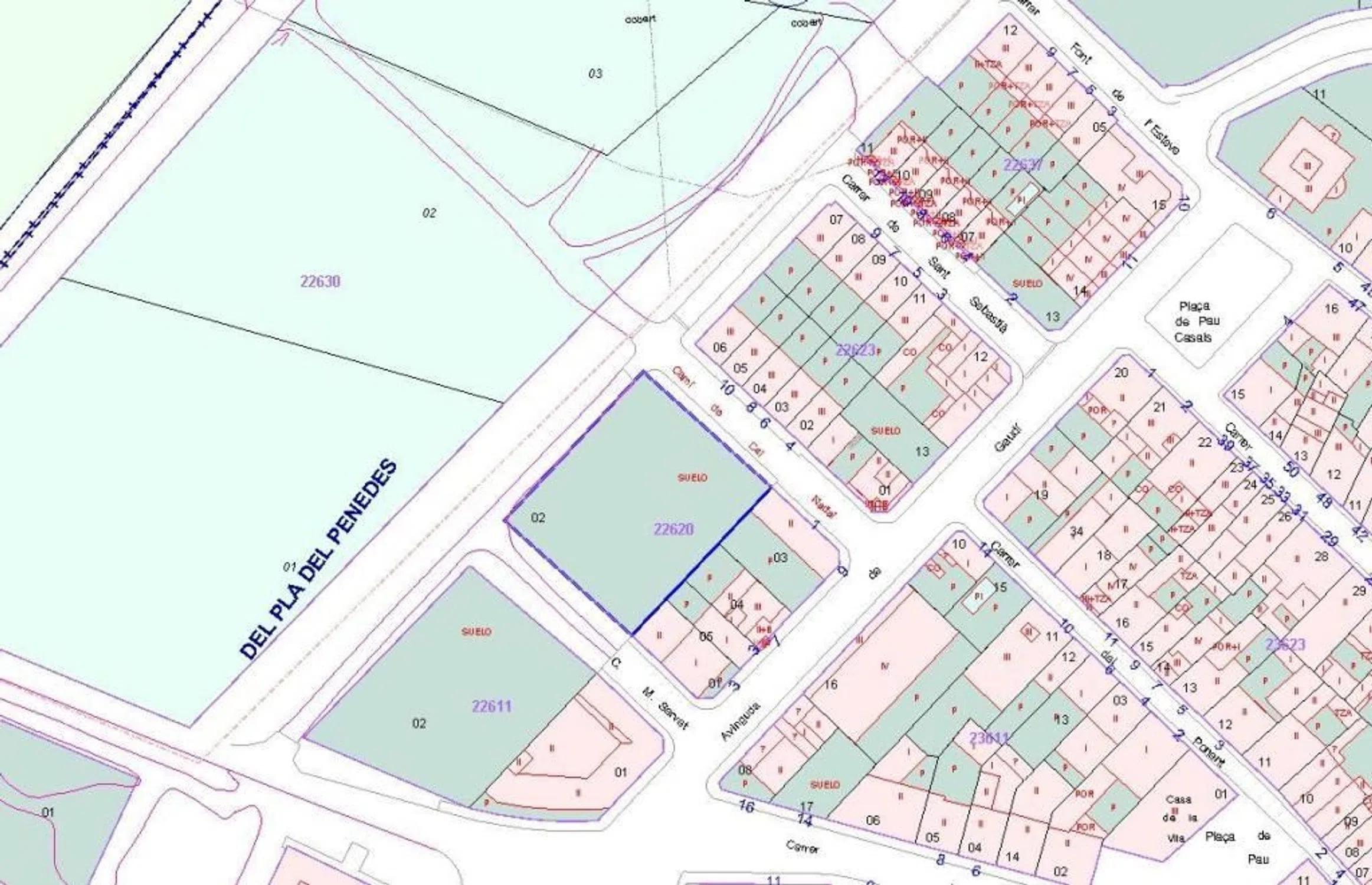 Suelo Sectorizado en El Pla Del Penedès, provincia de Barcelona, de uso Residencial Unifamiliar con una superficie de 1.257, 6 m², con edificabilidad estimada de 1.836, 1 m². El de propiedad que se posee en la finca registral es del 100. El solar tiene fachada a tres calles; cami de cal Nadal, Servet i la Rambla. Solo está urbanizada la calle Cami de Nadal. Según consulta con el técnico del ayuntamiento, el procedimiento es por licencia directa condicionada a urbanizar las calles. No hay proyecto de urbanización ni de reparcelación.