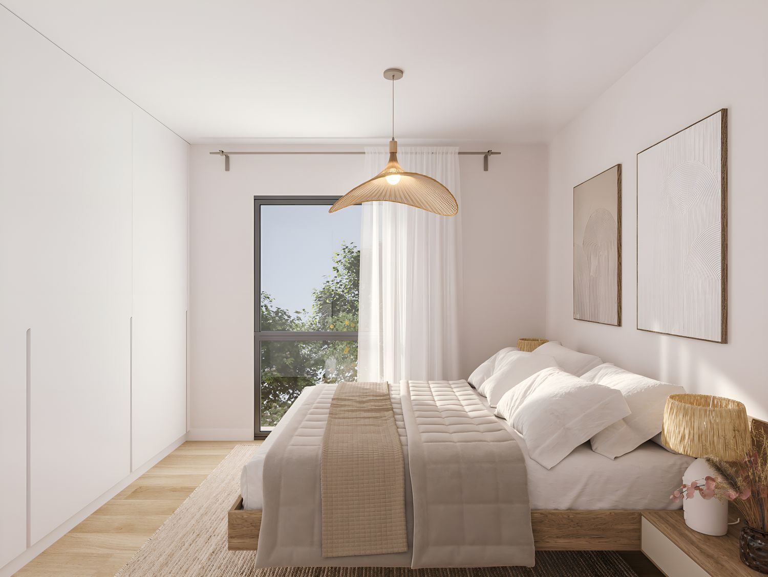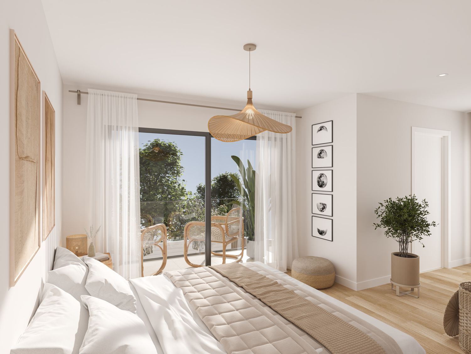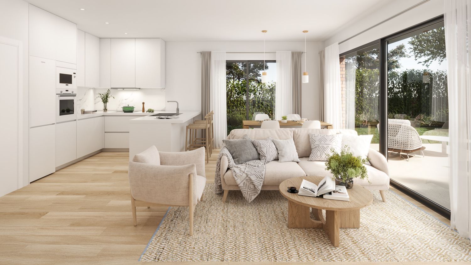 The ground floor delights with large glass windows, infusing the open-plan kitchen and living area with natural light and offering seamless access to the garden, where an expansive terrace awaits. In addition to the kitchen, living room, a toilet, and laundry room, the ground floor includes a versatile room, perfect as a playroom, study, library, or additional bedroom. An open staircase leads to the upper floor, designated as the night area, comprising a master suite and three additional bedrooms sharing a generous bathroom.