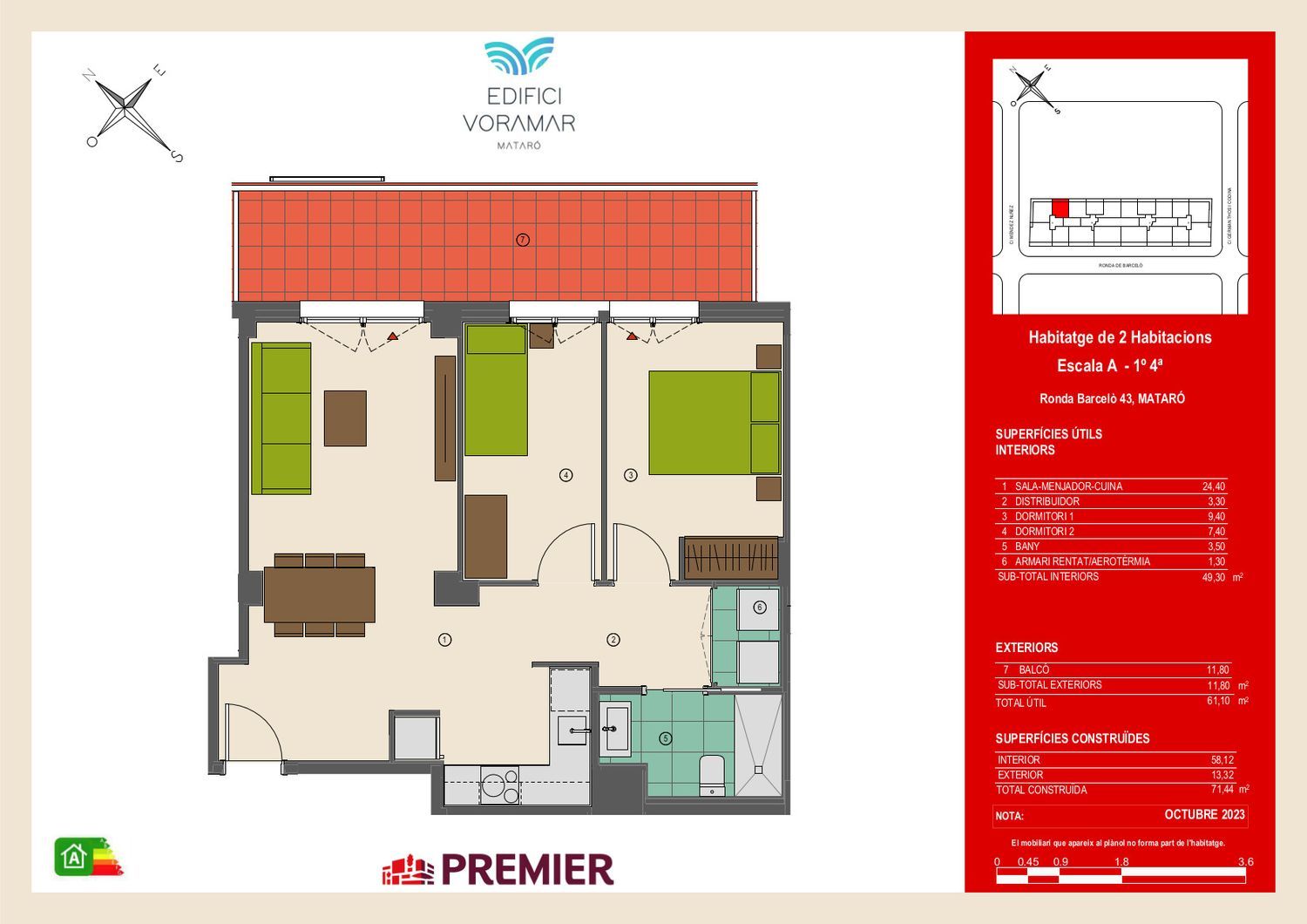 Terraza de 12,79m2Viviendas de obra nueva en venta, de 2 y 3 dormitorios en Ronda BarcelóEdificio Voramar tiene una situación excepcional al lado de la estación de RENFE, el puerto y muy cerca de la plaza Santa Anna, centro neuralgico de la Población, se compone de pisos y áticos de 2 y 3 dormitorios todos con CALIFICACIÓN ENERGÉTICA A tanto en consumo de energía como en emisiones de CO2.