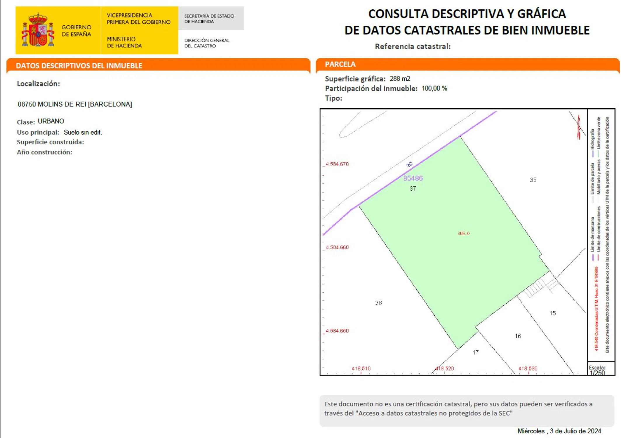 Les presentamos esta excelente oportunidad de inversión en el núcleo urbano de Molins de Rei. Se trata de un terreno urbanizable de 288 m² ubicado en una de las zonas más demandadas del municipio, en un entorno consolidado y con todos los servicios a su alcance. La parcela se encuentra en una ubicación estratégica, muy bien comunicada y a tan solo 30 minutos de Barcelona, lo que la convierte en una opción ideal tanto para desarrollar una vivienda, según normativa urbanística. Una oportunidad única para quienes buscan construir en una zona residencial cercana a la ciudad, con excelentes conexiones y un entorno en constante crecimiento.