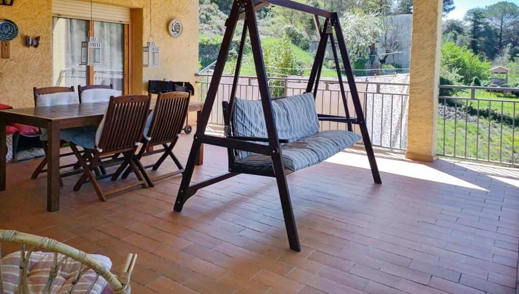 - Terraza a pie de comedor: Desde el salón y las habitaciones accedemos a la gran terraza con unas vistas panorámicas que te trasladan a un capítulo de una novela francesa y a noches de verano disfrutando de un buen vino y un libro bajo las estrellas.