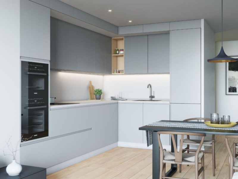 Each residence boasts a generously sized living room adorned with expansive windows that flood the space with natural light, creating a warm and inviting ambiance. Available with 1 to 3 bedrooms, the homes have well-appointed bedrooms that open to terraces and balconies, complete with fitted wardrobes. High-quality parquet flooring adorns the living spaces, while the bathrooms and kitchens feature elegant gres tiles, and doors are made of white-painted wood with stainless steel matte handles.