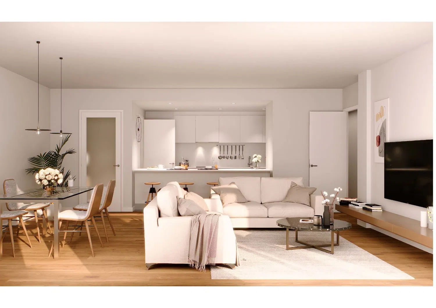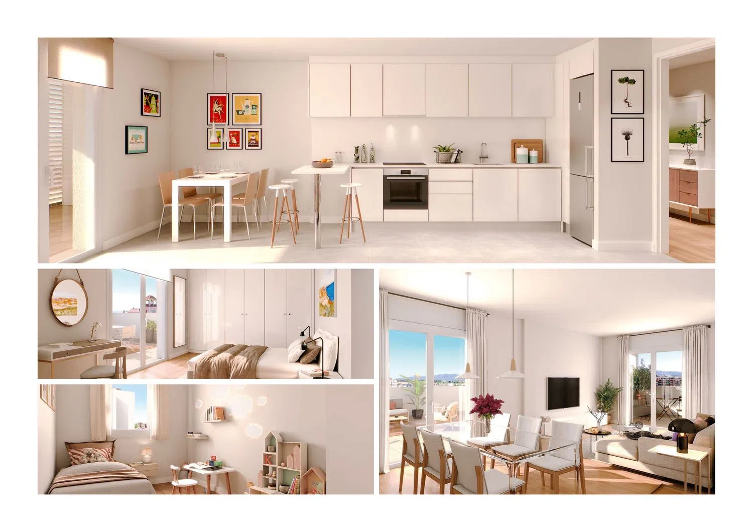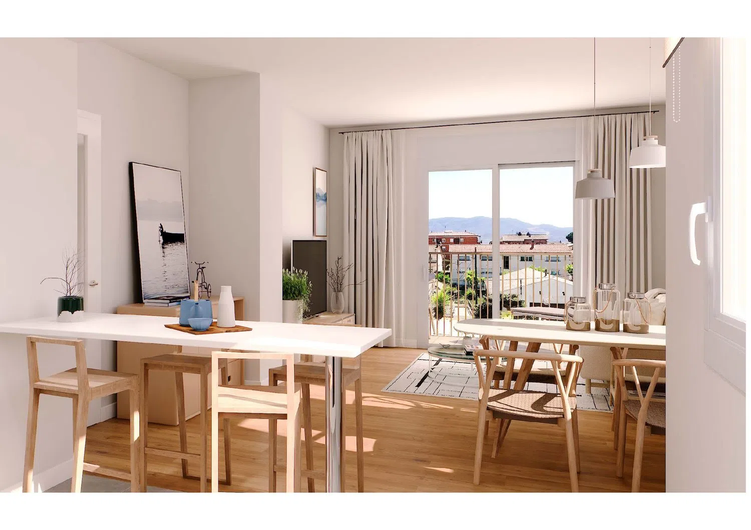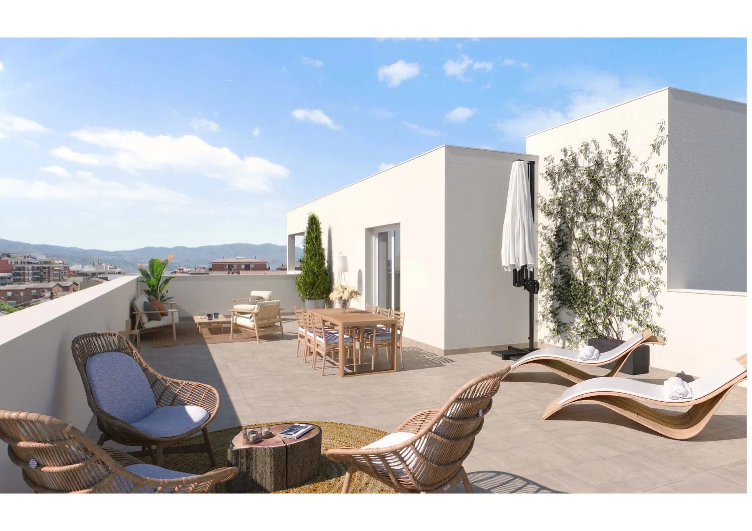 The facilities are equipped with an innovative aerothermal system that provides hot water. Additionally, heating and air conditioning are offered through ducts, guaranteeing comfort throughout the year. The high-quality finishes include parquet and ceramic tile floors. The residences are designed with highly efficient acoustic and thermal insulation systems, ensuring a comfortable and peaceful environment.