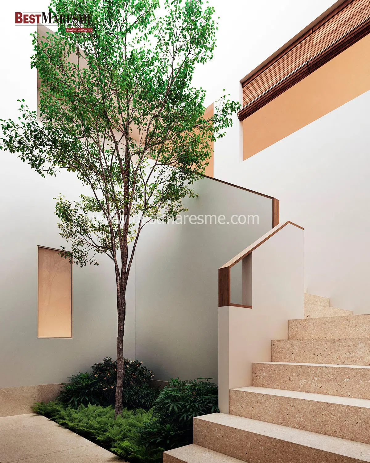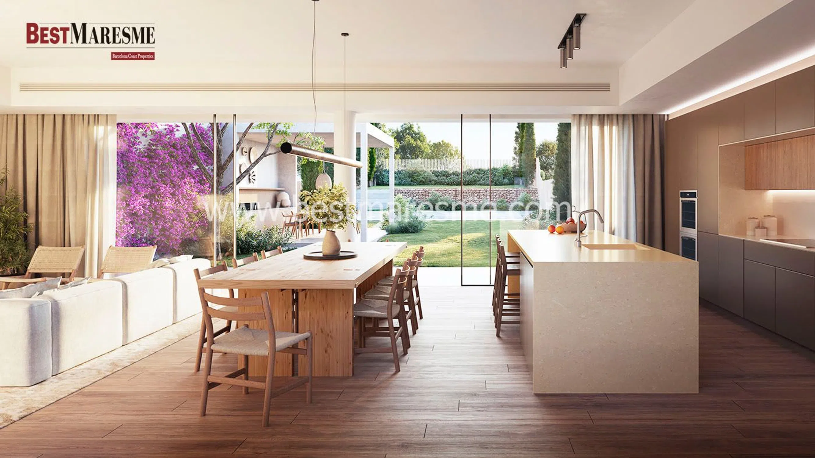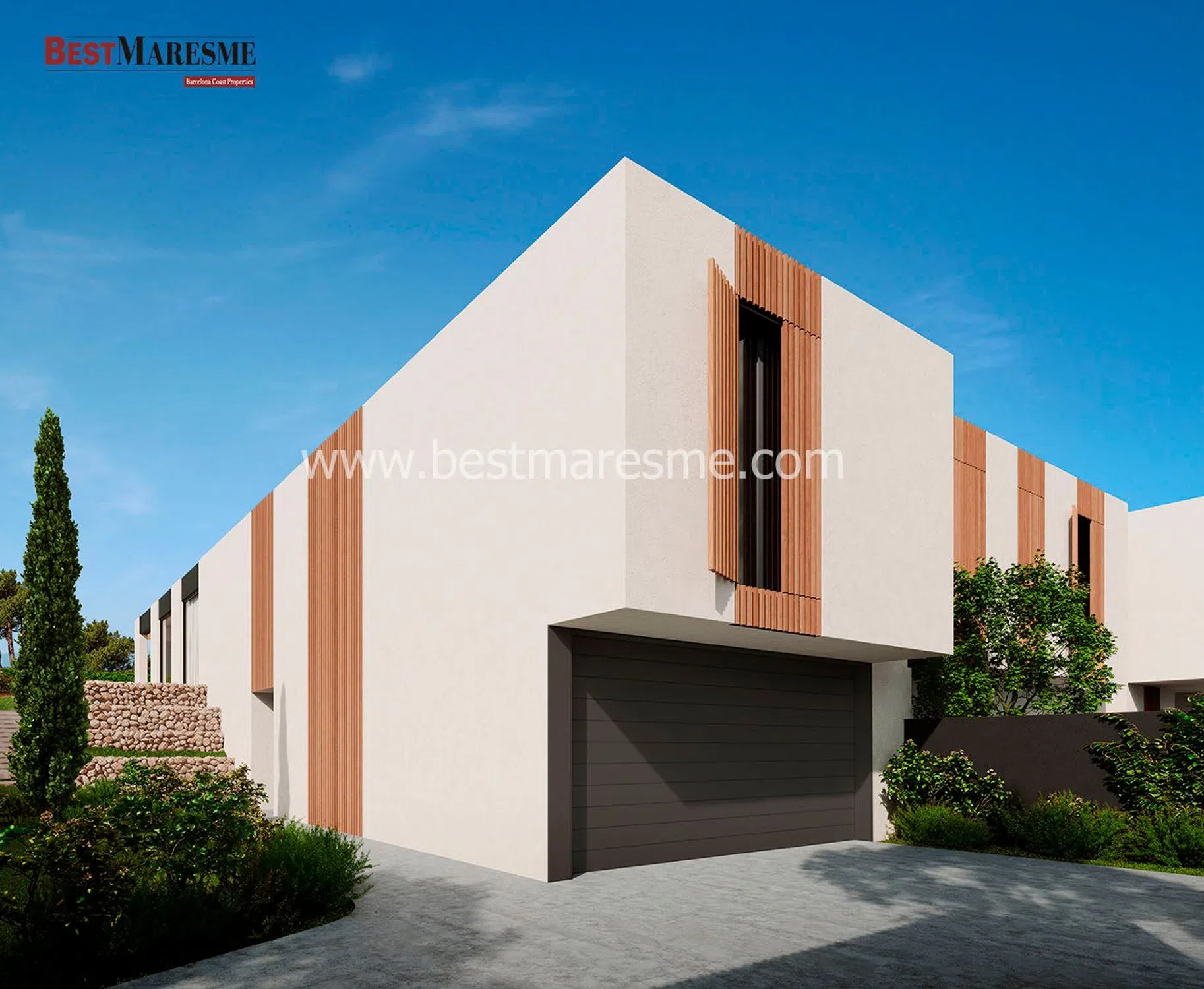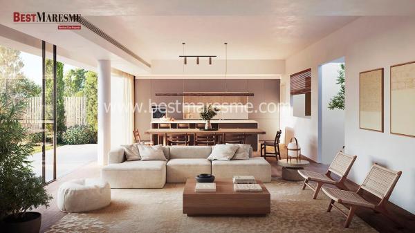 BestMaresme presenta esta promoción de excepcionales viviendas adosadas con jardín y piscina en La Cisa, Premià de Dalt, que combinan todos los ingredientes para ofrecerle una nueva calidad de vida. El alto estándar constructivo y de los materiales utilizados, la eficiencia energética y el diseño contemporáneo nos ofrecen la tranquilidad y comodidad para que solo nos tengamos que preocupar de disfrutar de nuestro nuevo hogar. Las viviendas se configuran en dos plantas. Accedemos a la casa por la planta inferior, a pie de calle, donde nos encontramos con el garaje, con capacidad para dos coches, un trastero, una habitación, baño de cortesía y las escaleras a la planta principal. Esta zona, donde destaca un precioso árbol, está iluminada por una claraboya y es una clara reminiscencia a los patios mediterráneos. Una vez llegamos a la primera planta nos encontramos a cada lado del patio con la zona de día y la zona de noche, todo ello en la misma planta. Si vamos hacia la zona de día nos encontramos con una amplia estancia donde están el salón, el comedor y la cocina, todo en un mismo cómodo espacio. Este espacio está generosamente iluminado mediante la luz indirecta de la claraboya del patio y los amplios ventanales que dan acceso directo al jardín. La zona de noche, al otro lado del patio cubierto, se compone de tres habitaciones una de ellas en suite con baño privado y vestidor. El espacio previo al acceso de las habitaciones funciona como un estudio, iluminado generosamente por el patio. El soleado jardín es, sin duda, una de las zonas más privilegiadas de la casa e incluye una pérgola exterior de obra y una piscina de agua salina. La eficiencia energética es un factor para destacar en esta vivienda ya que cuenta con un gran aislamiento de fachada, cerramientos de la máxima calidad, aerotermia y placas solares con baterías. Cabe destacar el papel en términos de eficiencia del patio central. Este elemento, además de su función de organizador y belleza arquitectónica, ayuda mucho al ahorro de energía y confort de la vivienda. Básicamente tiene dos estados de funcionamiento; invierno y verano. El patio tiene tres elementos que, combinados, configuran los dos estados. Una ventana superior con apertura a distancia, un circuito que recircula el aire y un cobertor de la claraboya. En verano la claraboya se cubre para controlar la entrada de calor y luz, a su vez la ventana se abre dejando escapar el aire caliente que tiende a subir. Esto hace un efecto chimenea de forma que fuerza la ventilación cruzada de la casa. En invierno la claraboya queda descubierta y la ventana cerrada. En el tramo superior del patio se concentra una masa de aire caliente que se aprovecha mediante el circuito de recirculación de aire aportándolo en la zona de sala cocina comedor. Este conjunto proporciona un confort extra a la vivienda y un gran ahorro en climatización. Todas las casas se entregan con piscina y jardín acabado. Si tiene cualquier duda o cuestión, no dude en ponerse en contacto con nosotros.