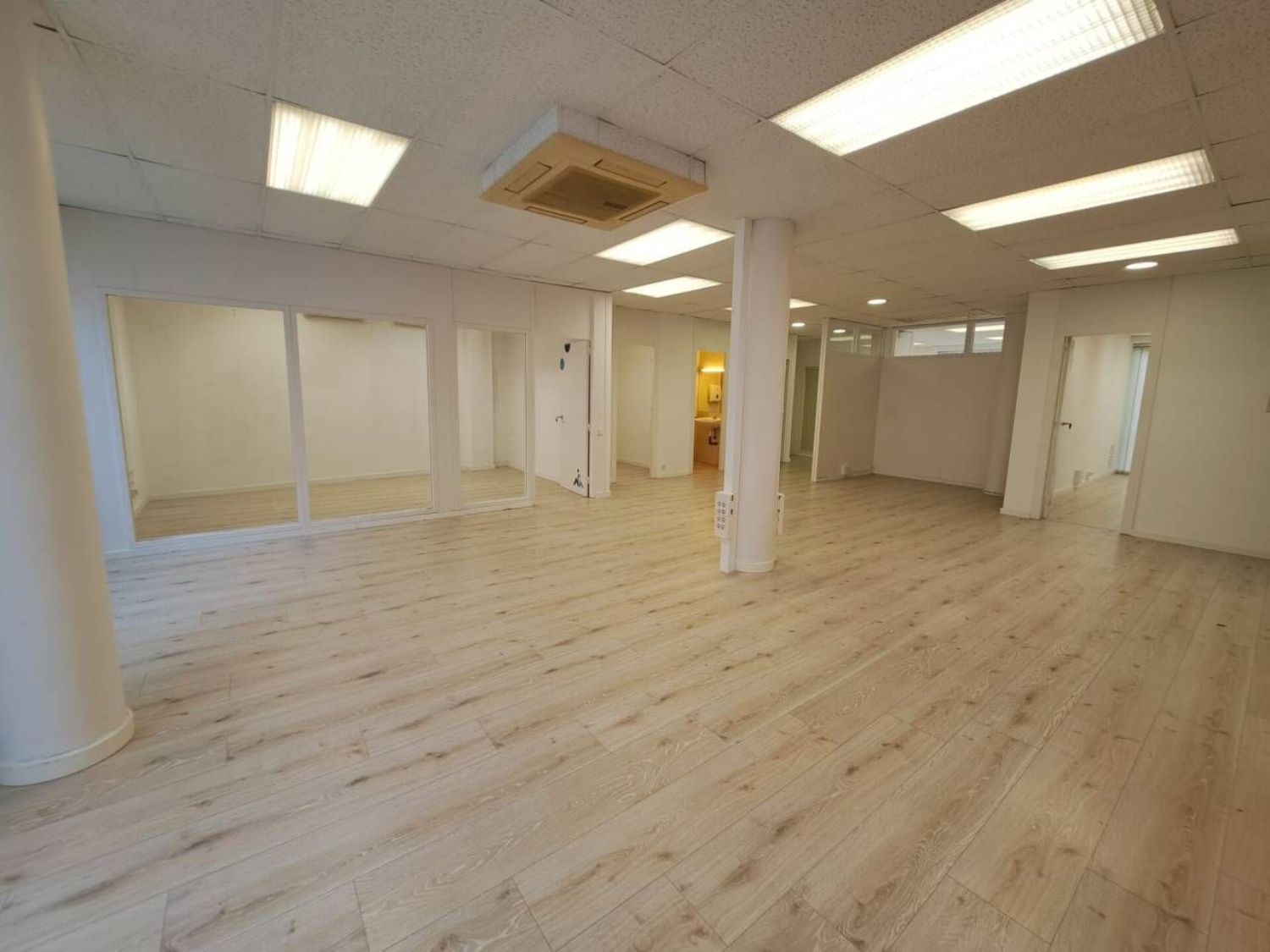 FINCAMPS comercializa el alquiler de oficina en el centro de Sabadell. El edificio, situado en una calle peatonal a 50 m del Ayuntamiento y los FFGG, tiene una imagen corporativa impecable, seria y moderna. La oficina ocupa toda la primera planta del mismo. Es la mitad de una oficina de 160 m², esquinera y totalmente acristalada, lo que le permite tener muchísima luz natural y un diseño moderno. Dispone de dos baños, suministros dados de alta y está perfectamente acondicionada para el cableado telefónico, de internet, dispone de climatización frio / calor, ascensor. Con todos los servicios a su alrededor.