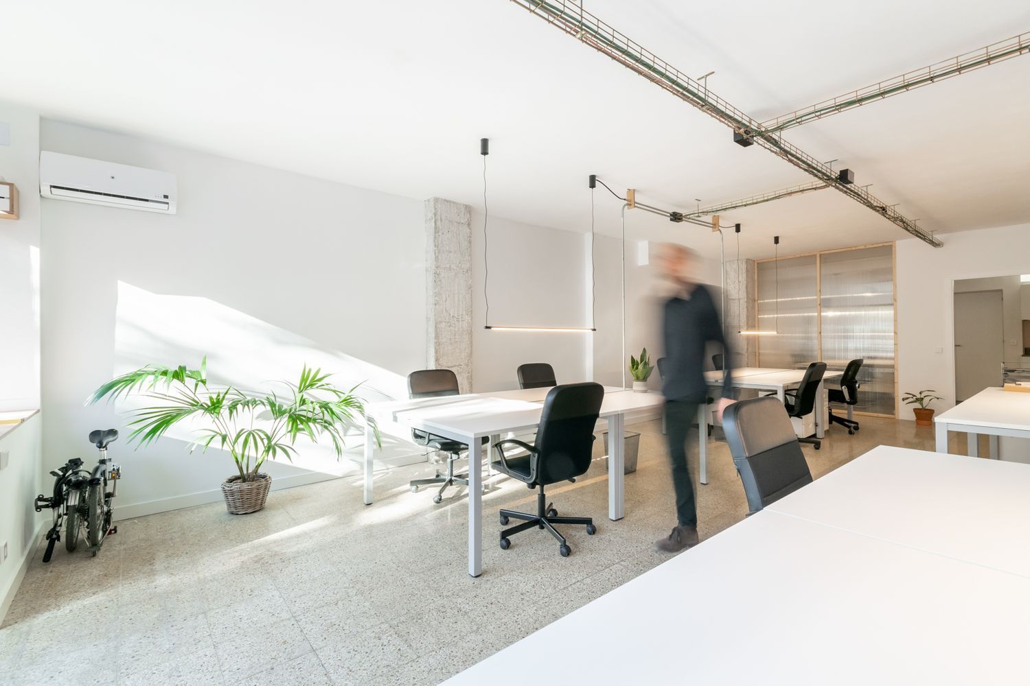 Compartimos estudio a pie de calle en la plaza del coll, SANT CUGAT.A 5' del Monasterio. Coworking Espai MesuraMESAS DE TRABAJO para 4 personas (145*240cm) compartidas o para un solo equipoSALA DE REUNIONES con capacidad para 4 personasCOMEDOR: cocina con nevera, microondas, mesa i sillas para comer y descansar.