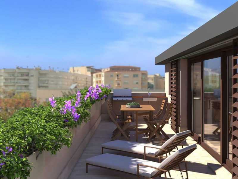 The building features 6 exclusive residences with parking spaces in the adjoining building. Two ground floor/duplex units with garden, two residences on the first floor, and two penthouses with private rooftop and swimming pool.