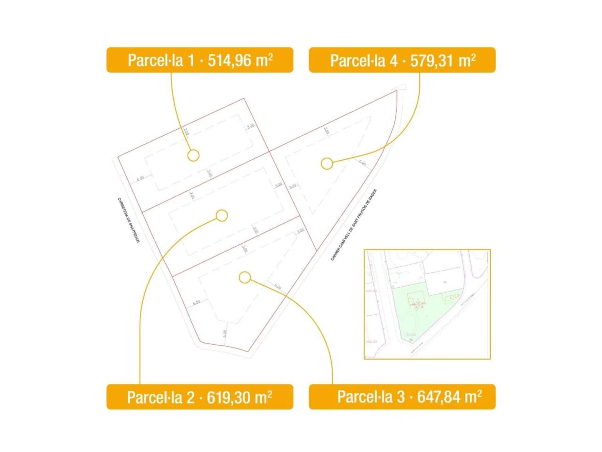 ¡Parcelas en venta en la exclusiva urbanización de Pineda de Bages! Si estás buscando el lugar perfecto para construir tu nuevo hogar, ¡no dejes pasar esta oportunidad única! En Vital Inmobiliaria te ofrecemos una ubicación privilegiada donde podrás hacer realidad la casa de tus sueños, rodeado de naturaleza y tranquilidad. En la entrada de la urbanización, tenemos una espectacular parcela de 2.362 m², con un proyecto para crear 4 parcelas individuales que van desde los 514 m² hasta los 614 m². Gracias a su orientación sudeste-oeste, disfrutarás de sol durante todo el día, creando el ambiente ideal para vivir. Esta parcela se destaca por su facilidad de construcción, ya que es prácticamente plana, lo que reduce los costos y complicaciones en el movimiento de tierras. Además, cuenta con accesos cómodos y unas increíbles vistas panorámicas a la montaña de Montserrat, convirtiéndola en el emplazamiento perfecto para tu futuro hogar. Aunque actualmente hay una construcción existente, esta será demolida para dar paso a las nuevas parcelas, que se presentarán tal como se ven en las imágenes adjuntas. * Los precios de las cuatro parcelas varían entre 174.000€ y 188.000€. ¿Quieres saber más? ¡Contáctanos y te ayudaremos a hacer realidad tu proyecto!